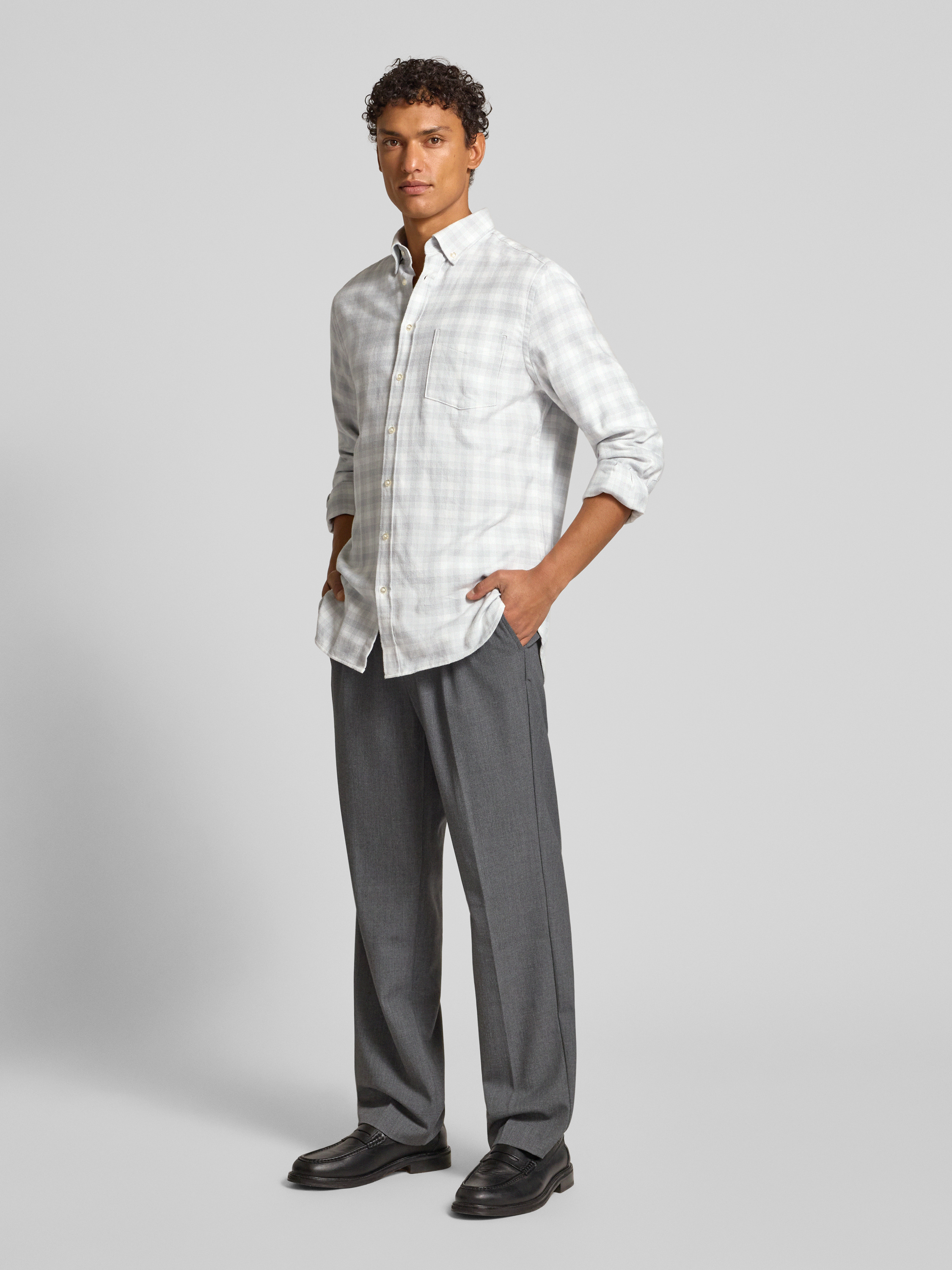Christian Berg MenKoszula casualowa o kroju regular fit z kołnierzykiem typu button down - jasnoszary