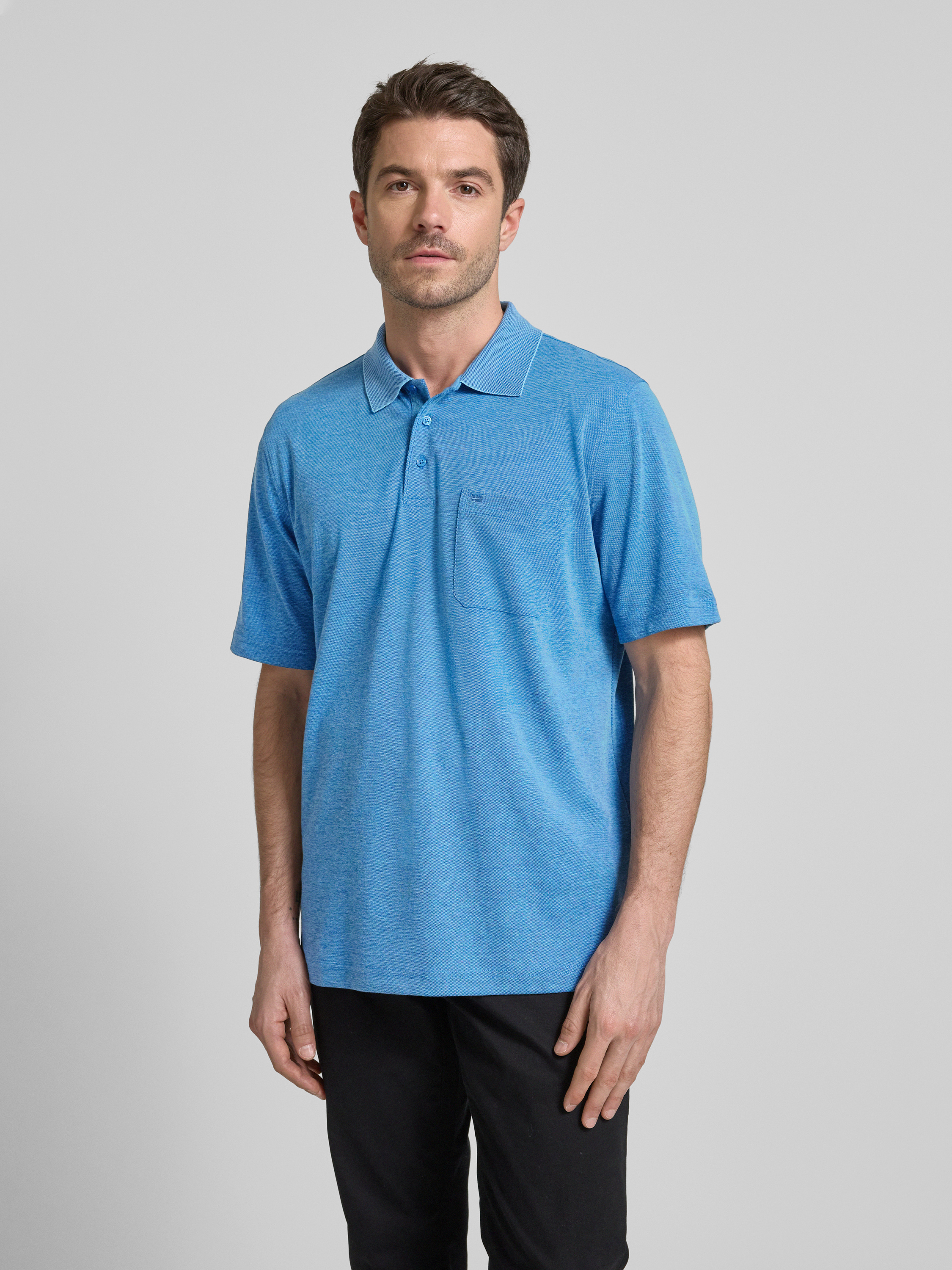Koszulka polo o kroju regular fit z kieszenią na piersi - oceaniczny