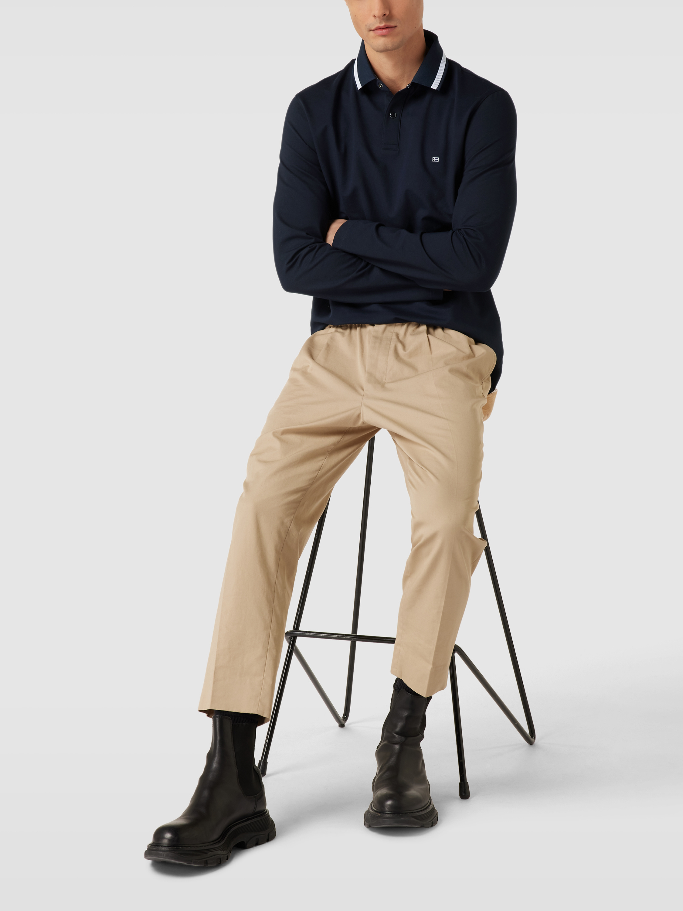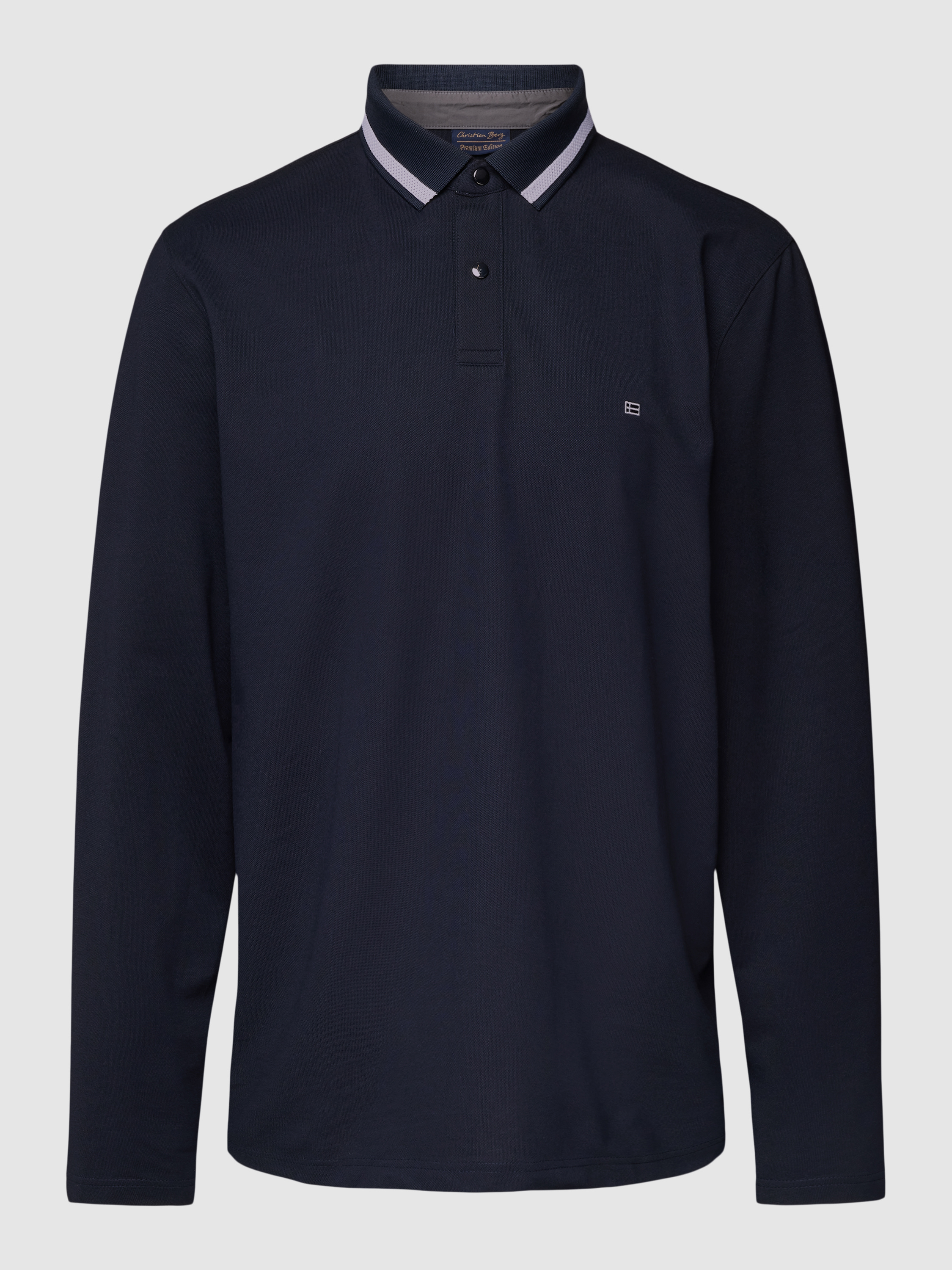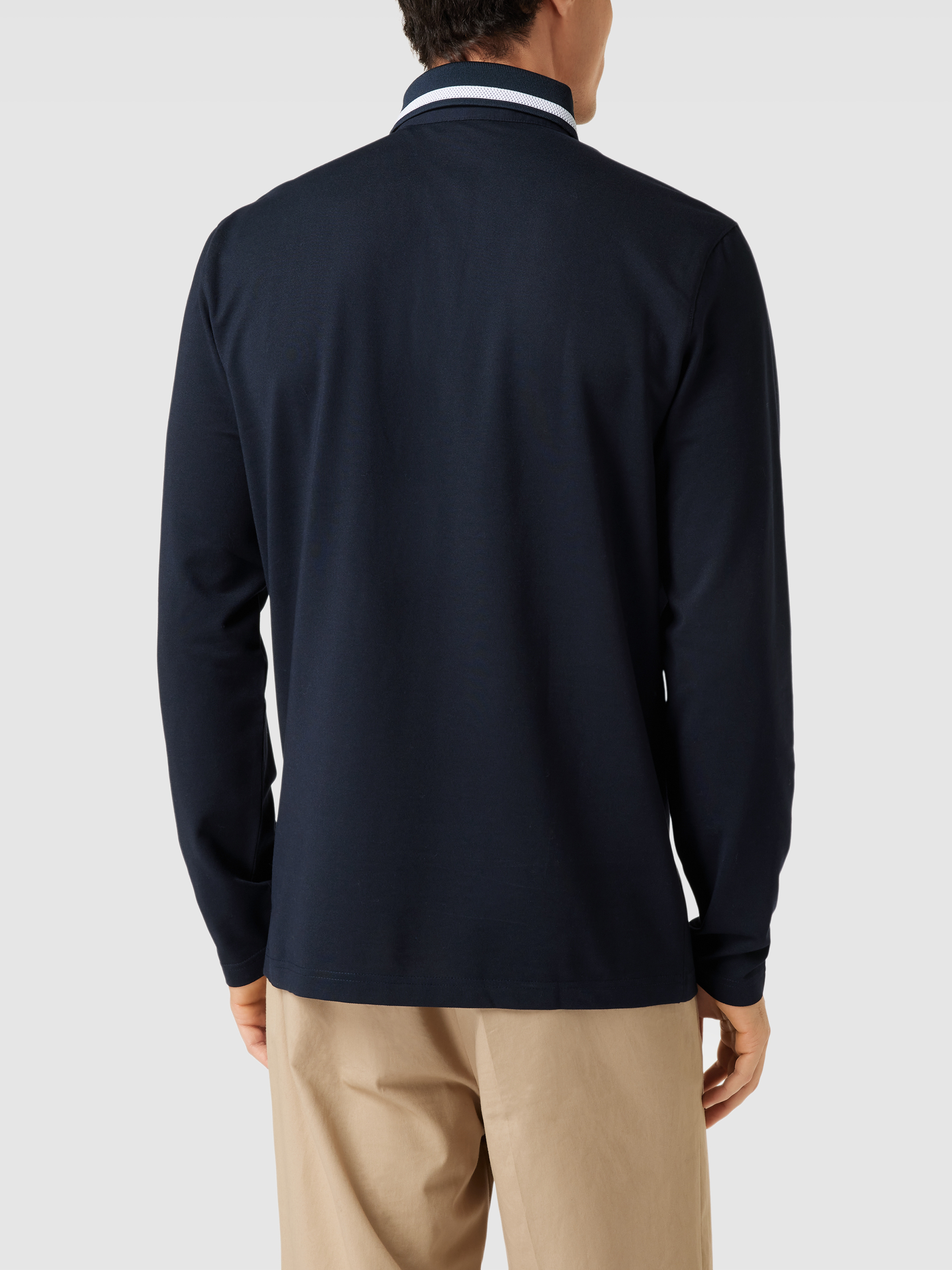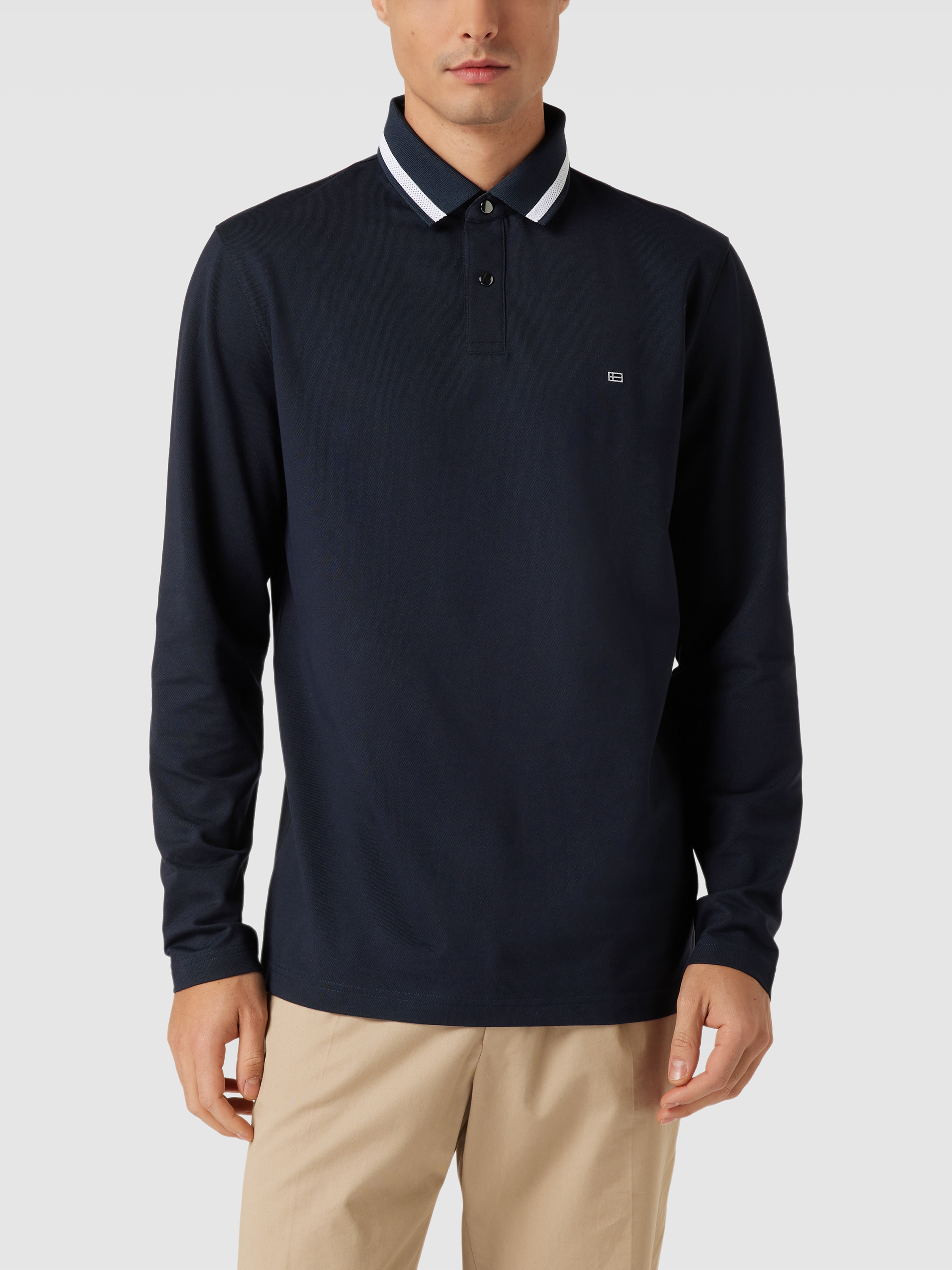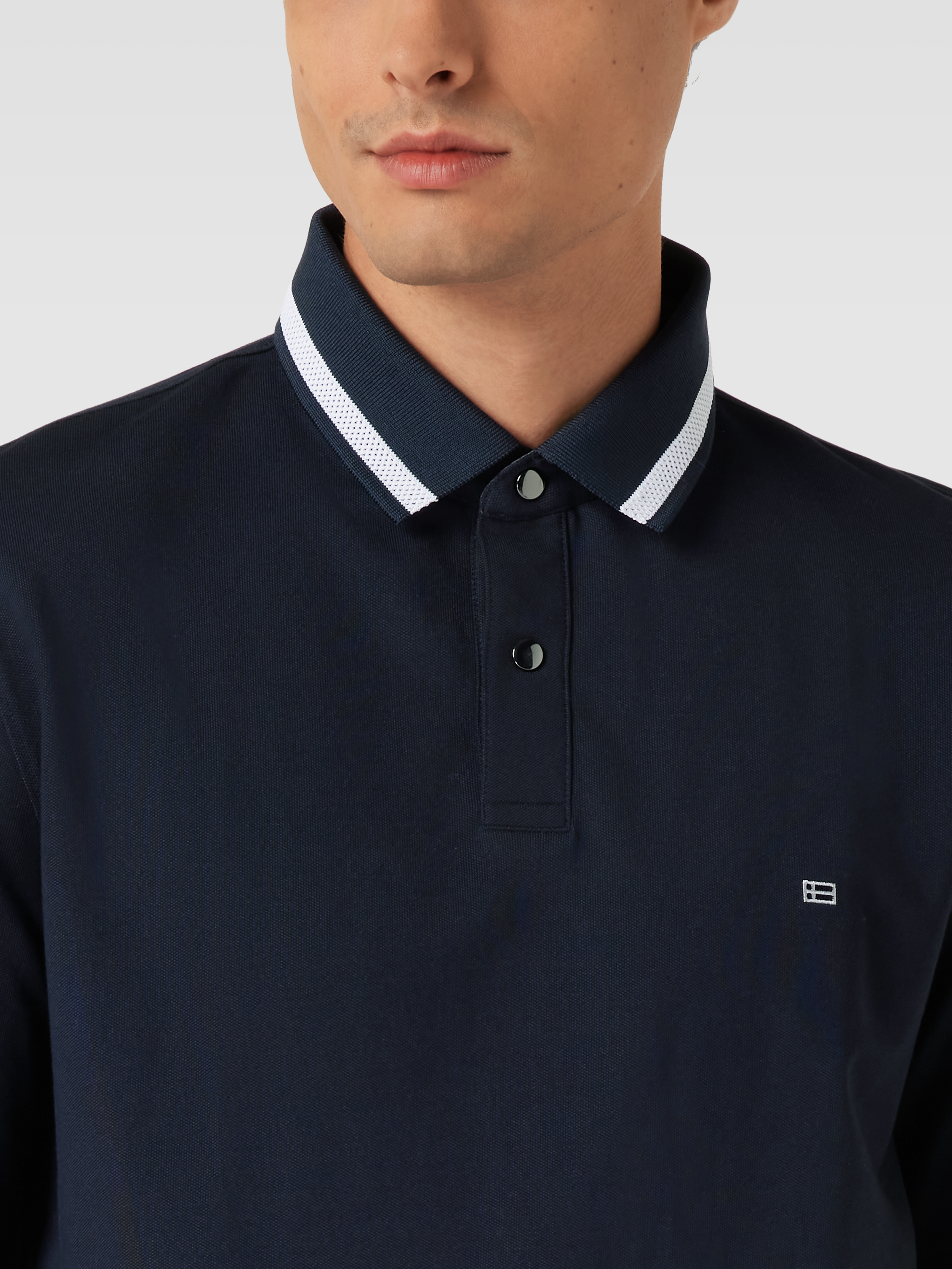 Koszulka polo z paskami w kontrastowym kolorze - granatowy