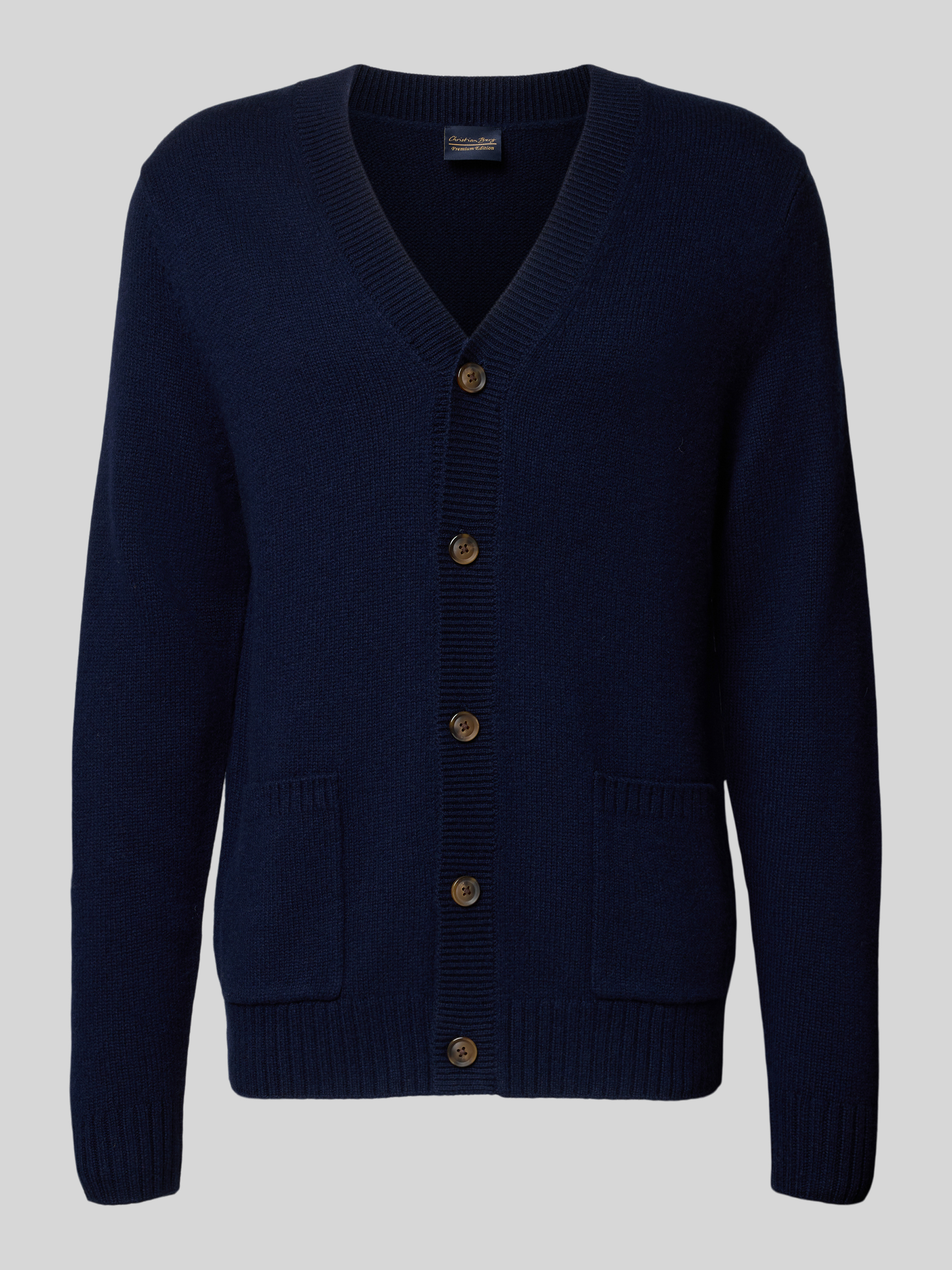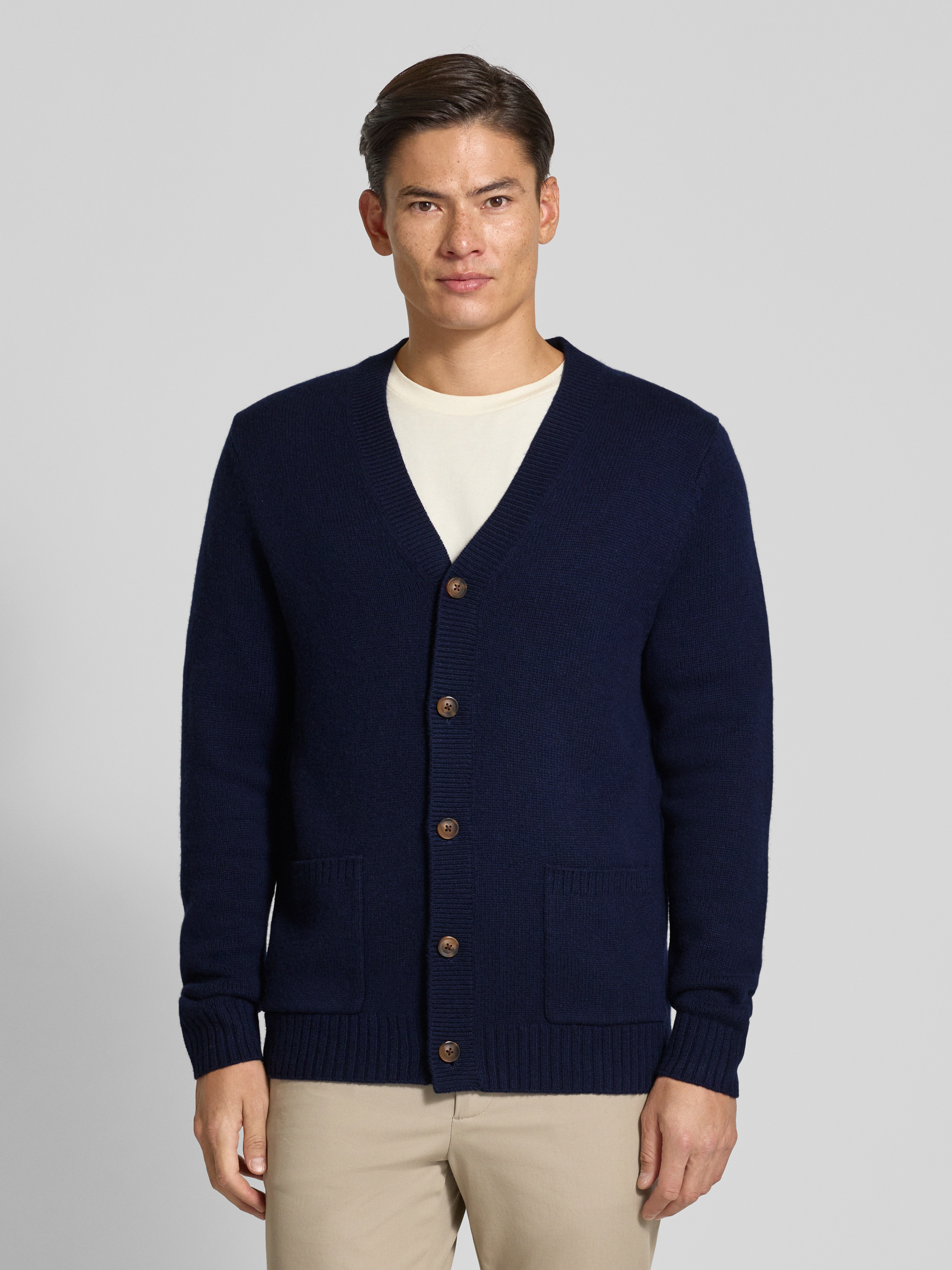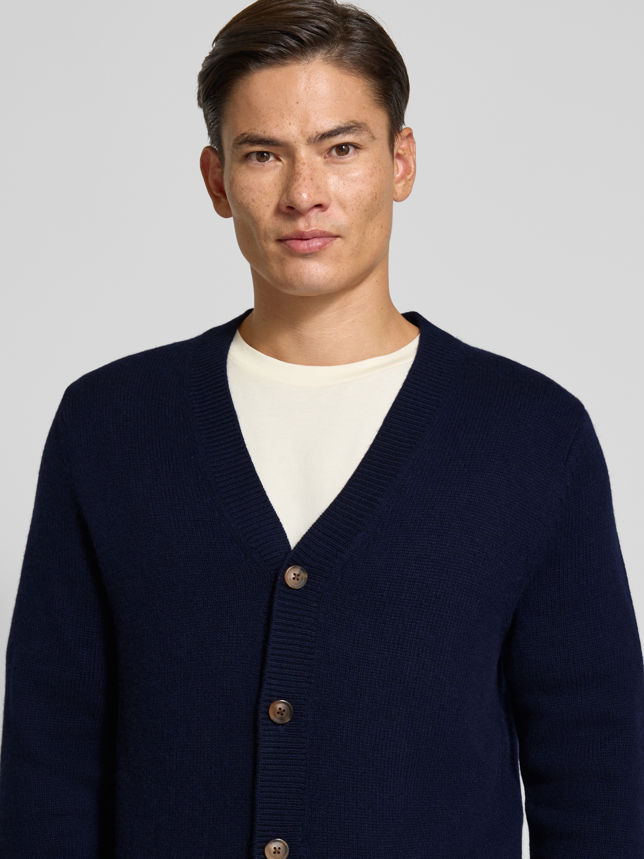 Kurtka z dzianiny z mieszanki wełny i kaszmiru z dekoltem w serek - granatowy