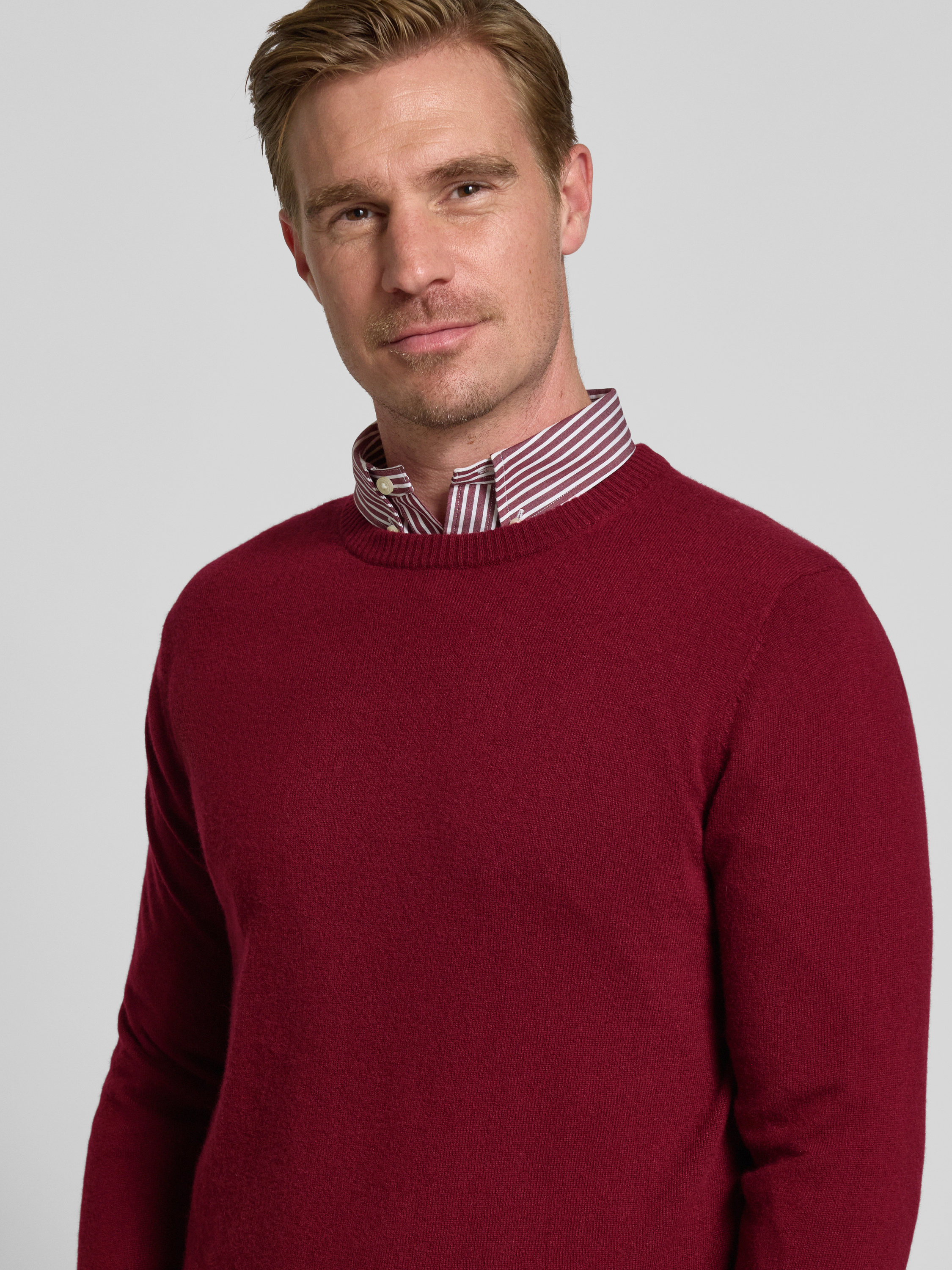 Sweter z kaszmiru o kroju regular fit z okrągłym dekoltem - bordowy melanż