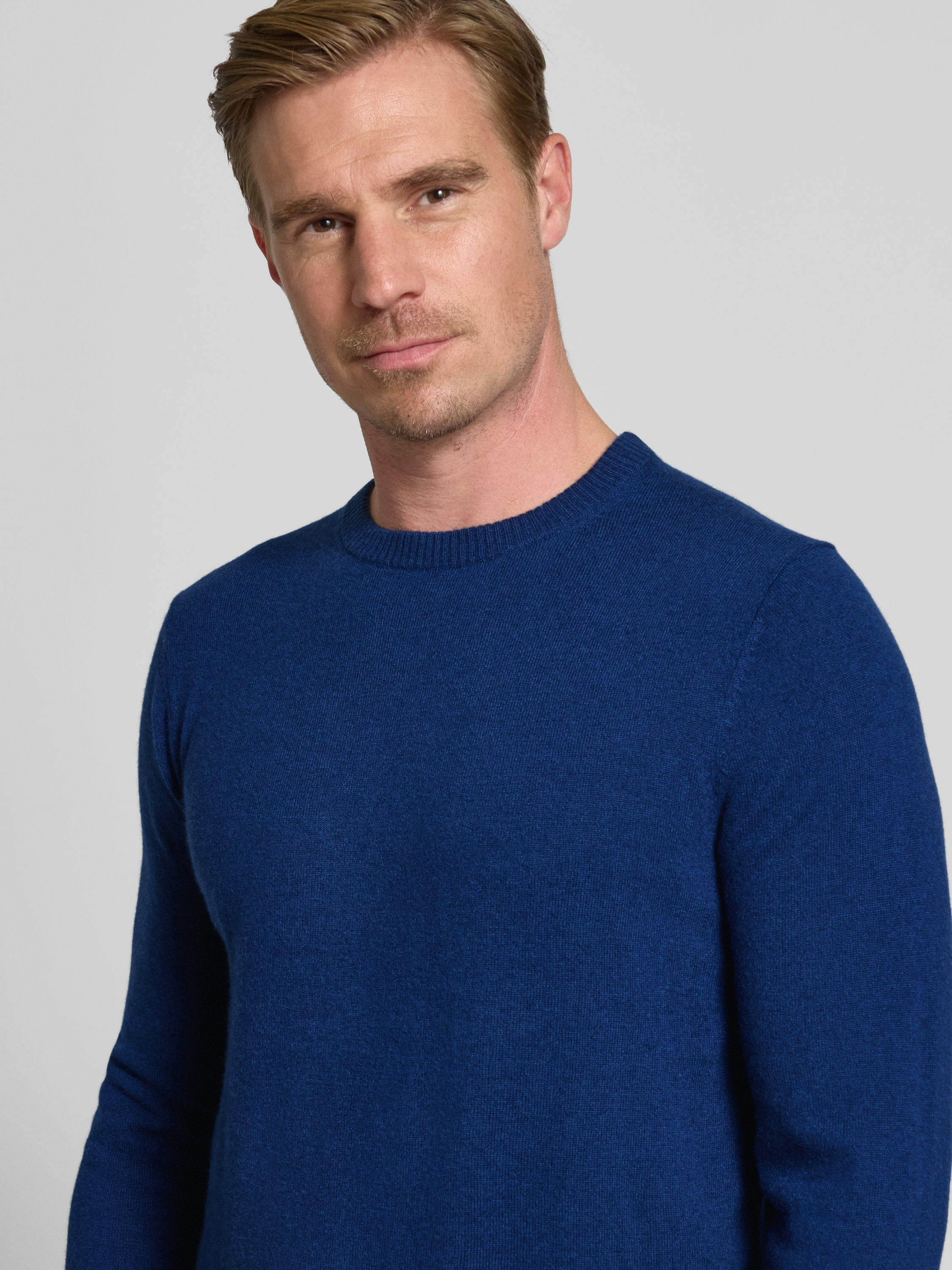 Sweter z kaszmiru o kroju regular fit z okrągłym dekoltem - granatowy melanż