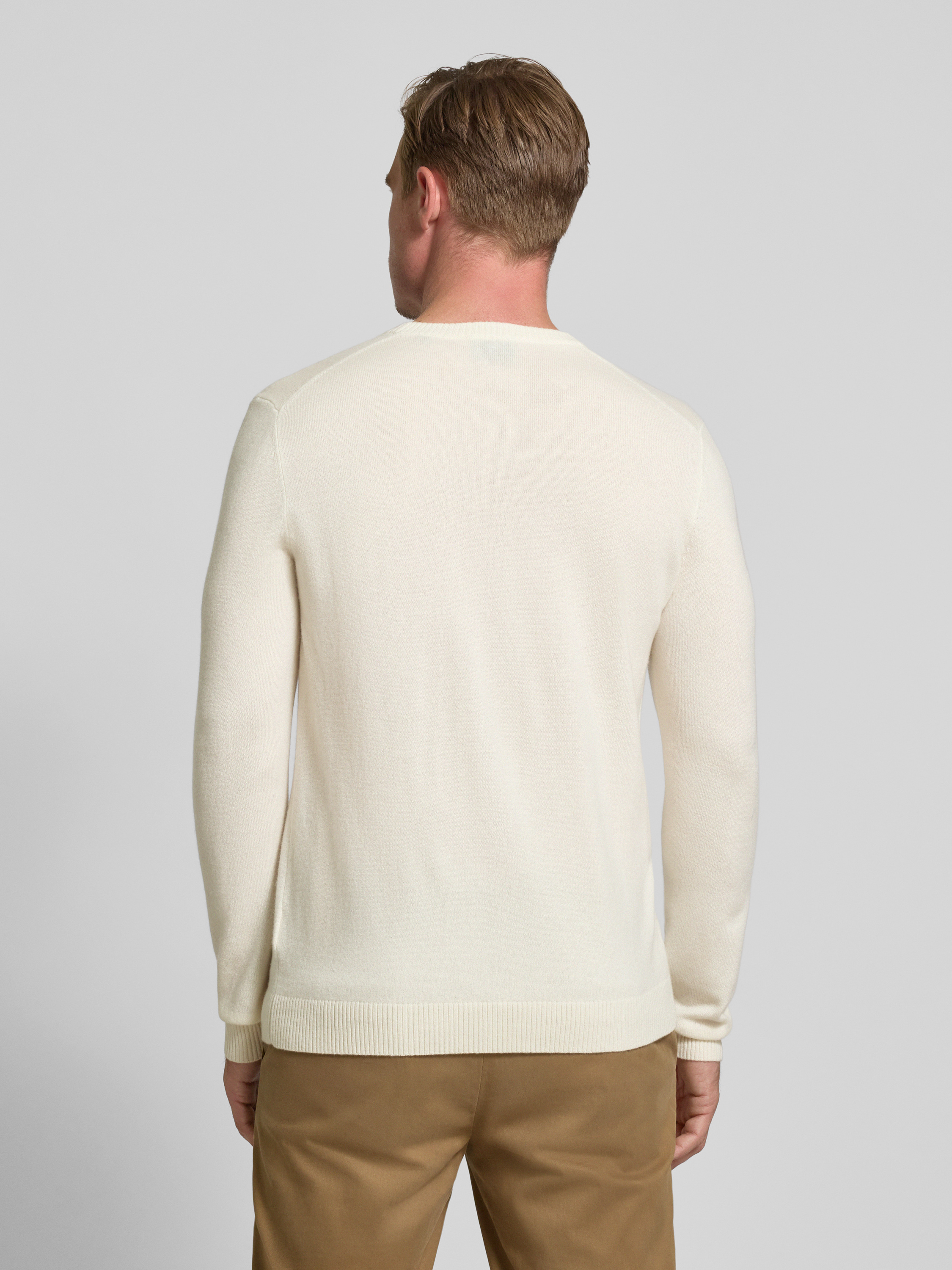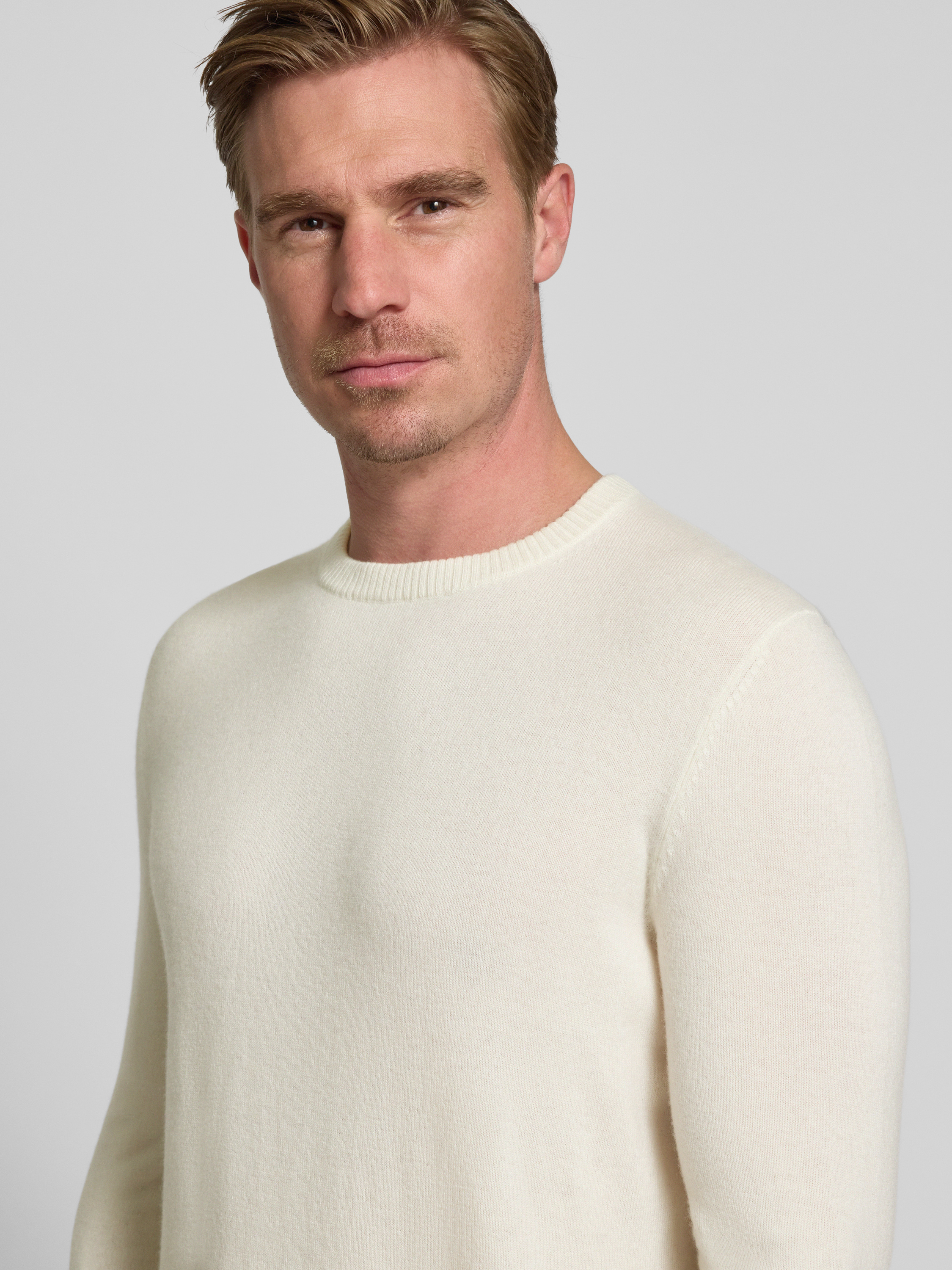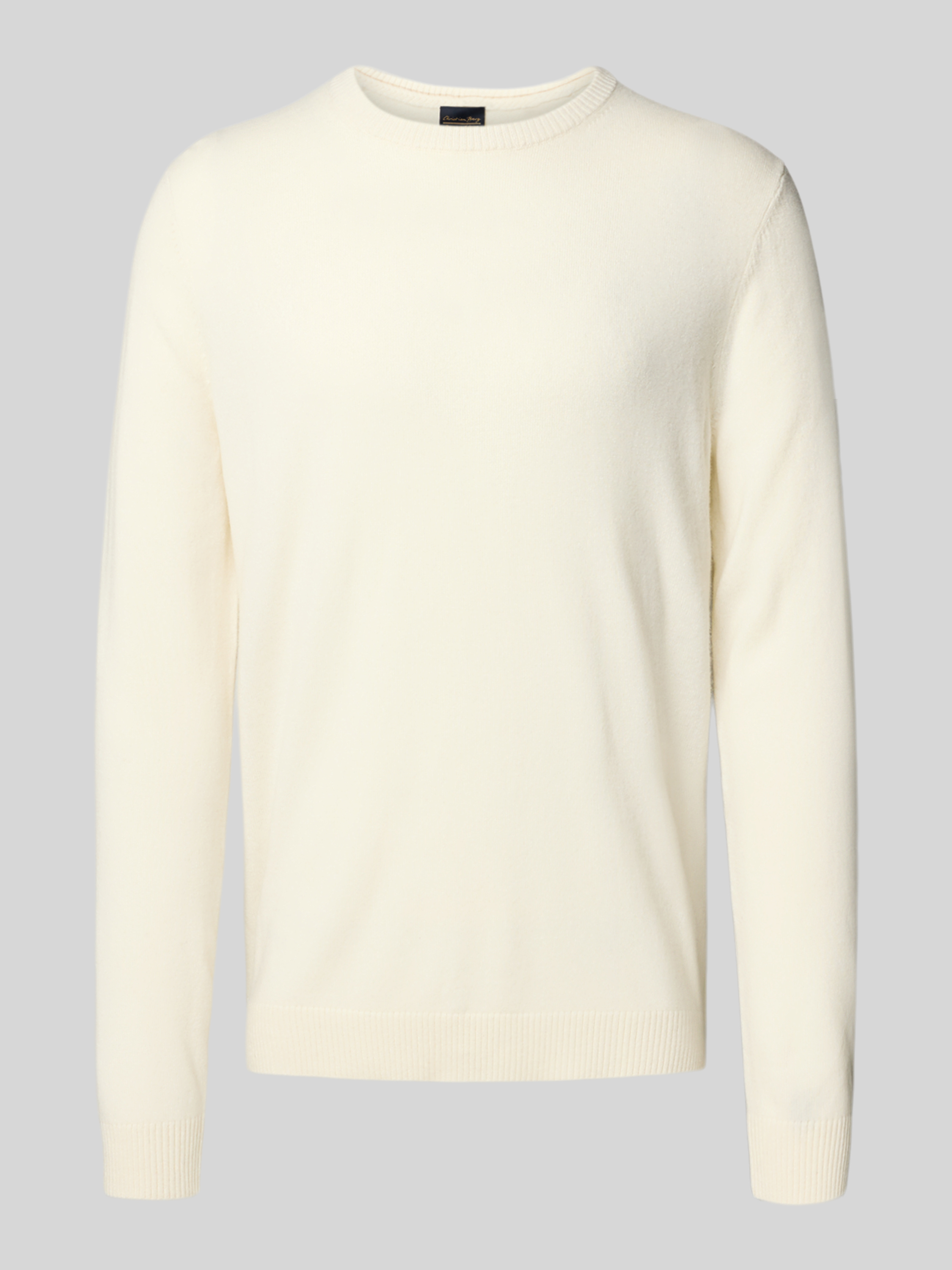 Sweter z kaszmiru o kroju regular fit z okrągłym dekoltem - złamany biały melanż