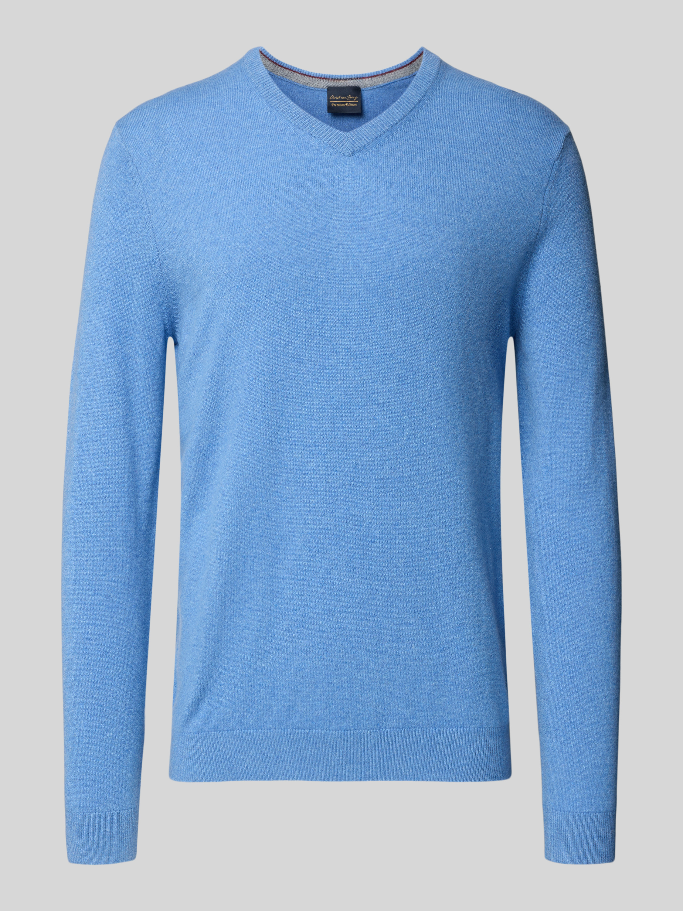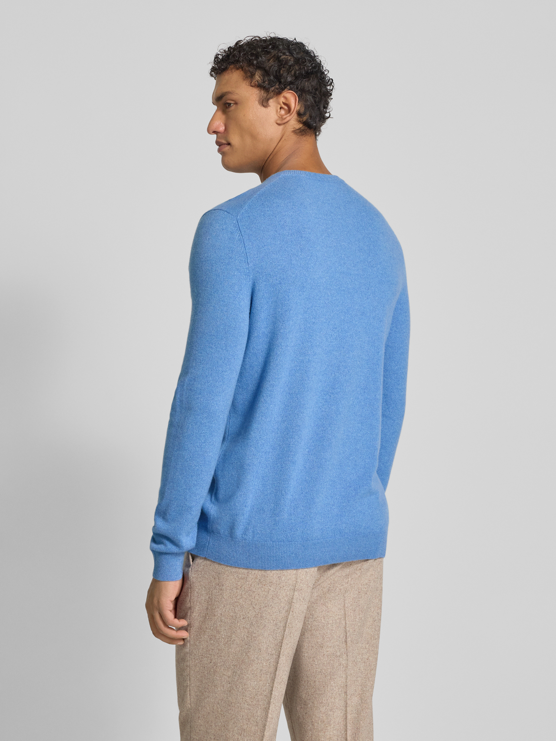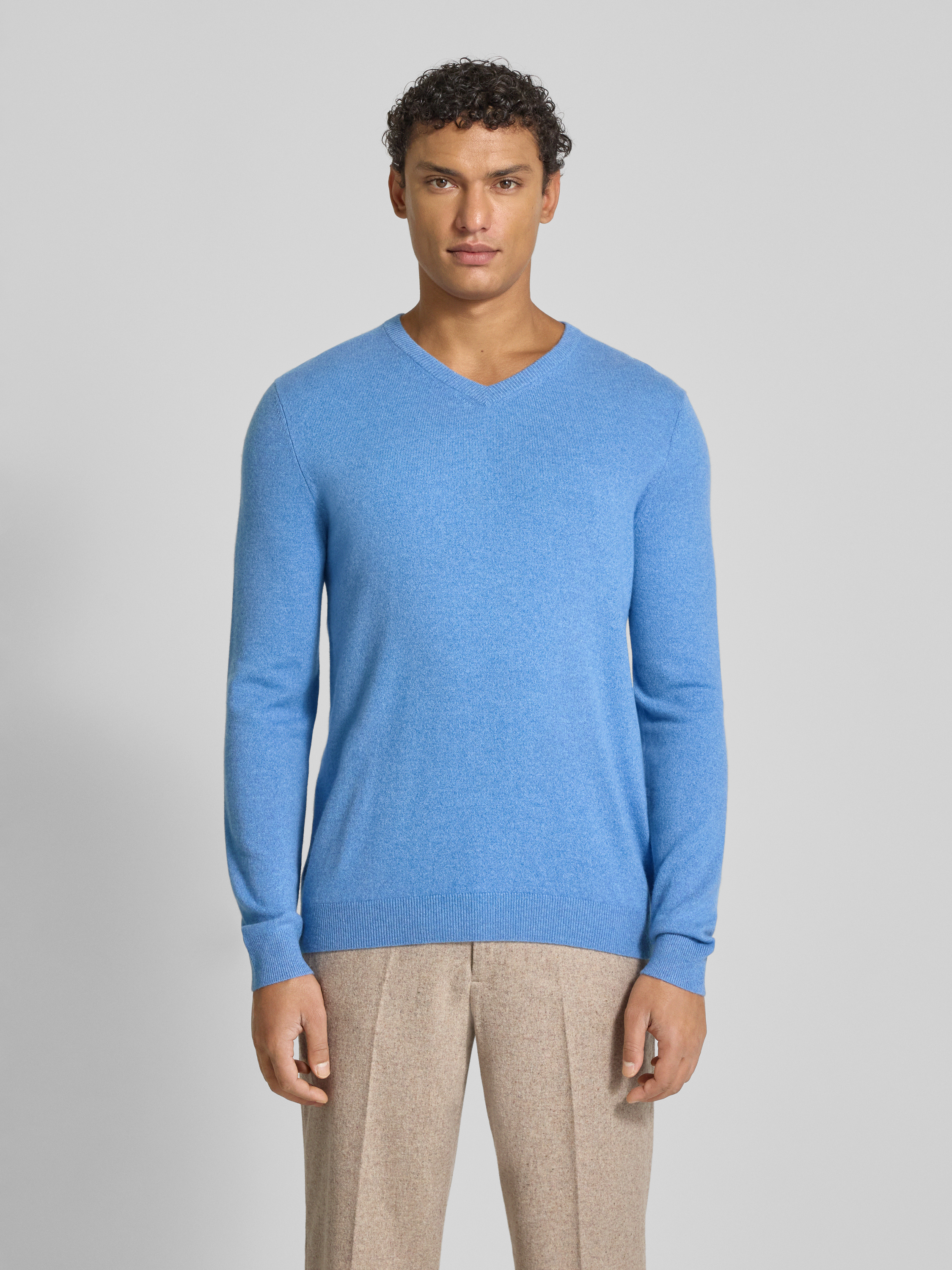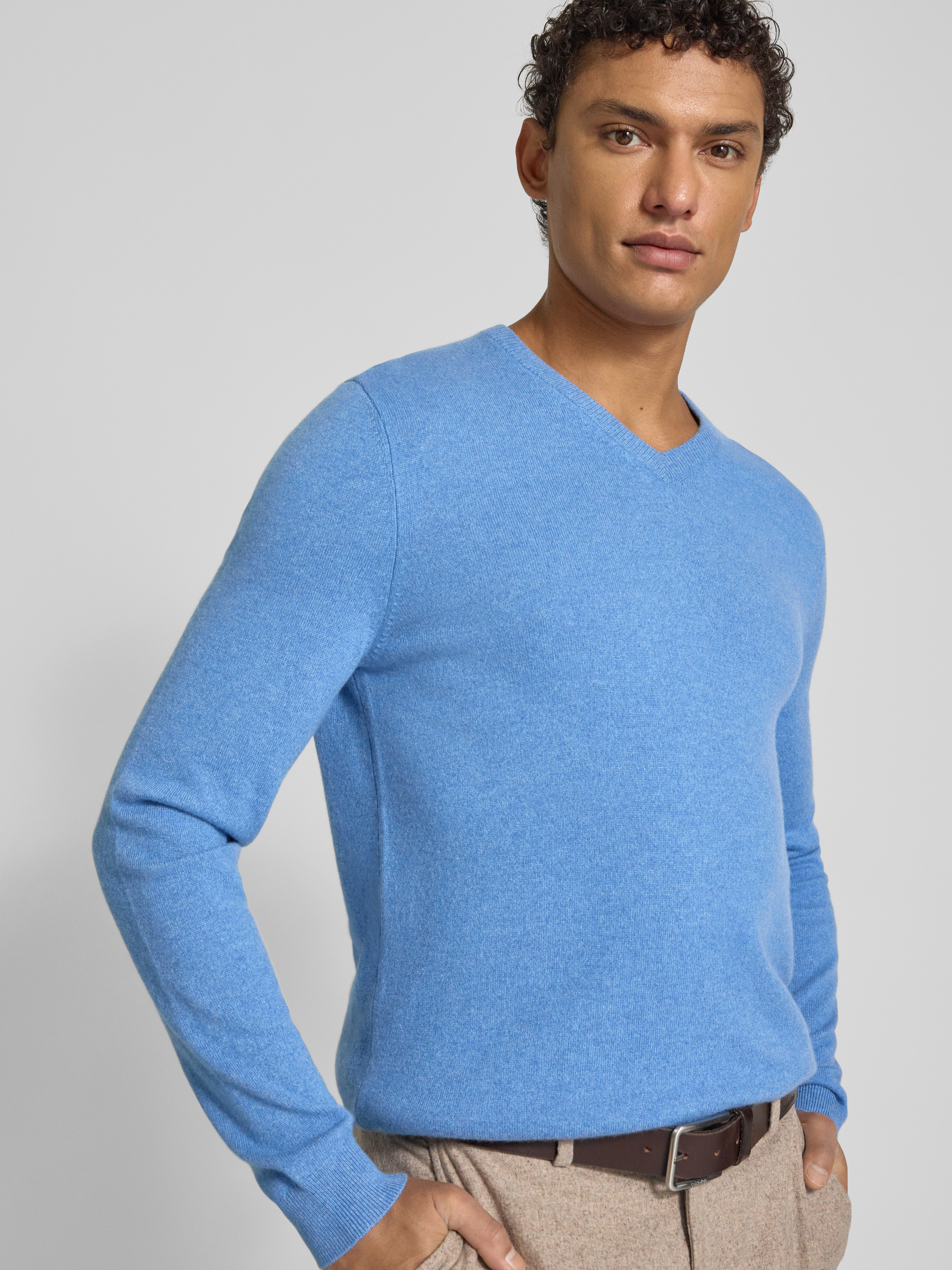 Sweter z kaszmiru z dekoltem w serek - jasnoniebieski melanż