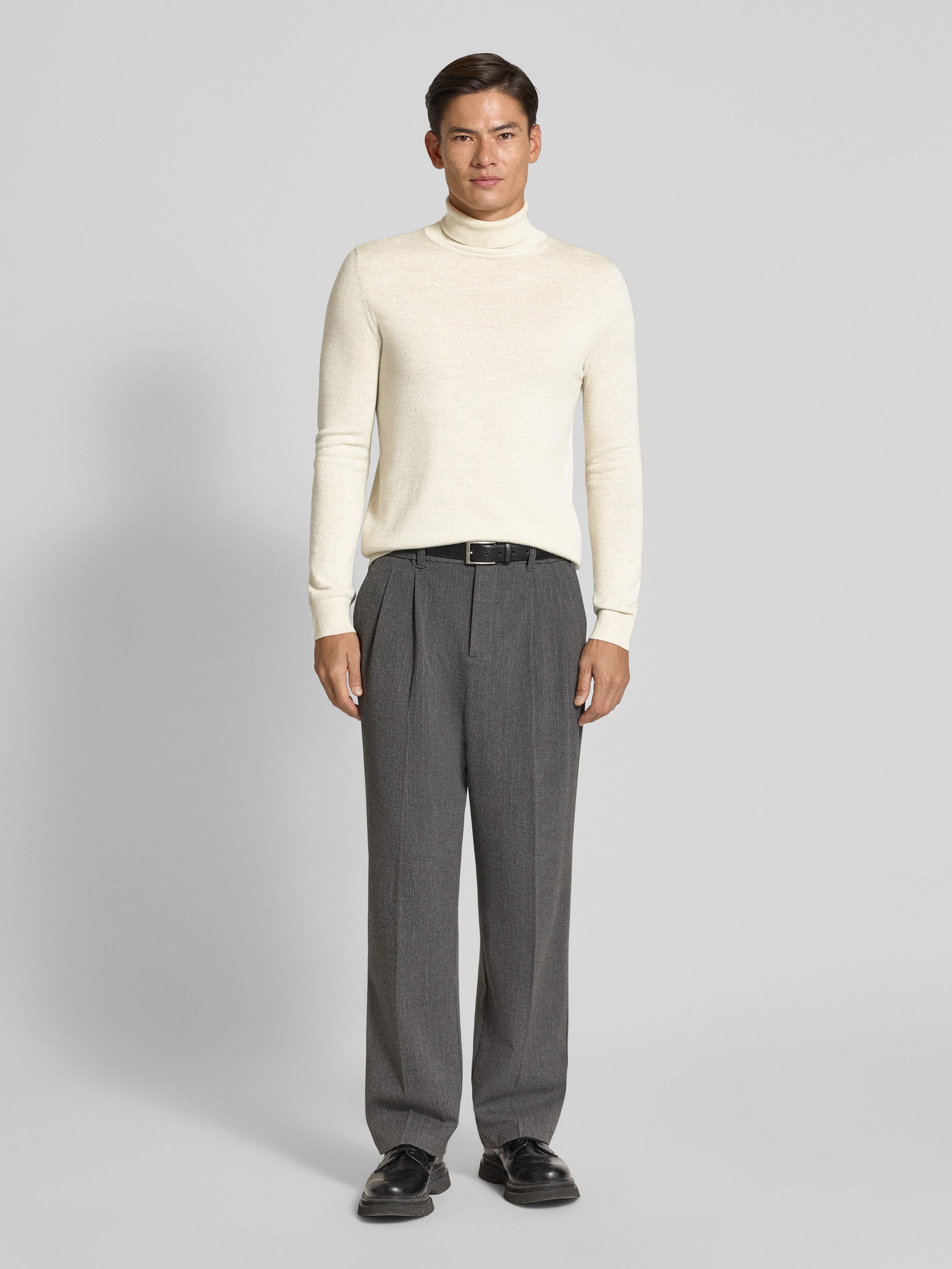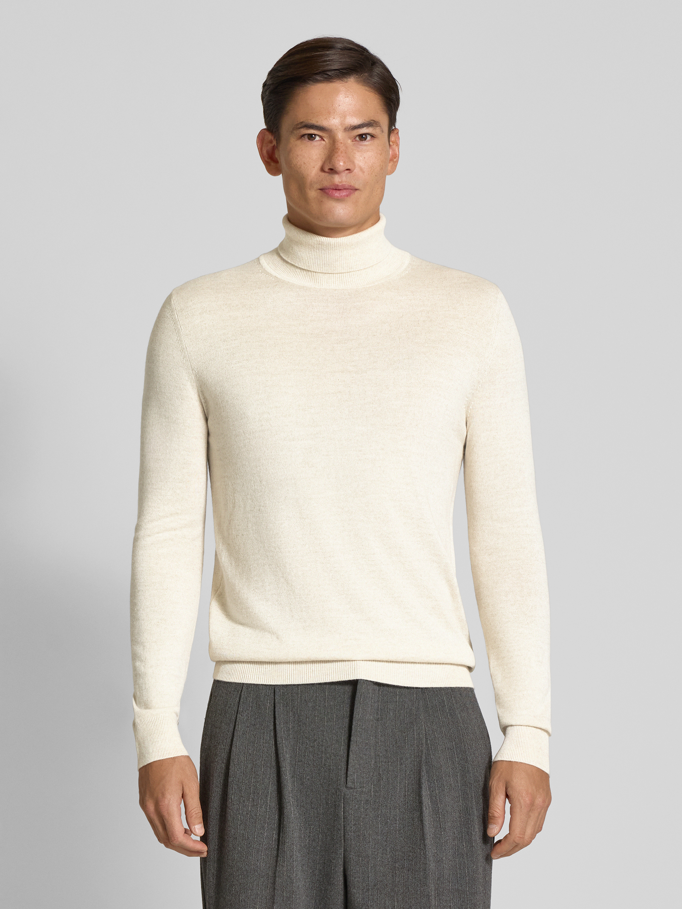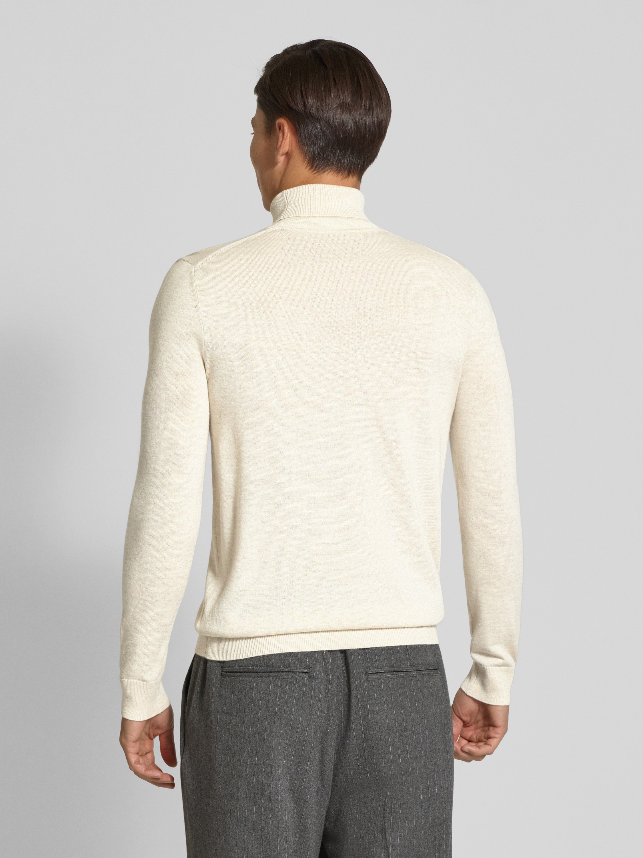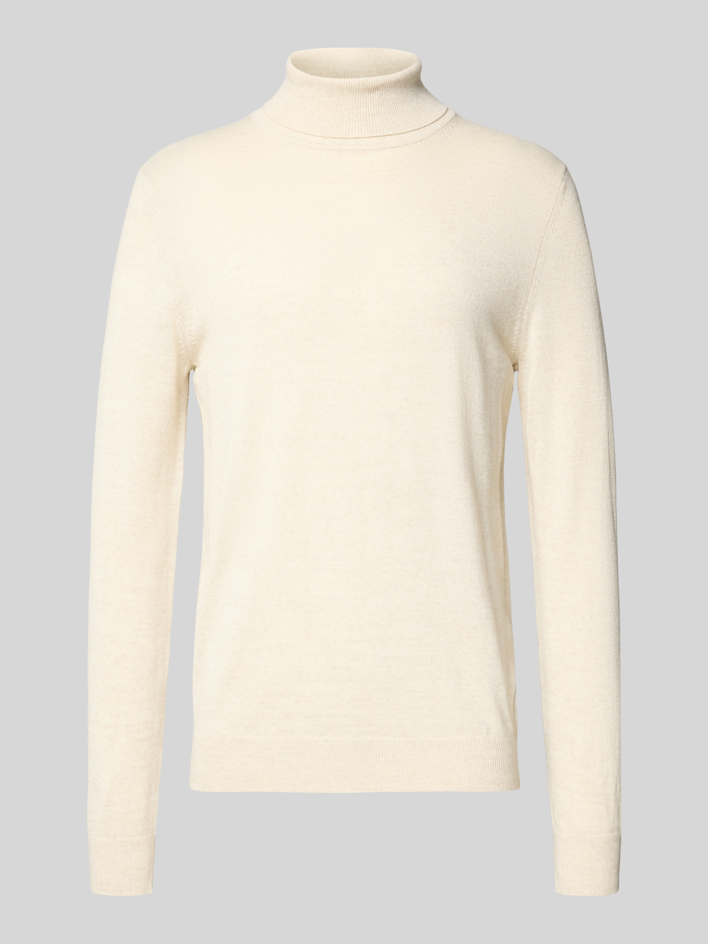 Sweter z mieszanki wełny merino z golfem - écru melanż