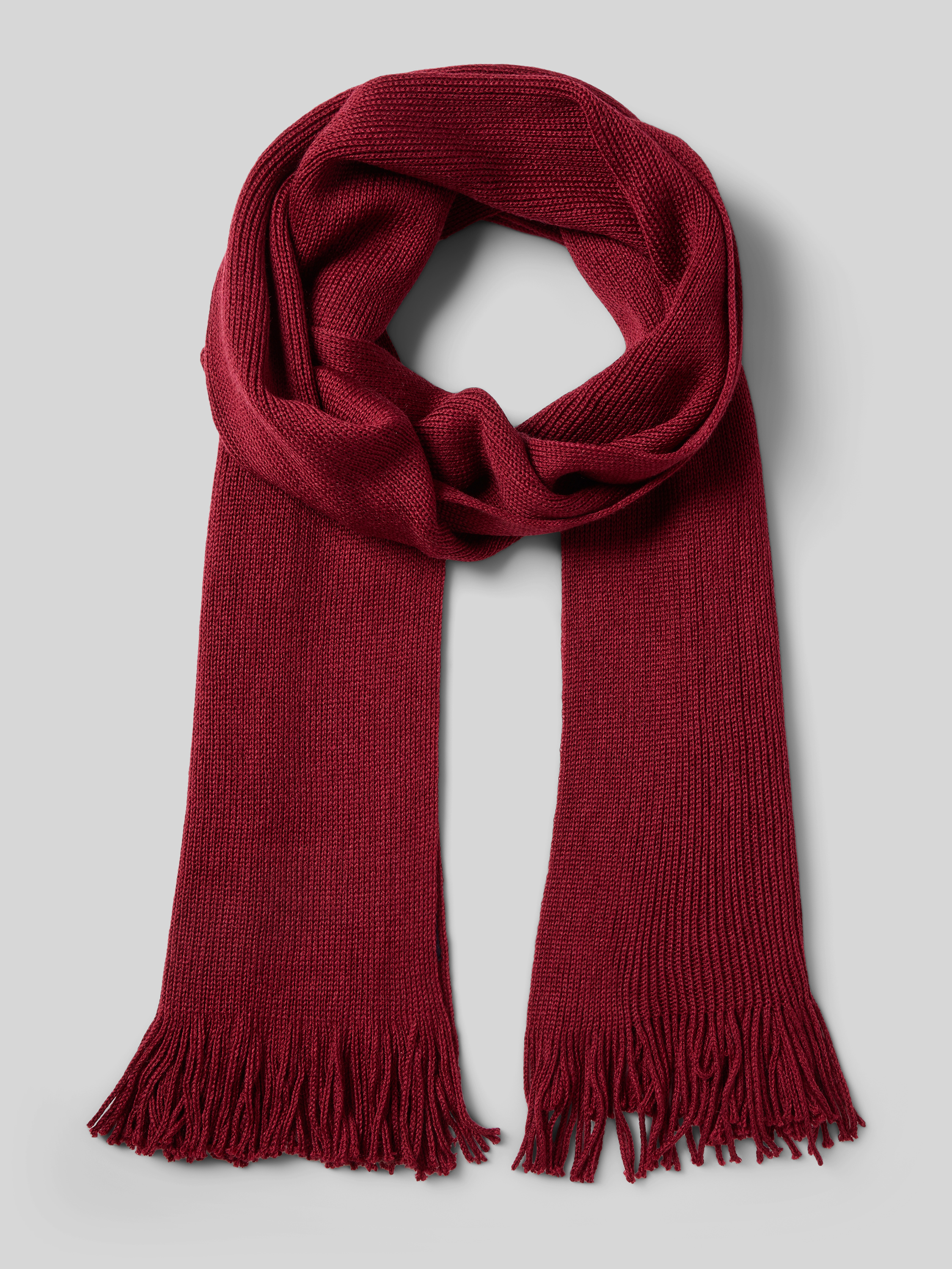 Szal z mieszanki wełny z frędzlami - ciemnoczerwony