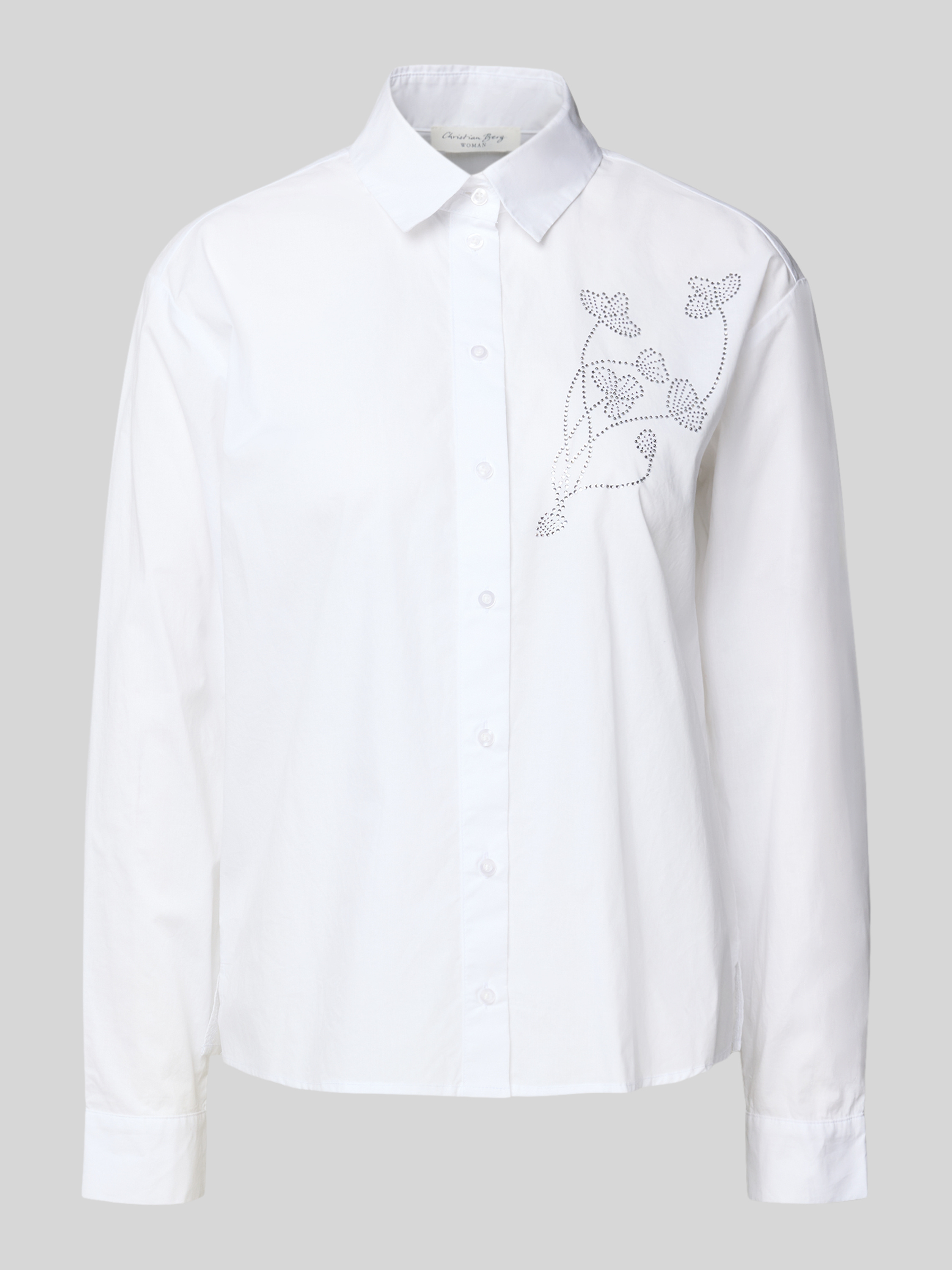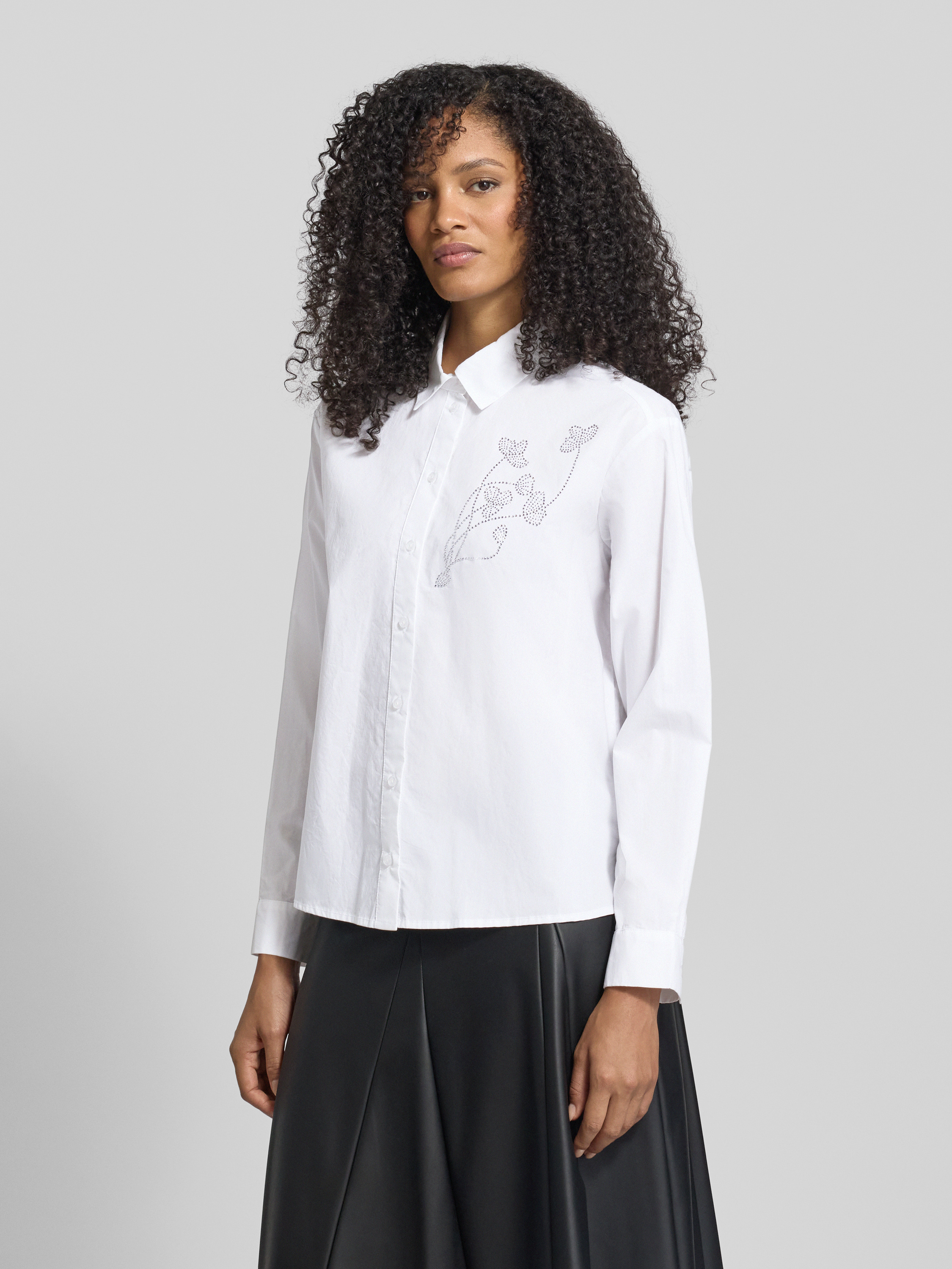 Bluzka koszulowa o kroju regular fit z obszyciem ozdobnymi kamieniami - biały