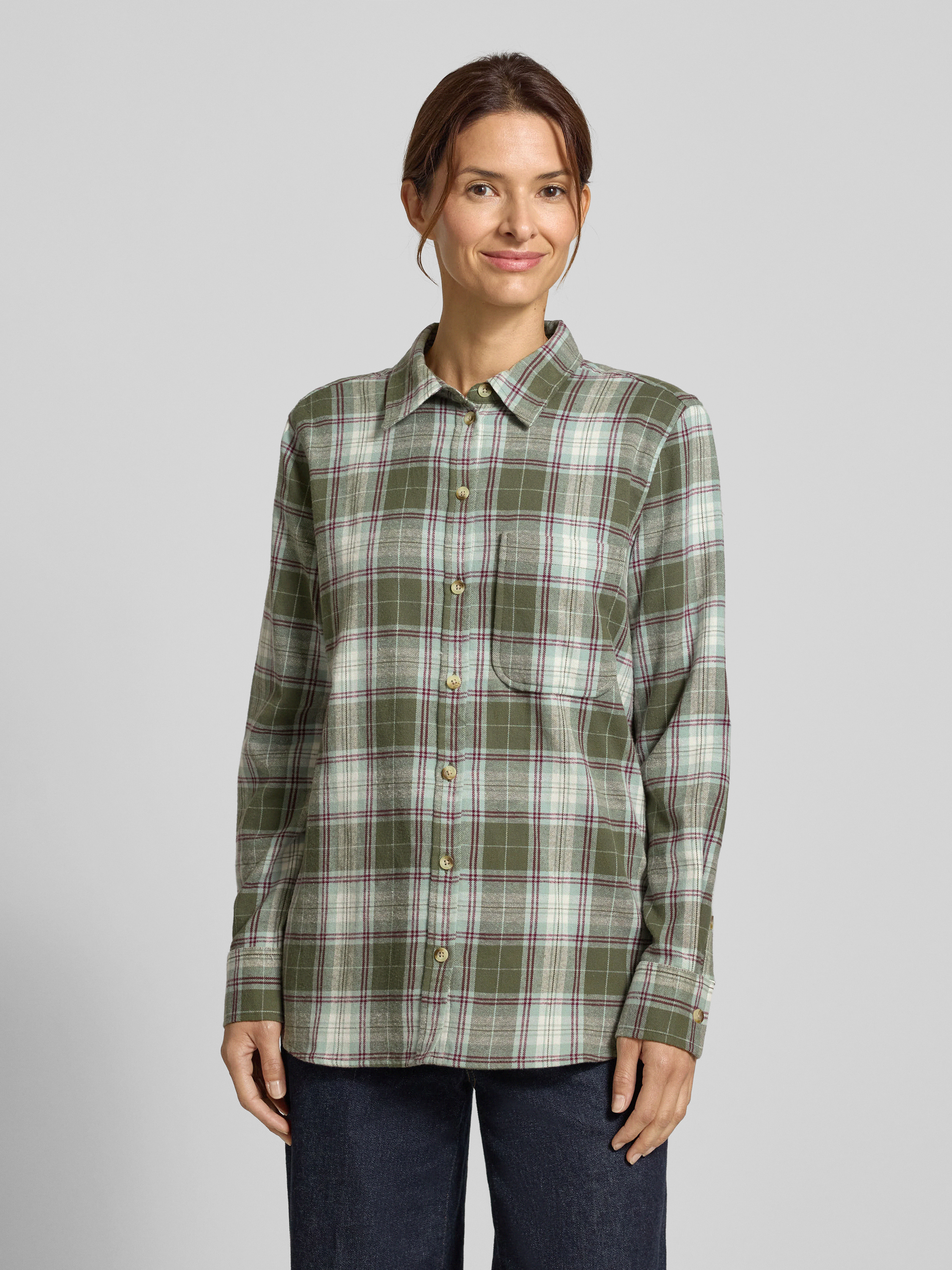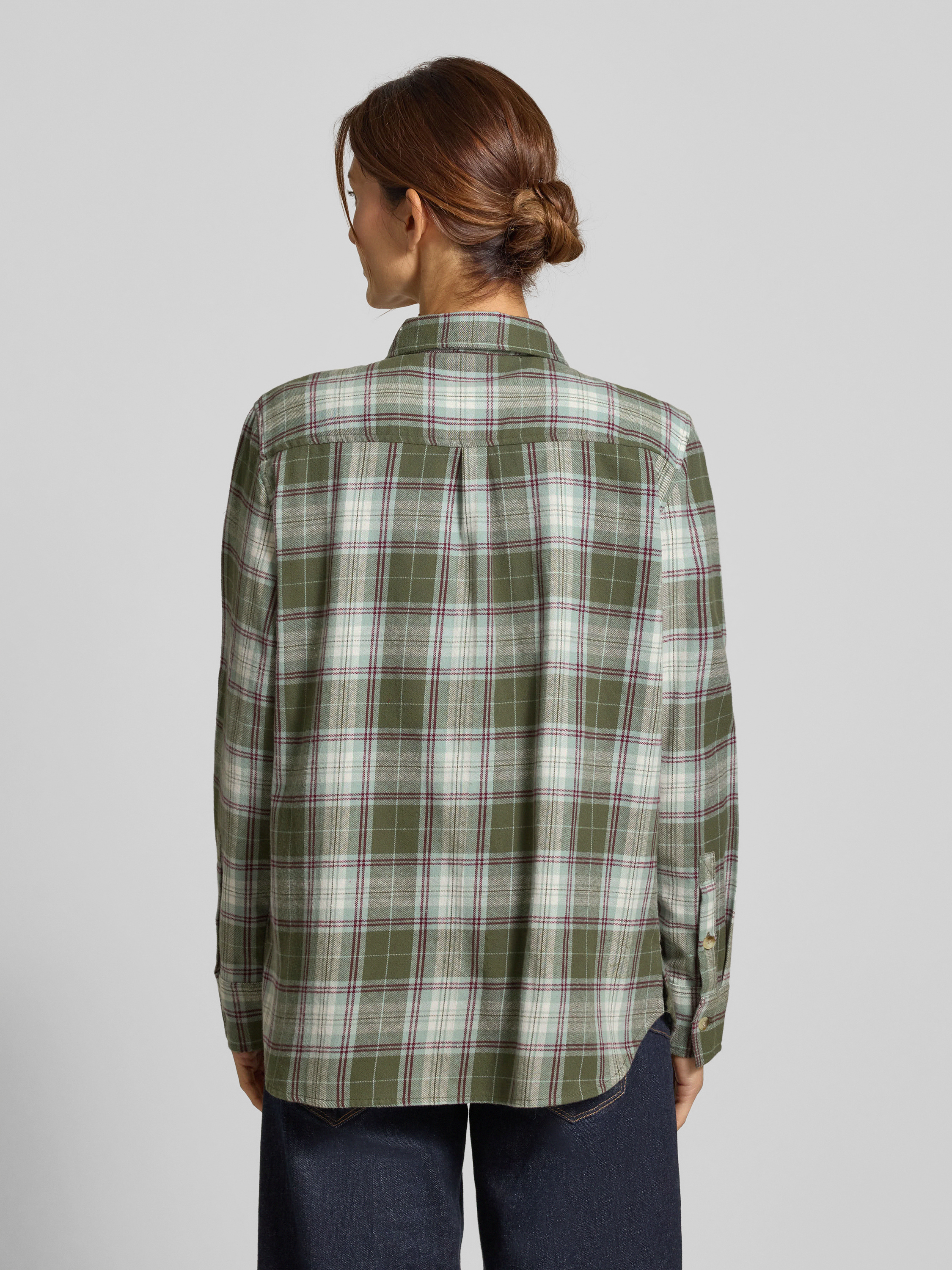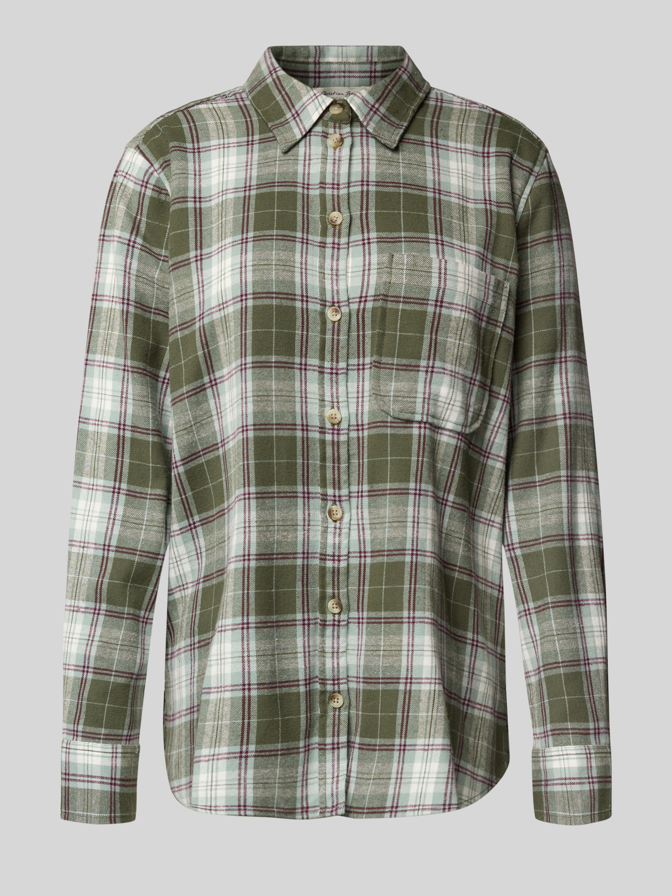 Bluzka koszulowa o kroju relaxed fit z kieszenią na piersi - oliwkowy