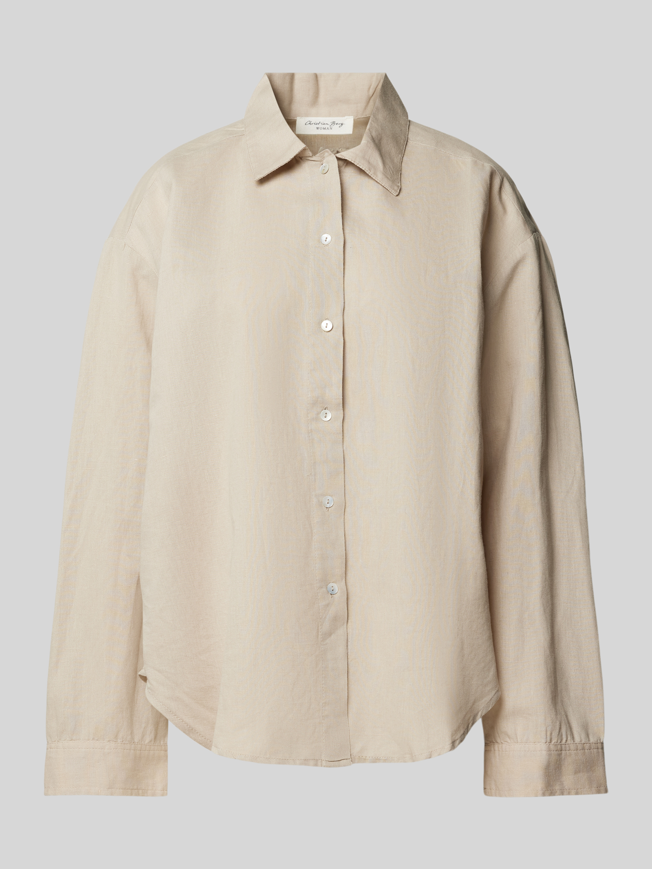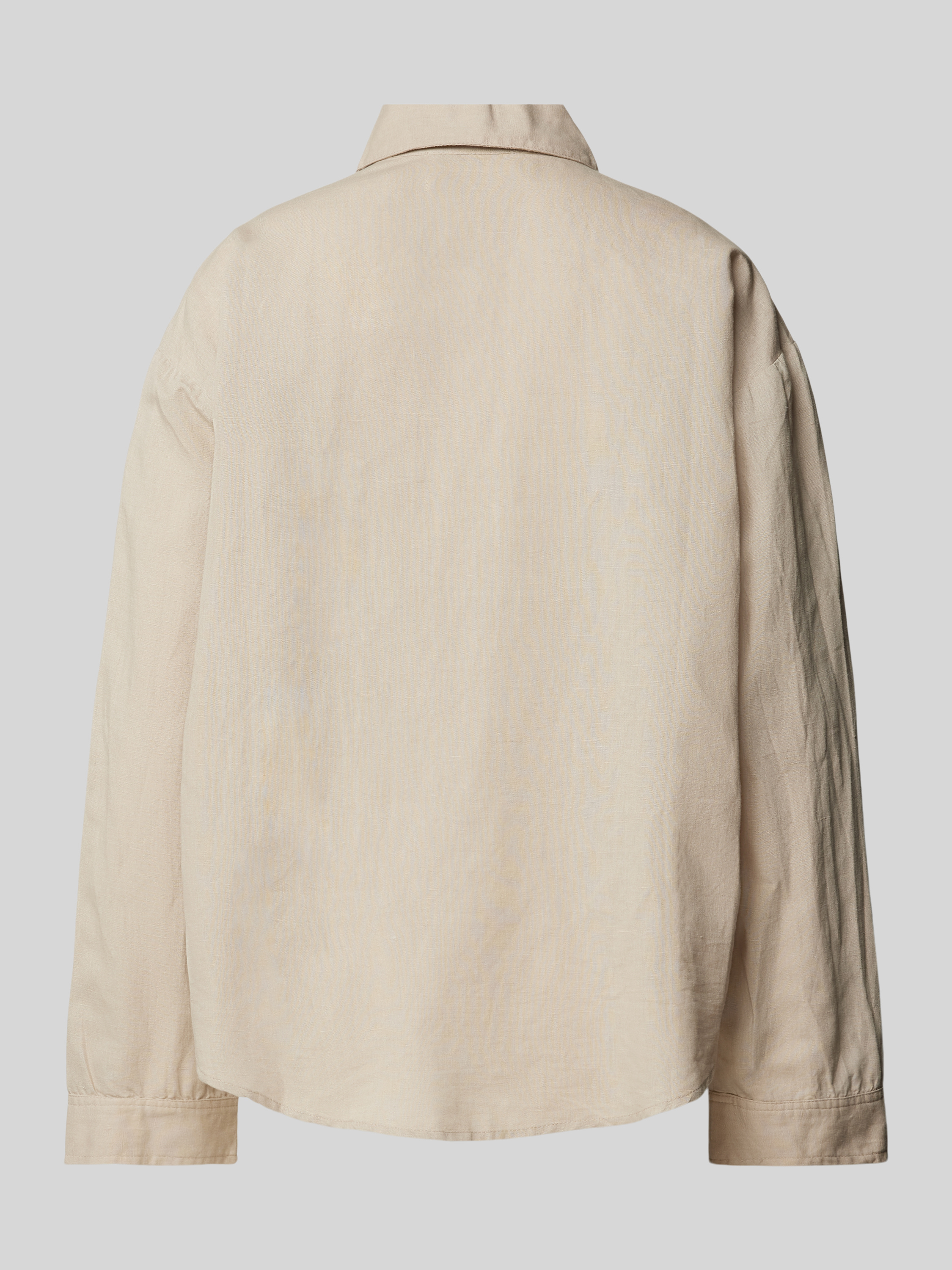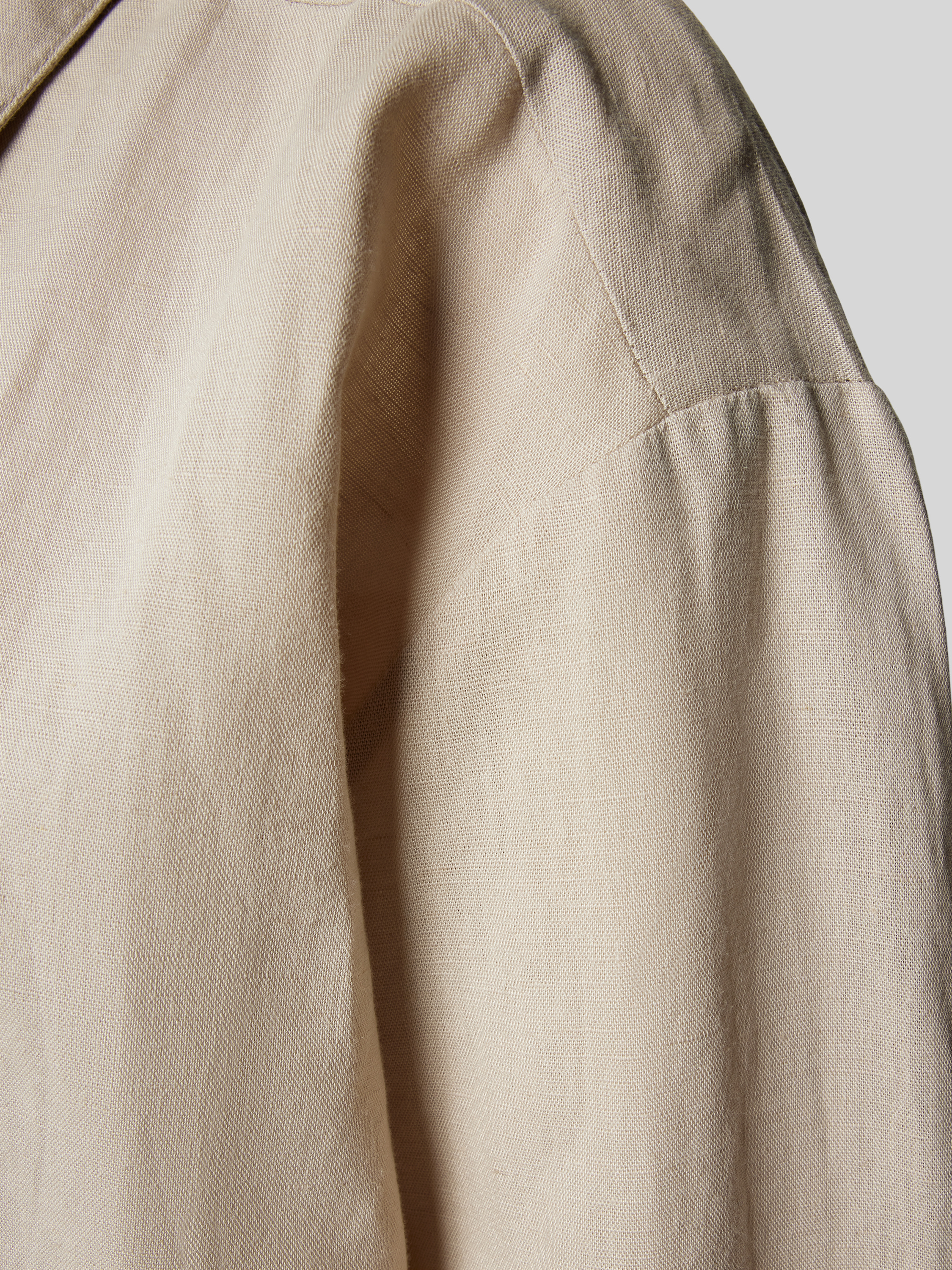 Bluzka lniana o kroju relaxed fit z listwą guzikową na całej długości - beżowy