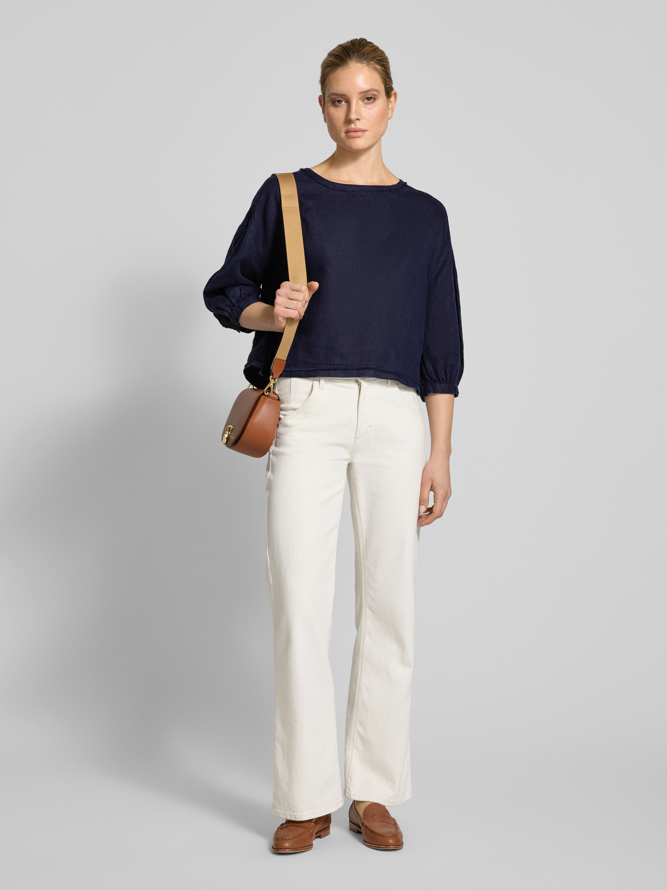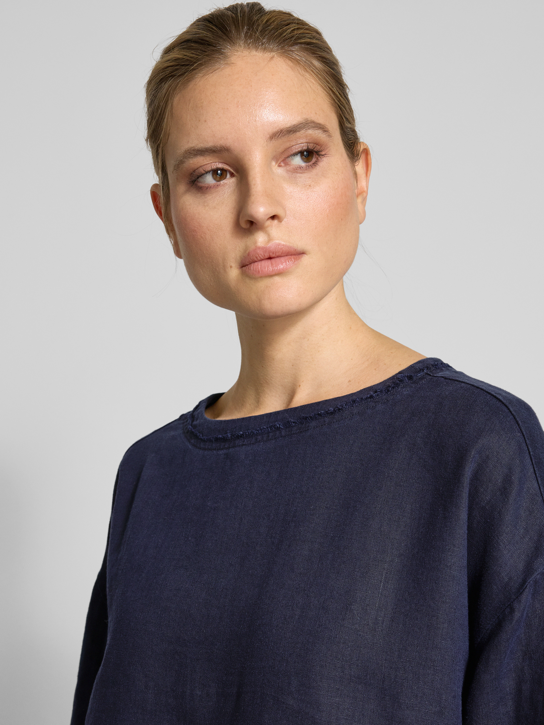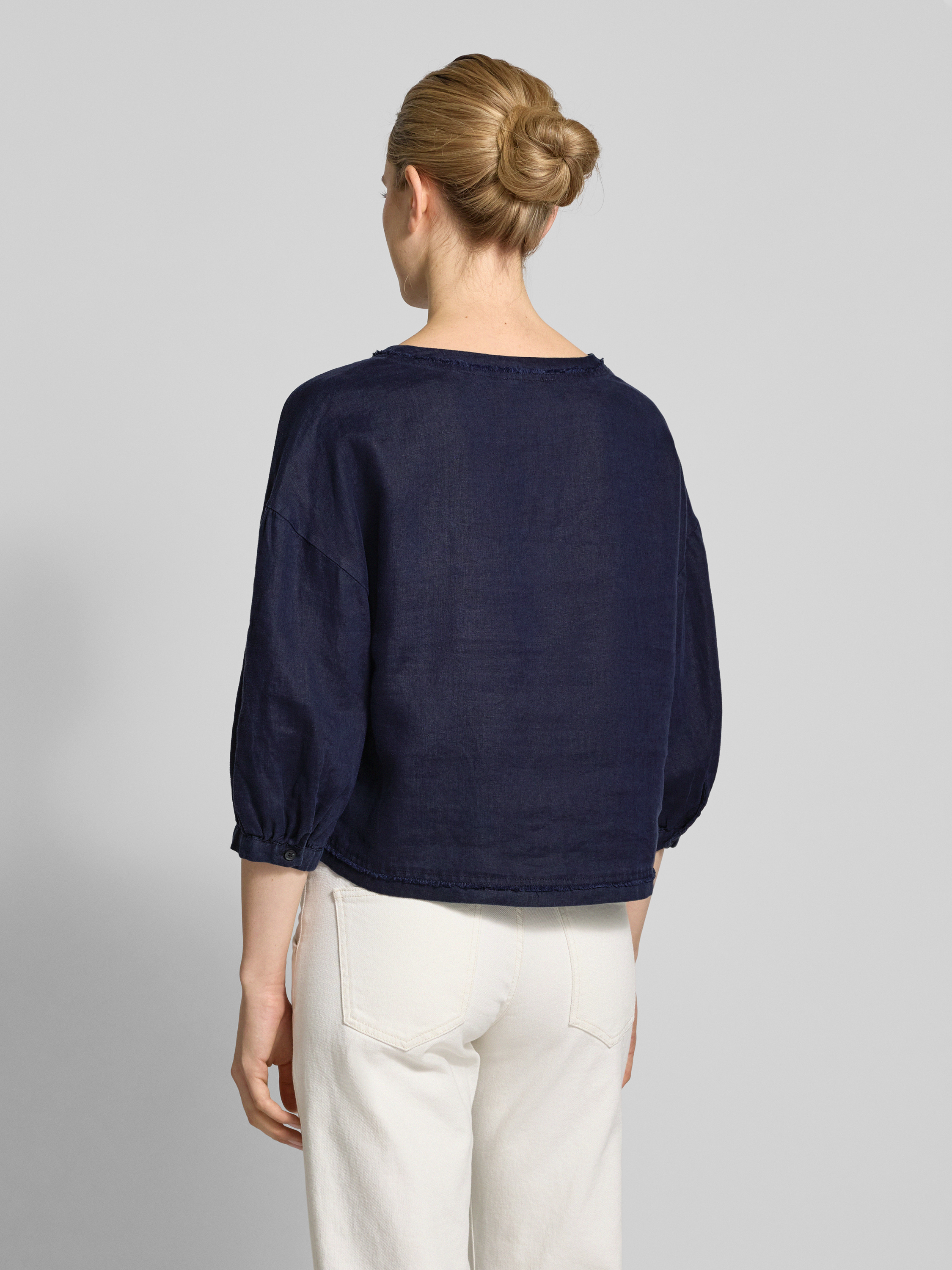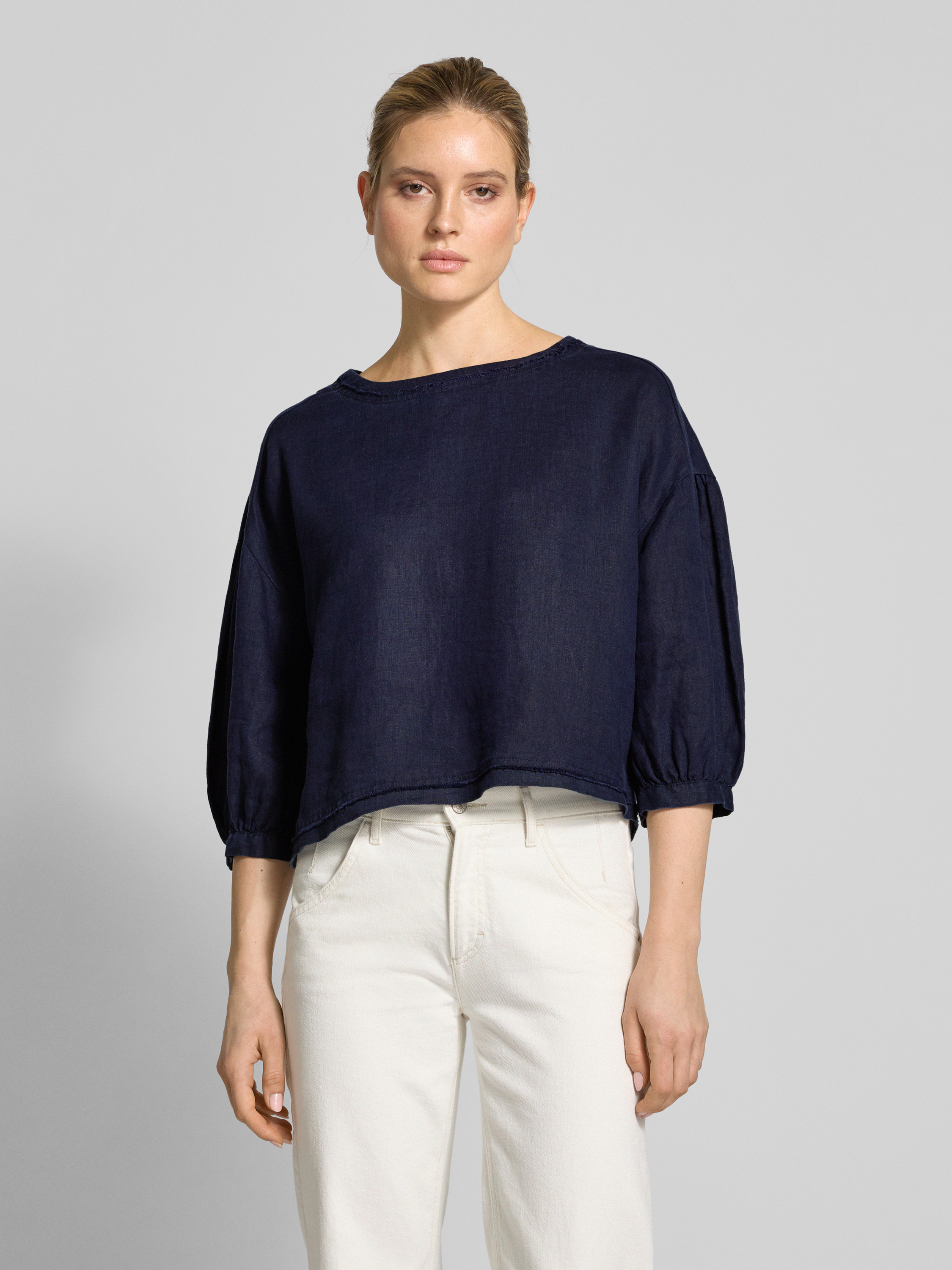 Christian Berg WomanBluzka lniana o kroju relaxed fit z rękawem o dł. 3/4 - ciemnoniebieski