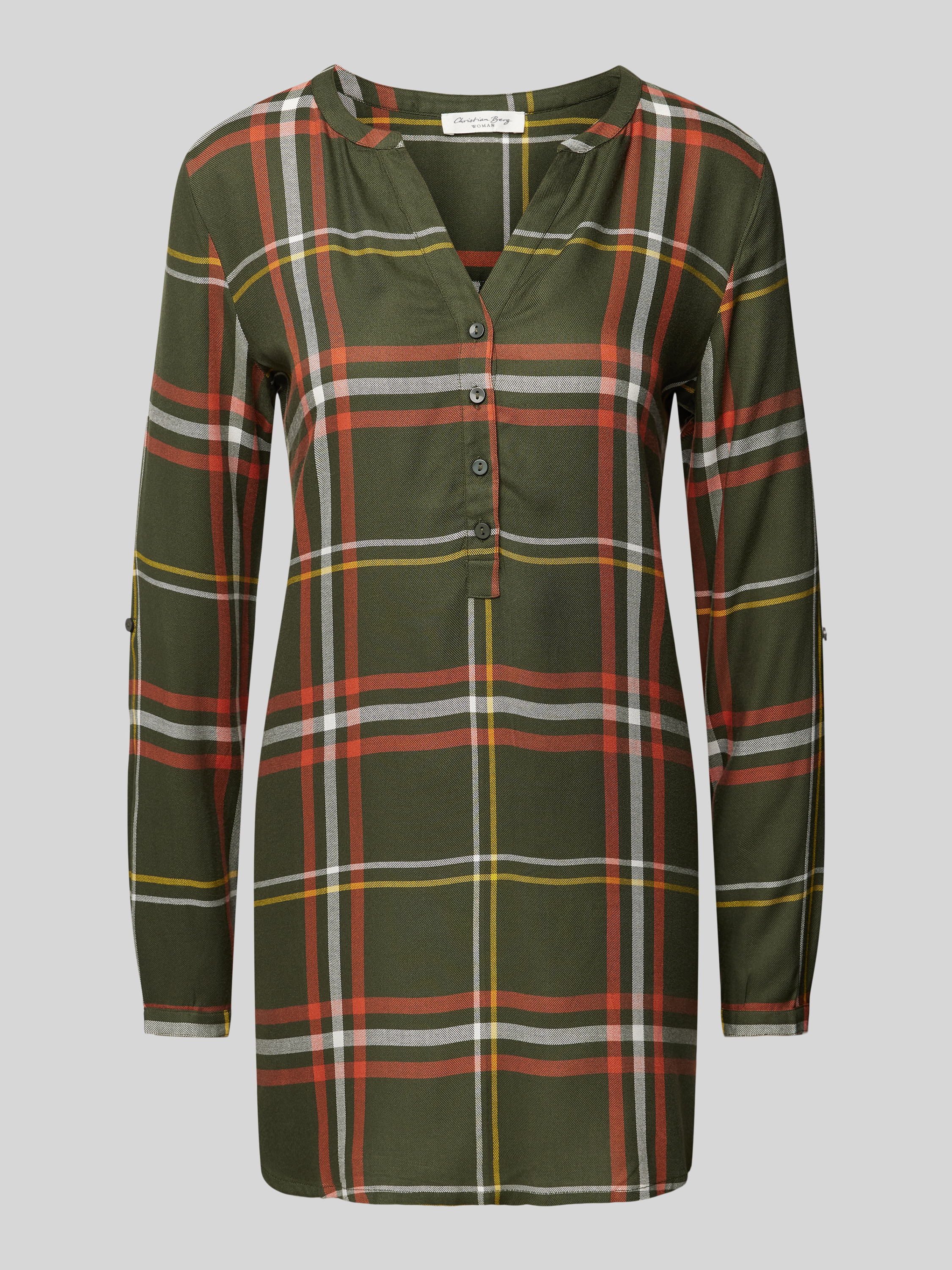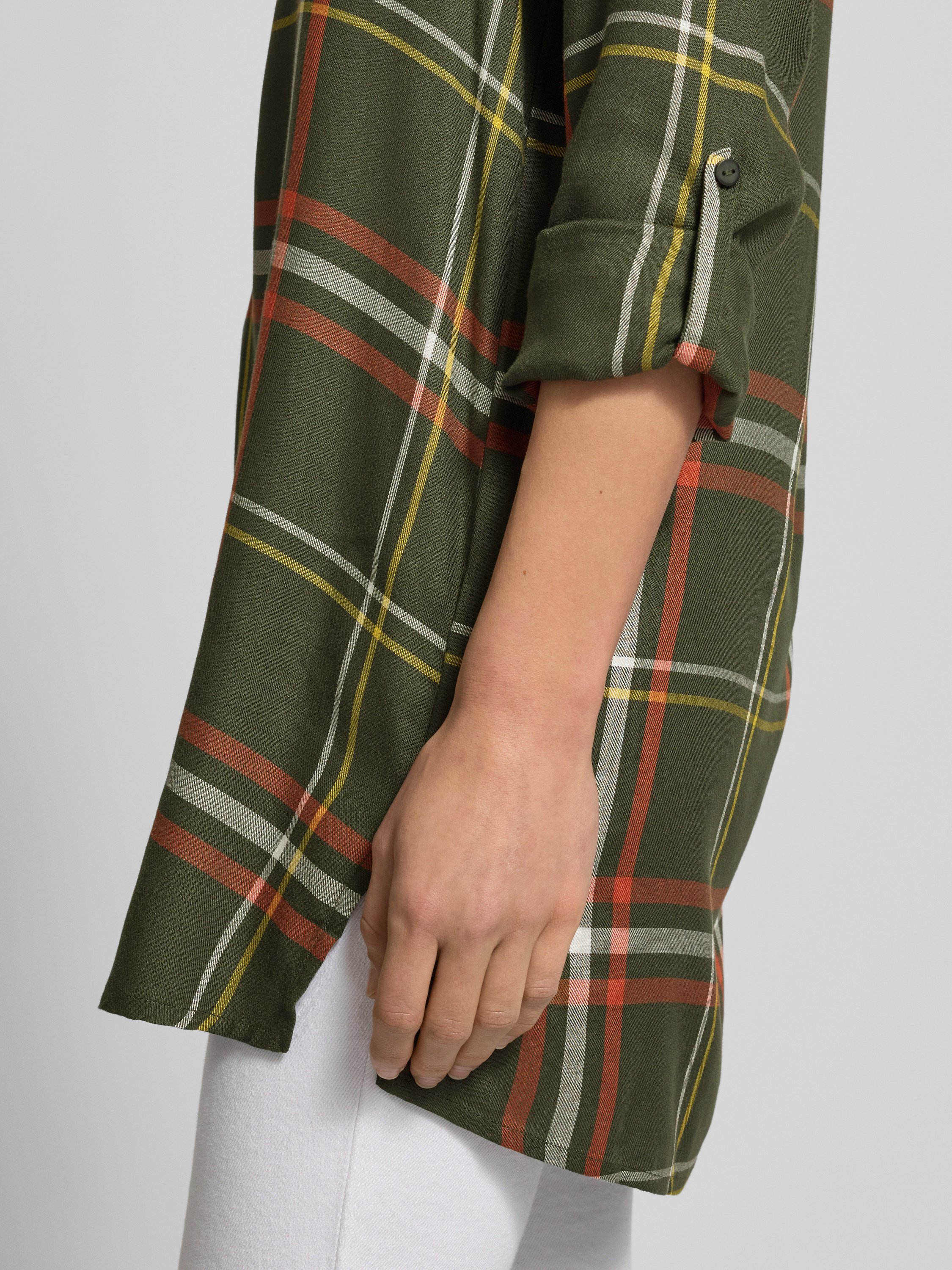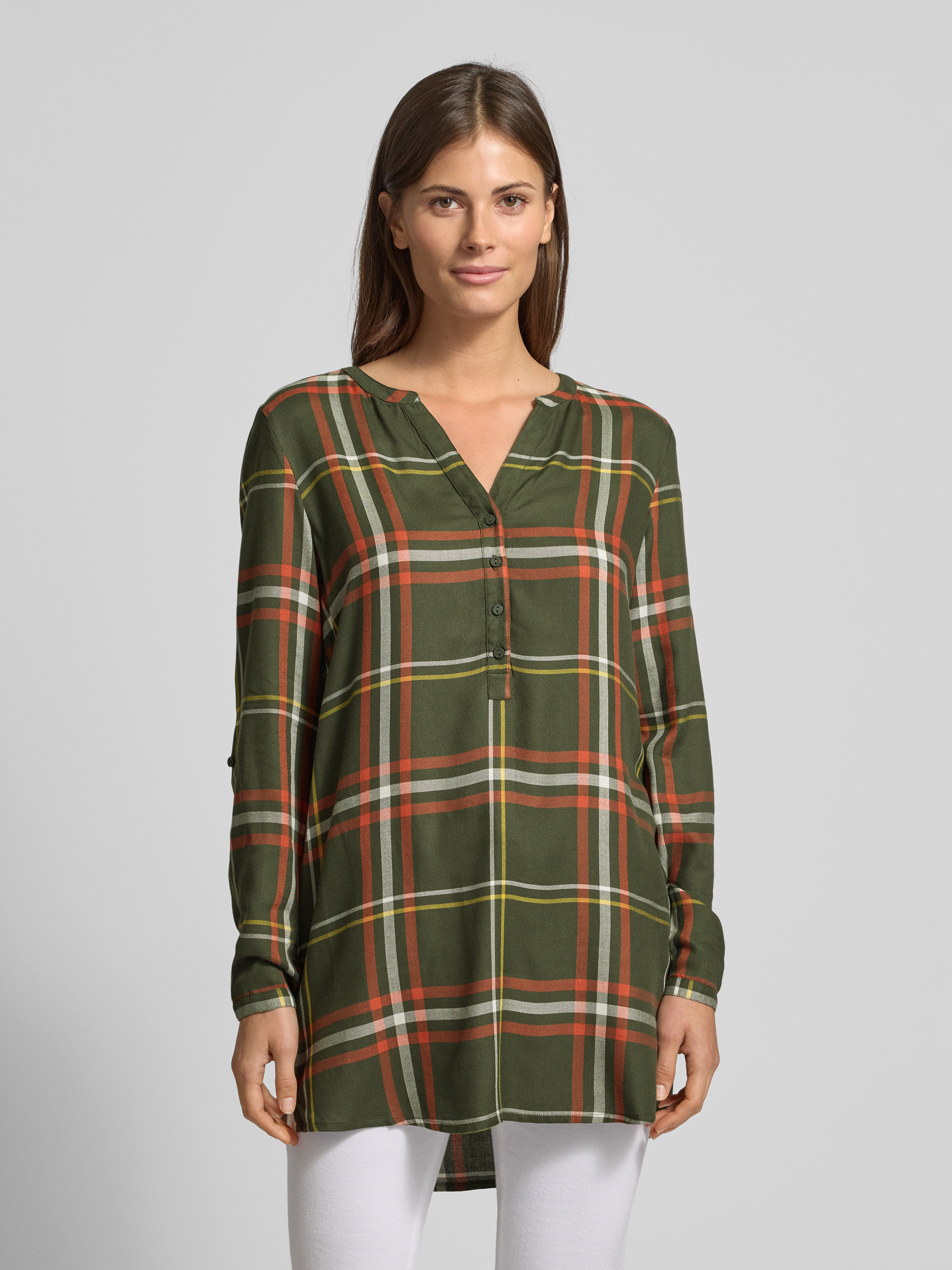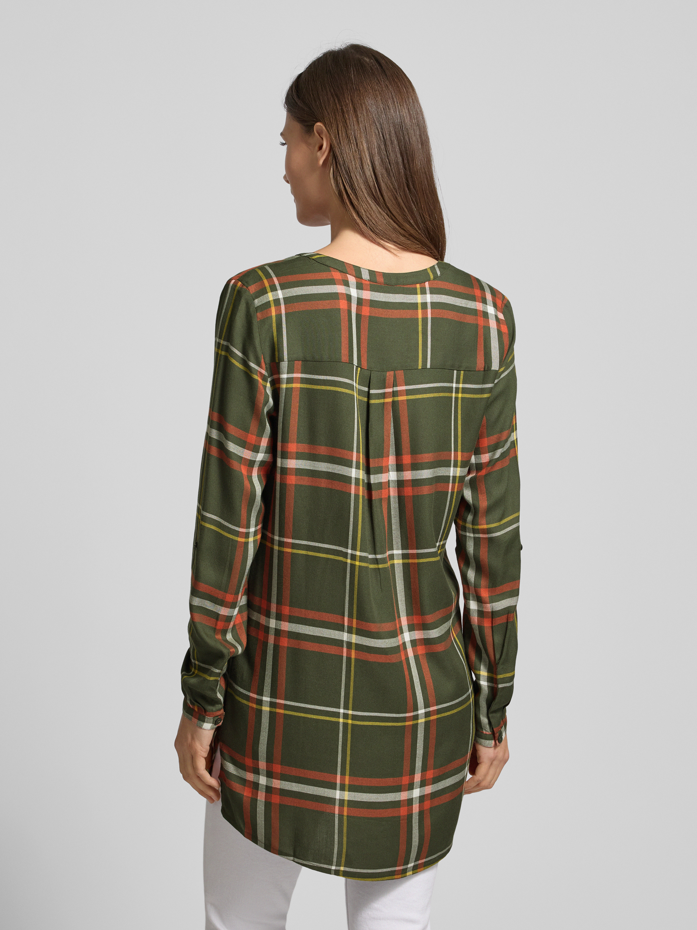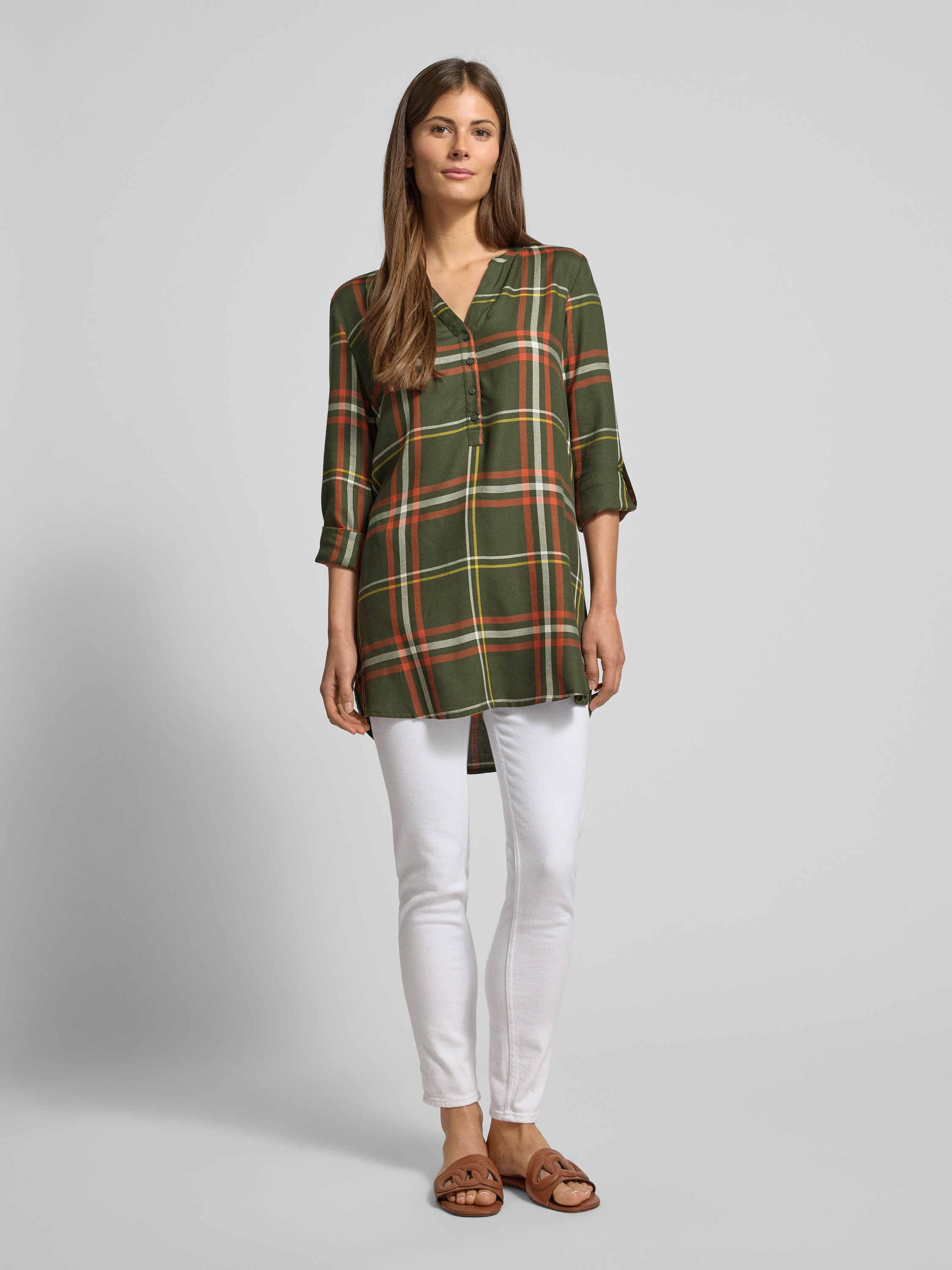 Bluzka o kroju oversized z krótką listwą guzikową - oliwkowy