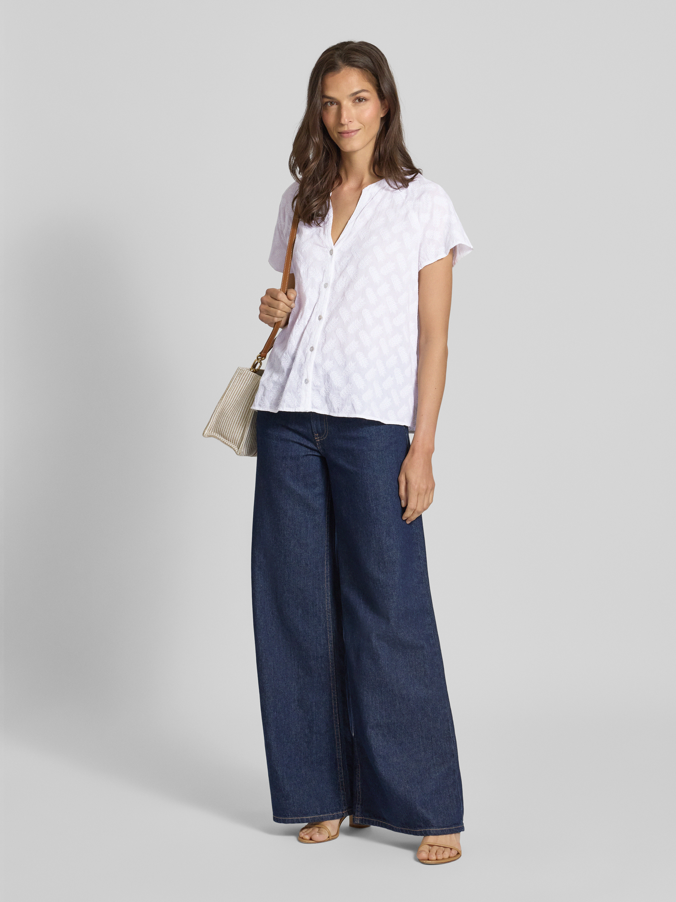 Bluzka o kroju regular fit z dekoltem w serek - biały