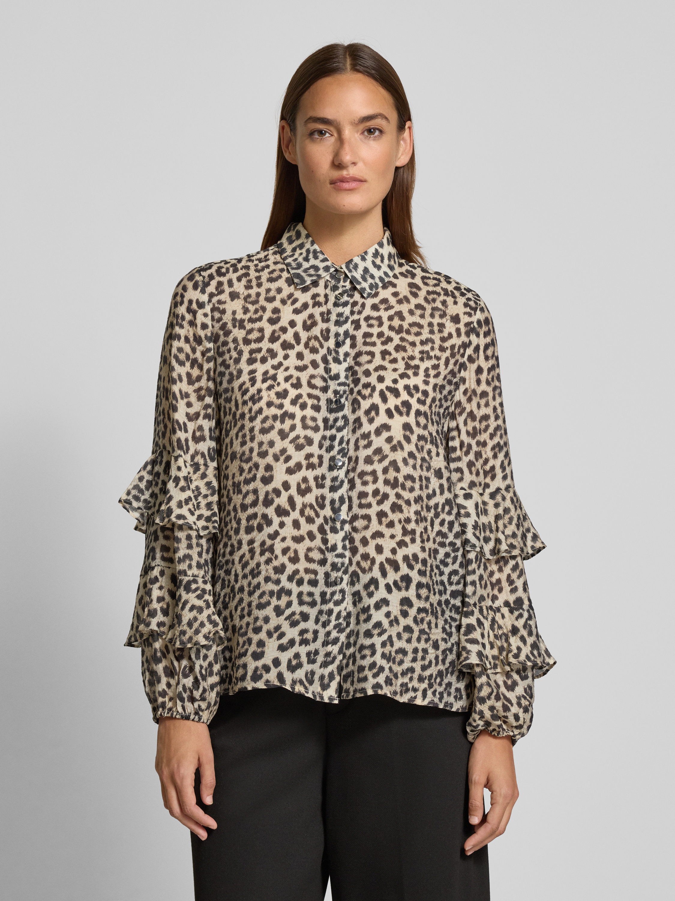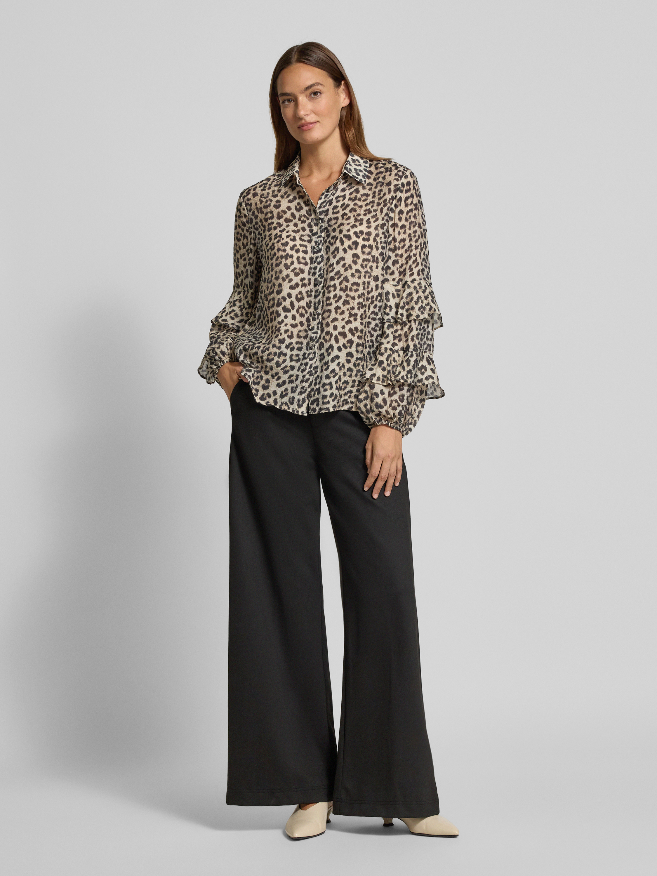 Bluzka o kroju regular fit z mieszanki wiskozy z falbanami - piaskowy