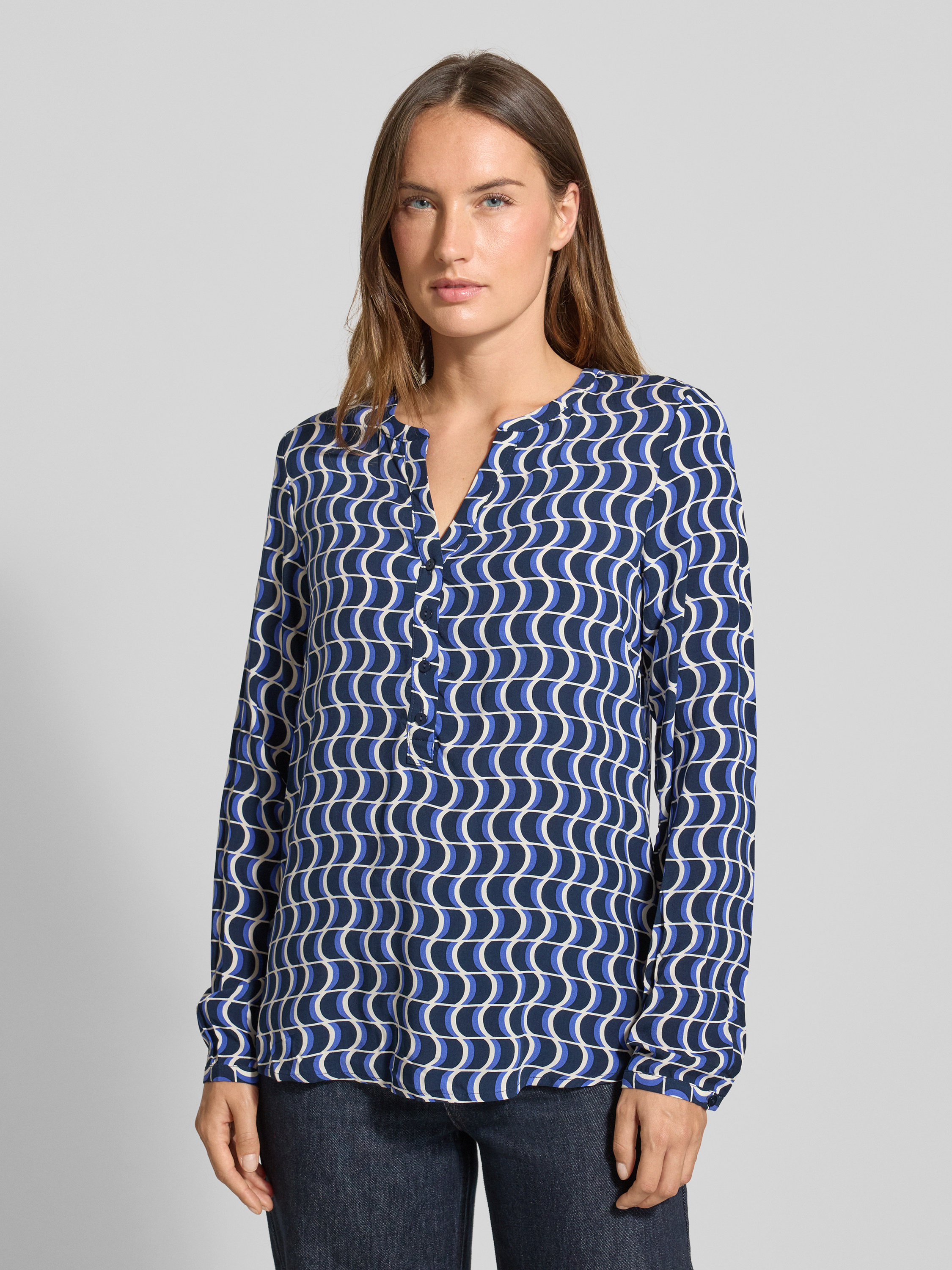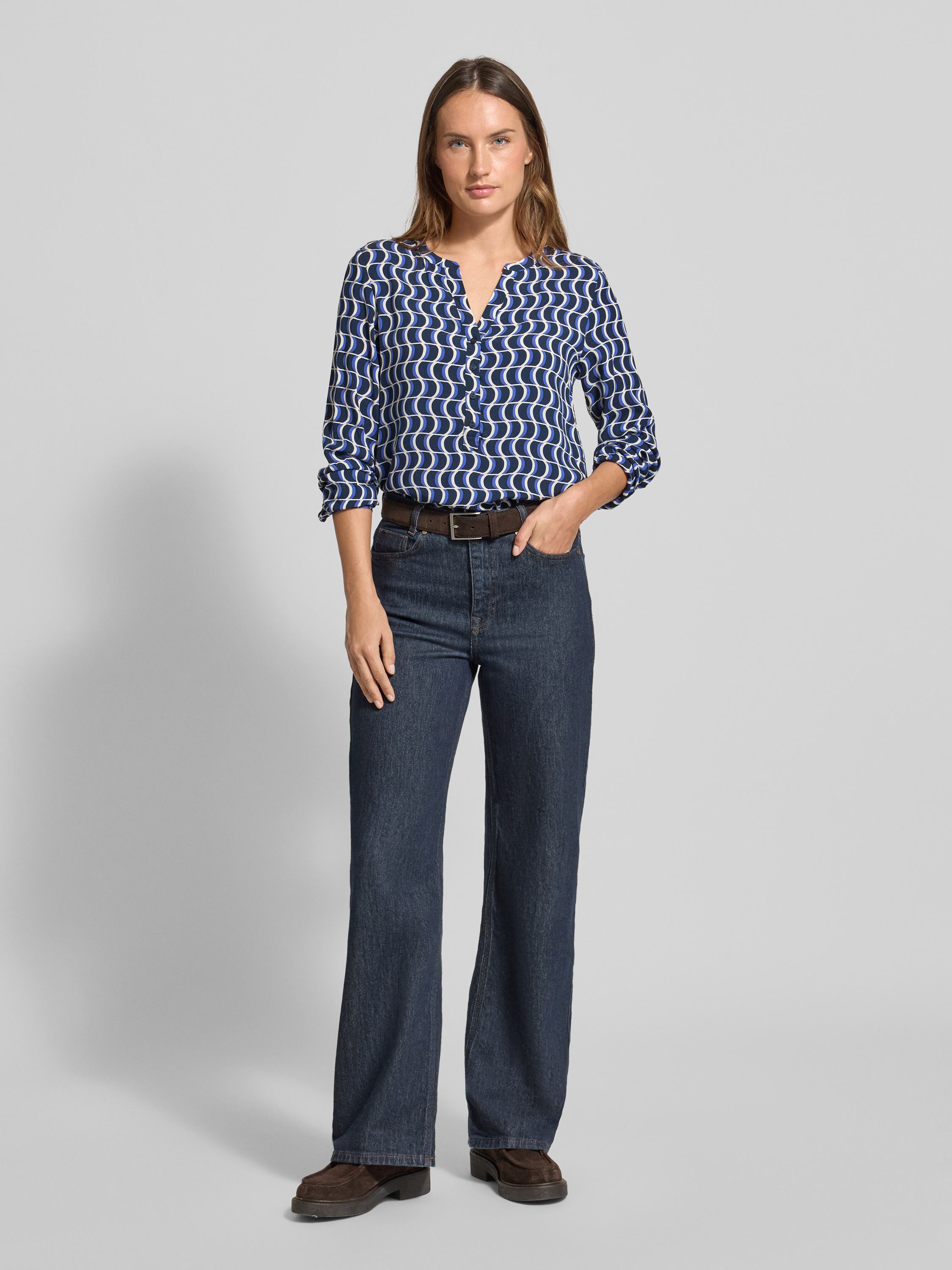 Bluzka o kroju regular fit z wiskozy z dekoltem w serek - ciemnoniebieski