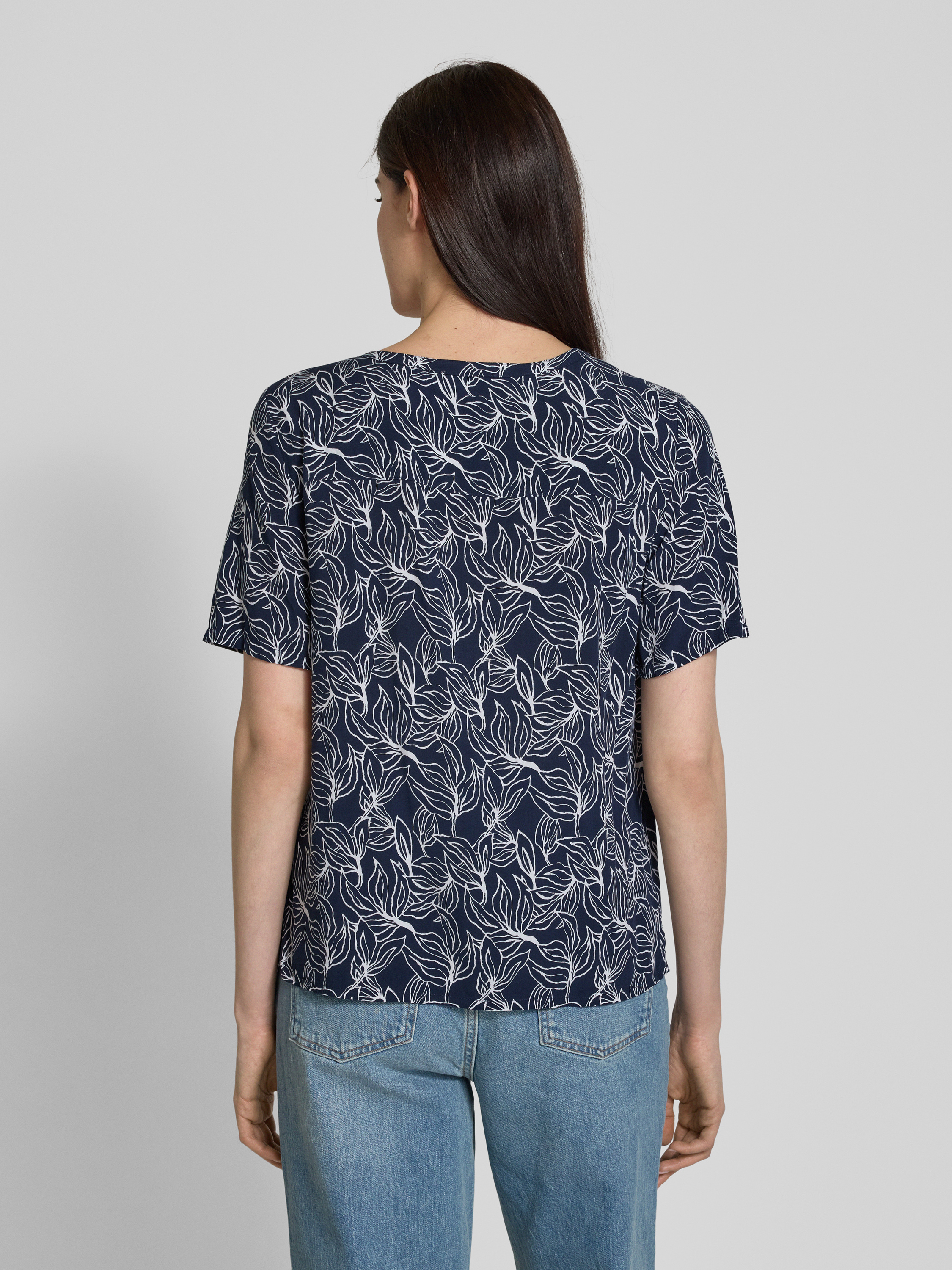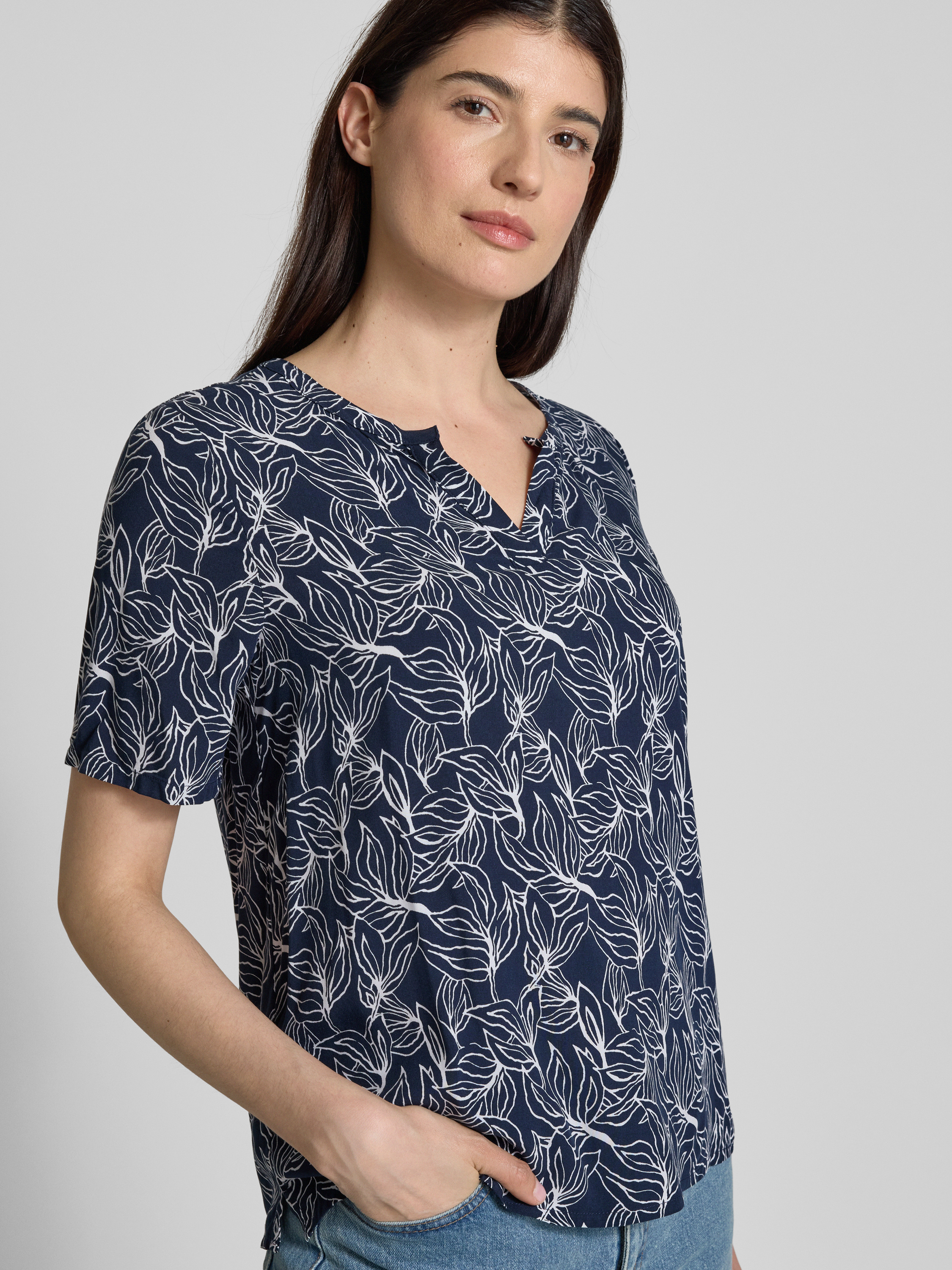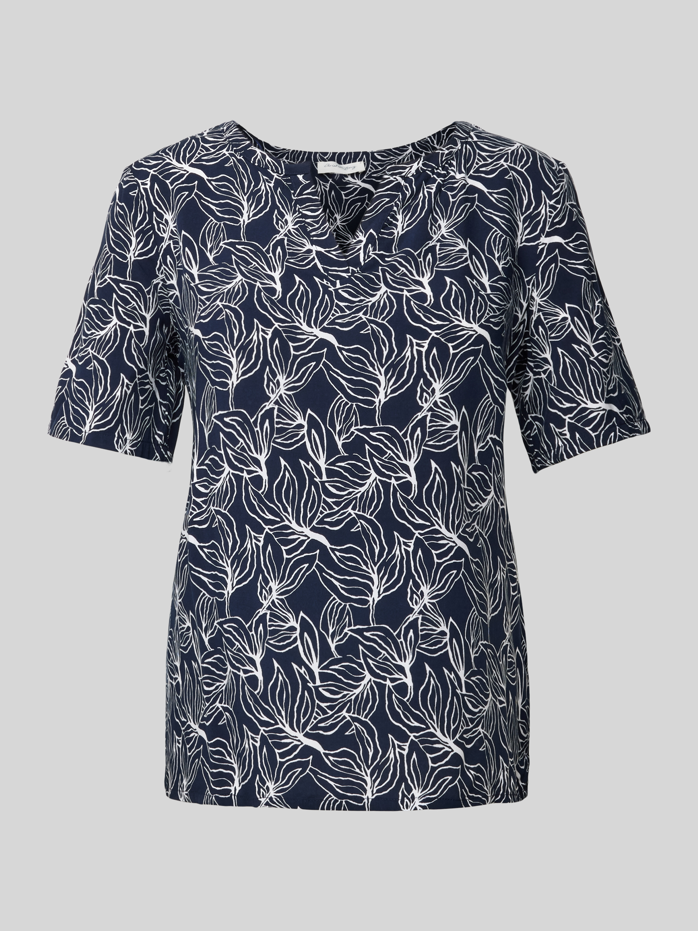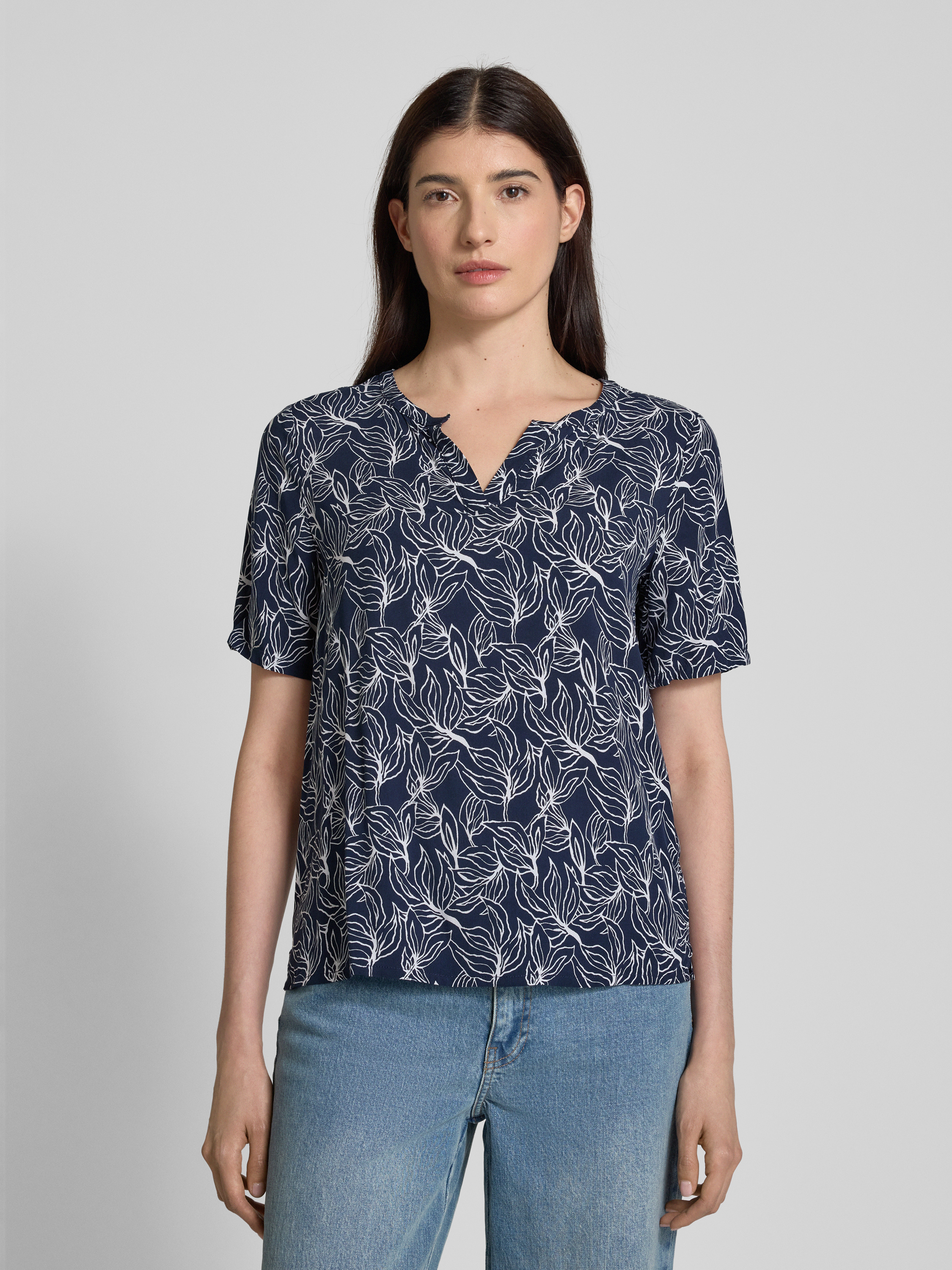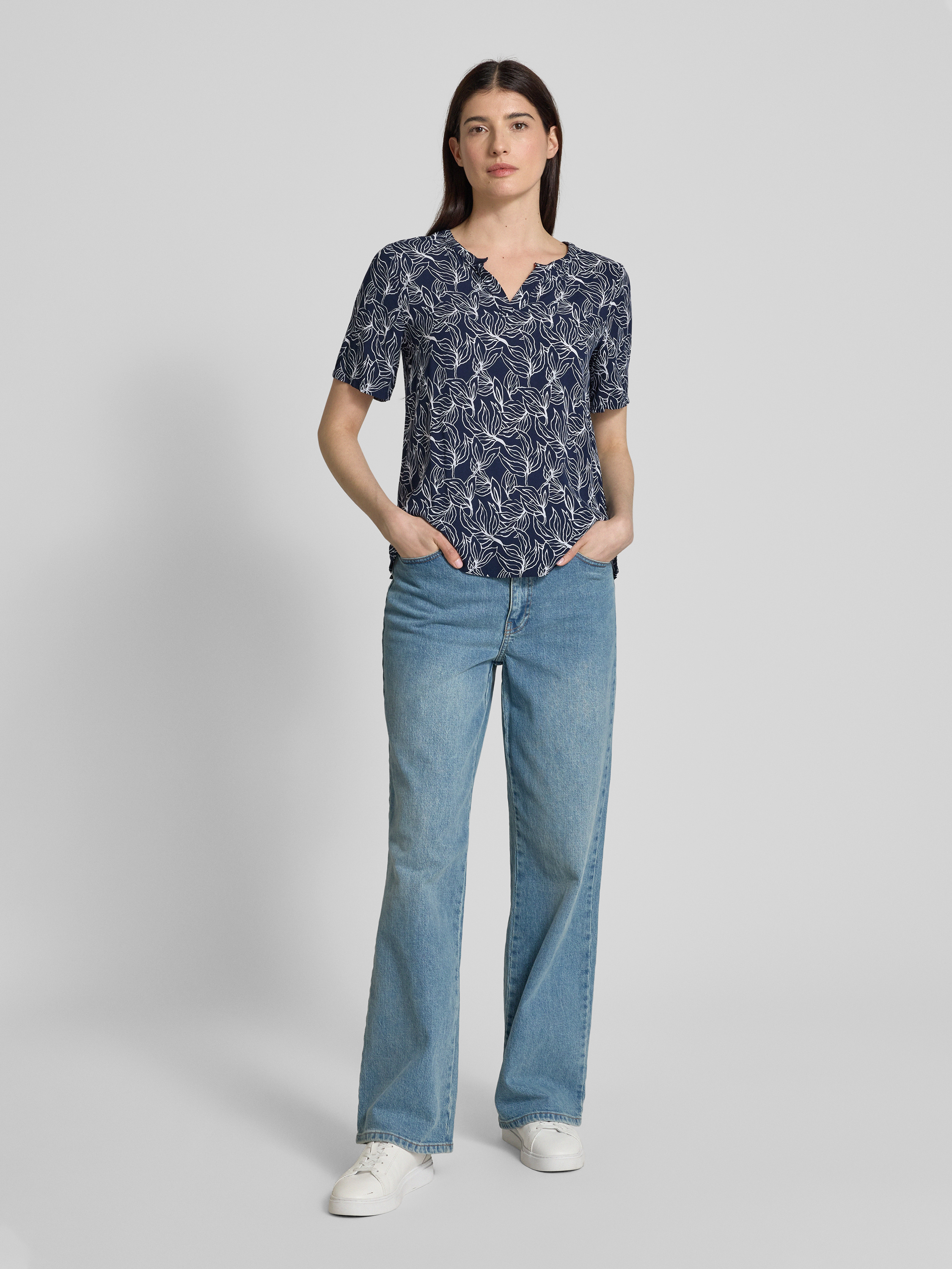 Bluzka o kroju slim fit z kołnierzem z lamówką - ciemnoniebieski