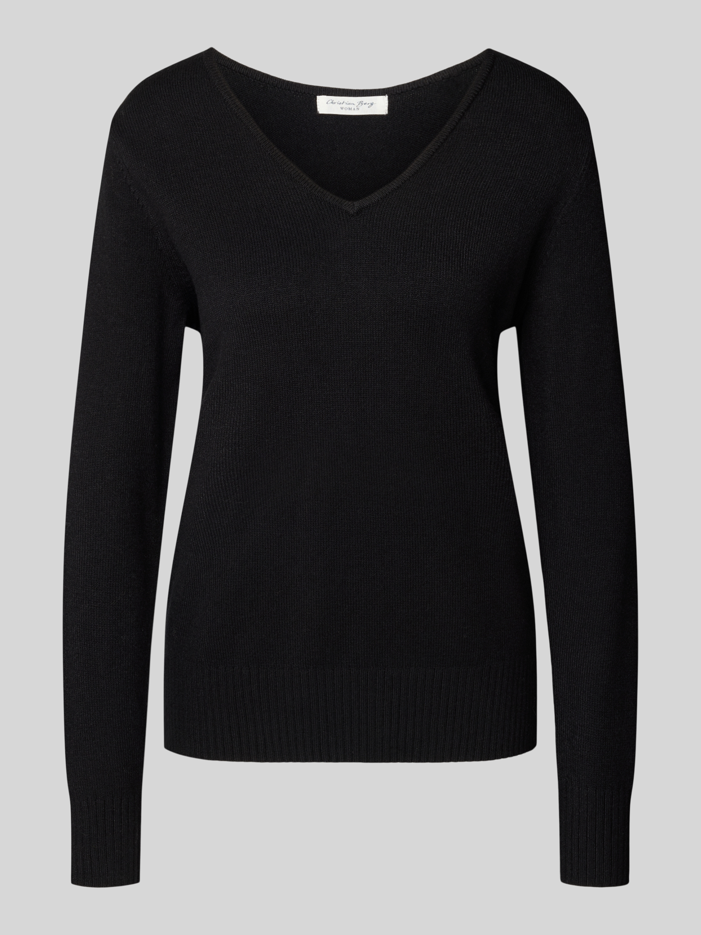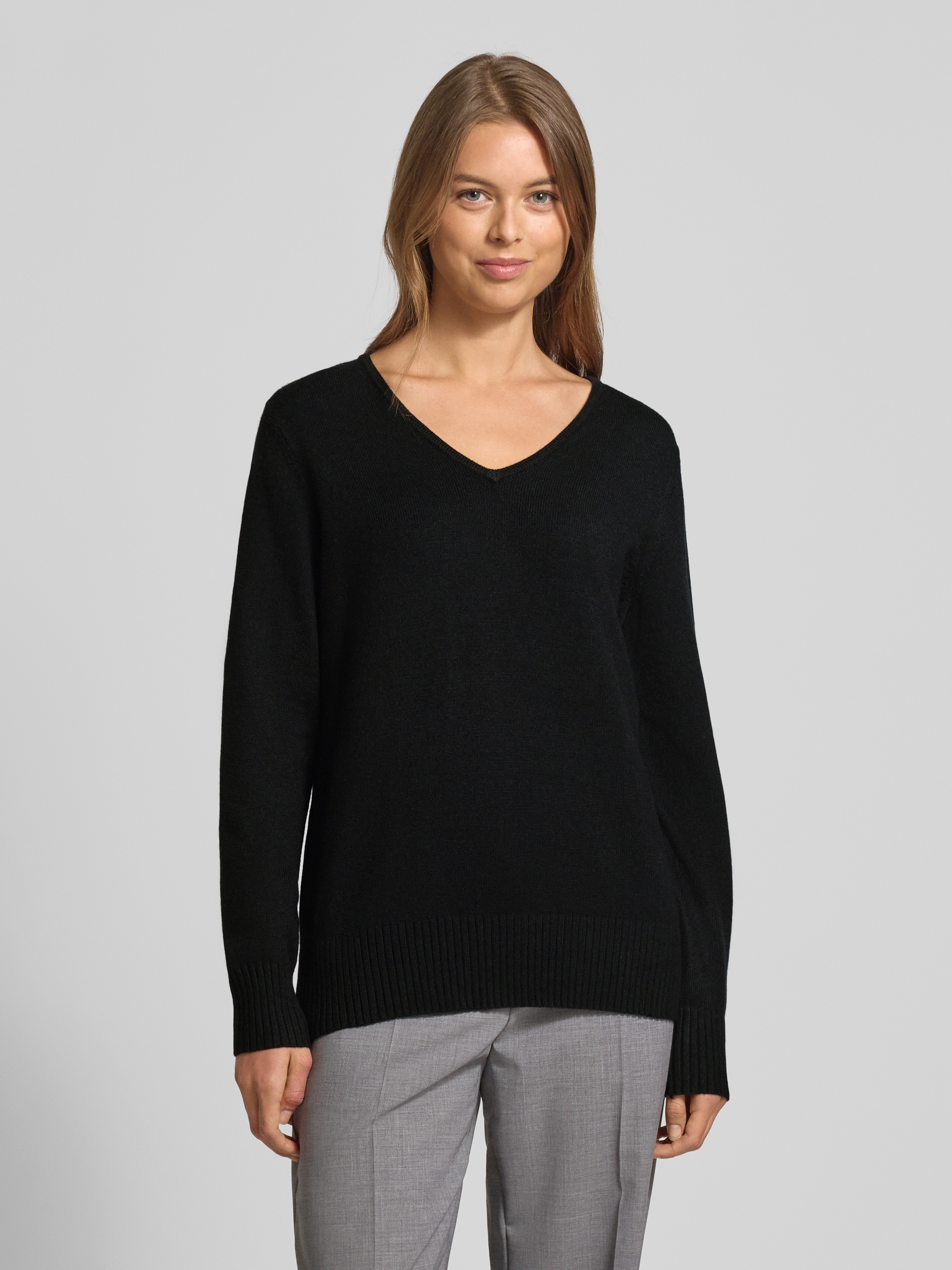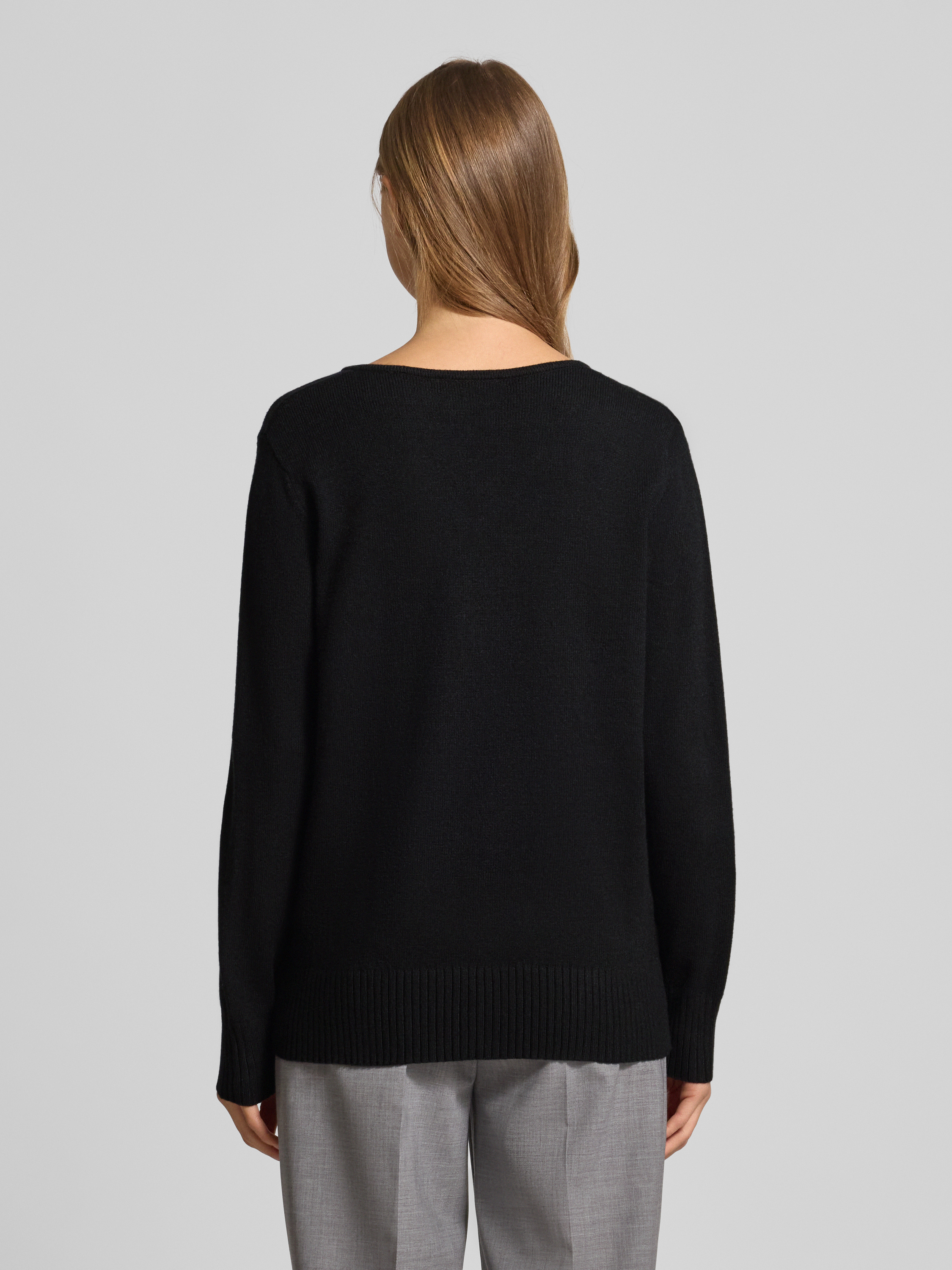 Bluzka z długim rękawem o kroju regular fit z imitacji dzianiny z mieszanki wiskozy - czarny