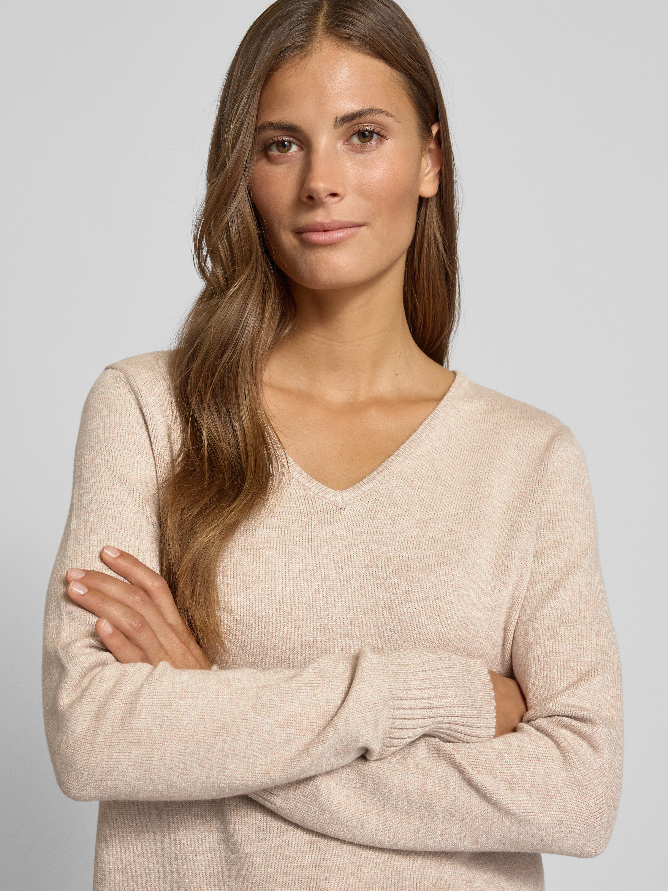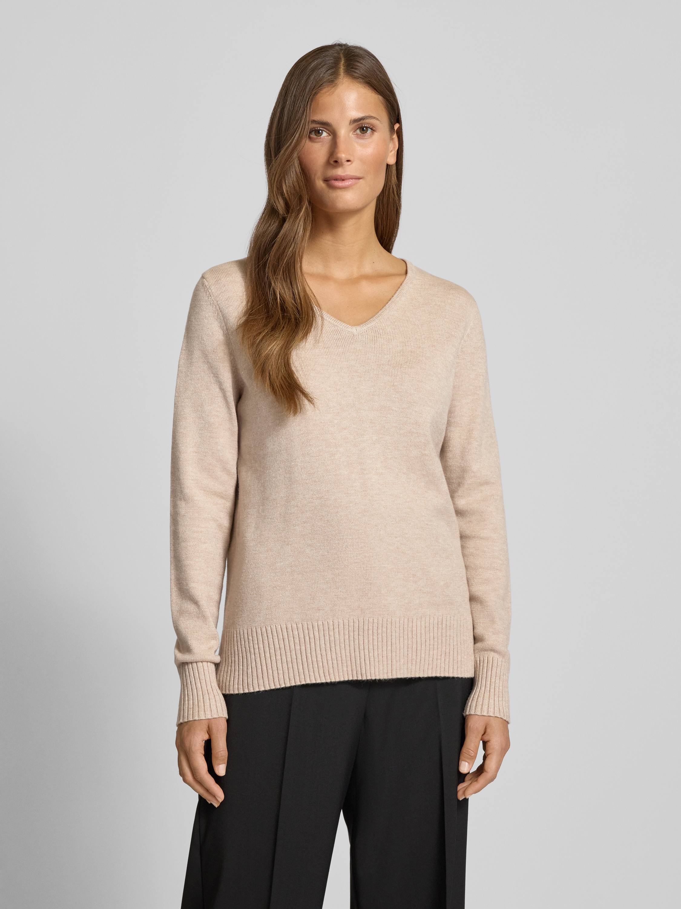 Bluzka z długim rękawem o kroju regular fit z imitacji dzianiny z mieszanki wiskozy - metaliczny beżowy melanż