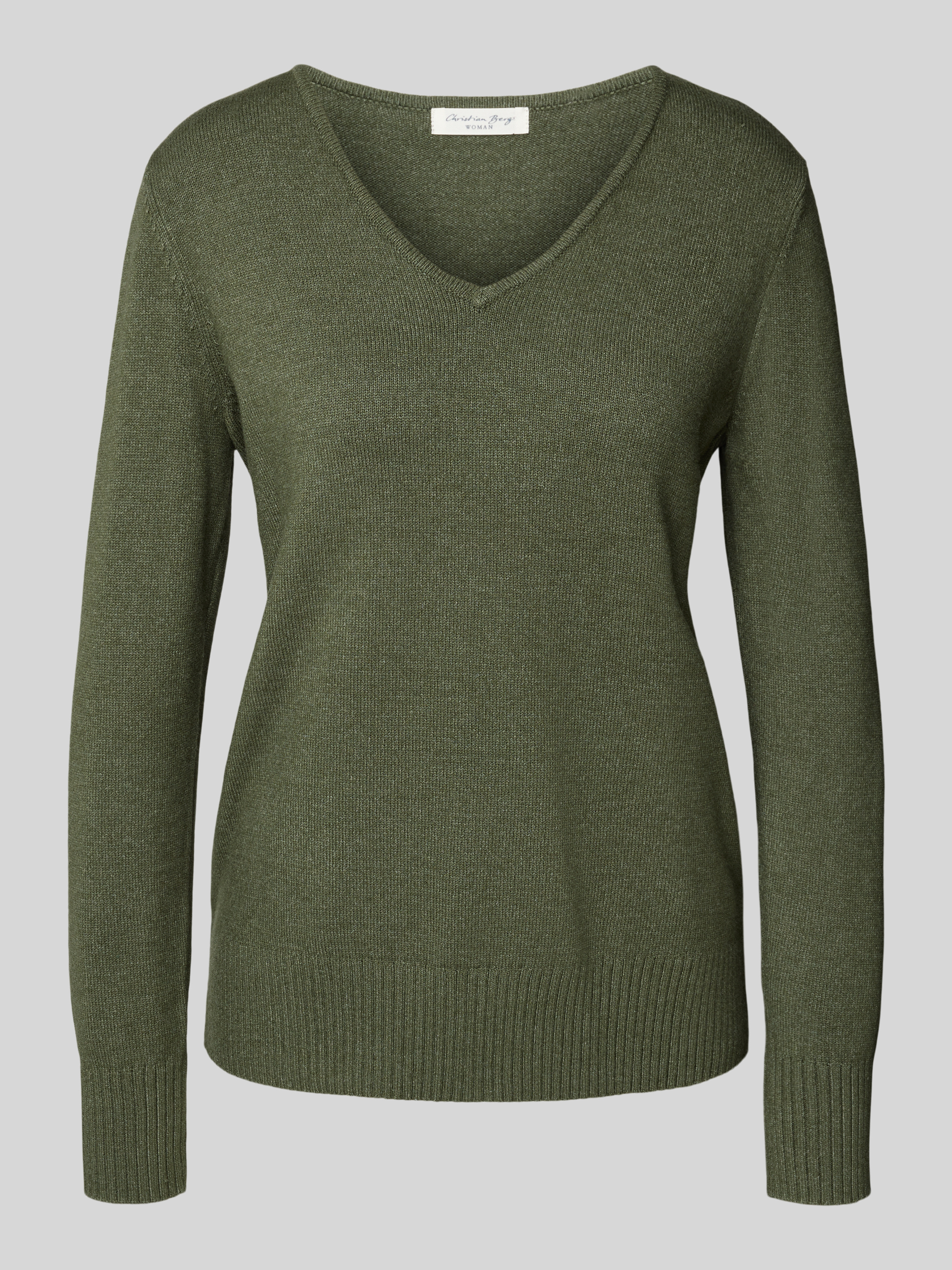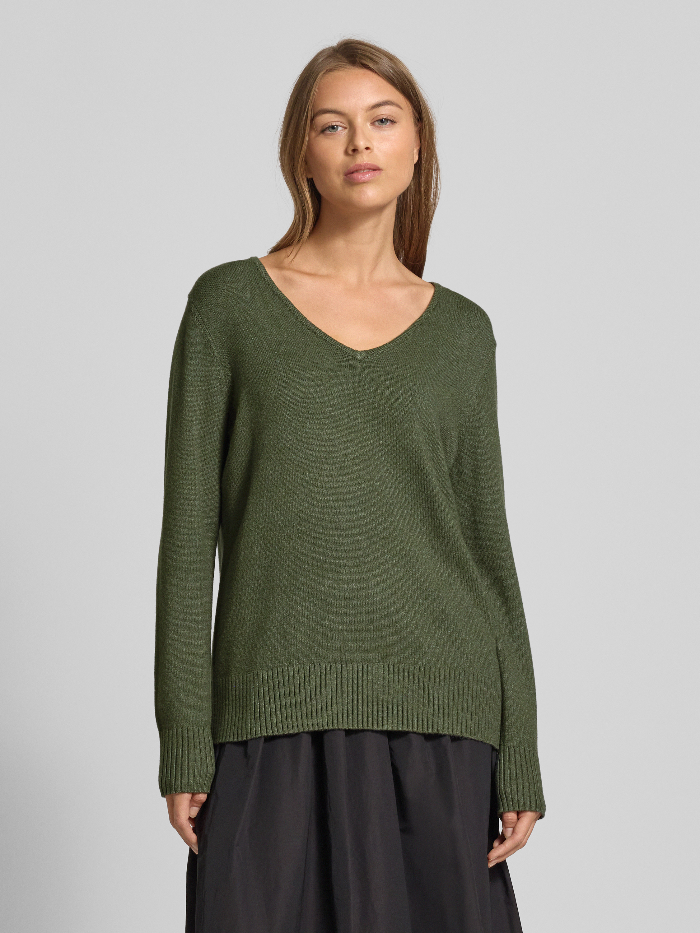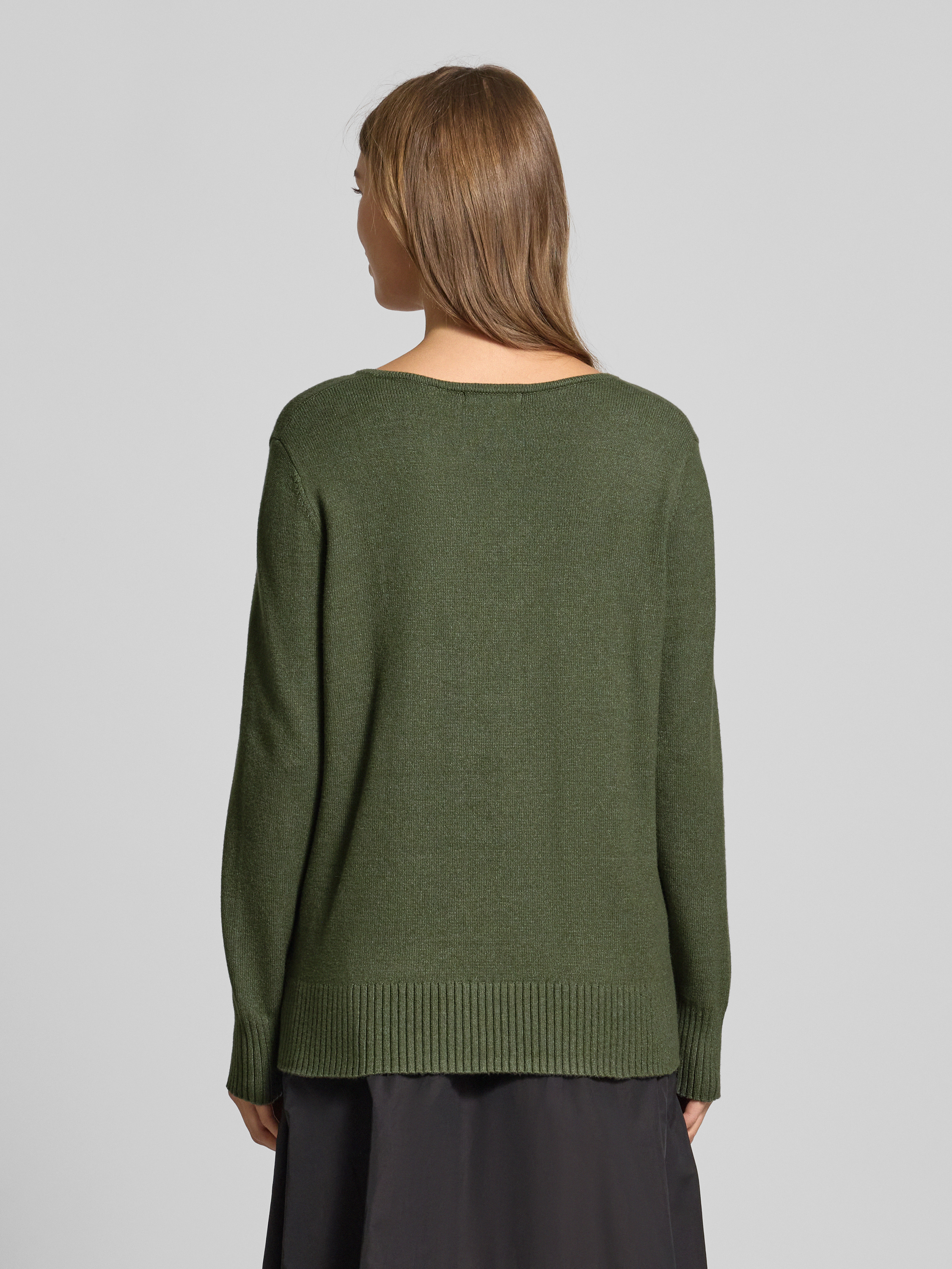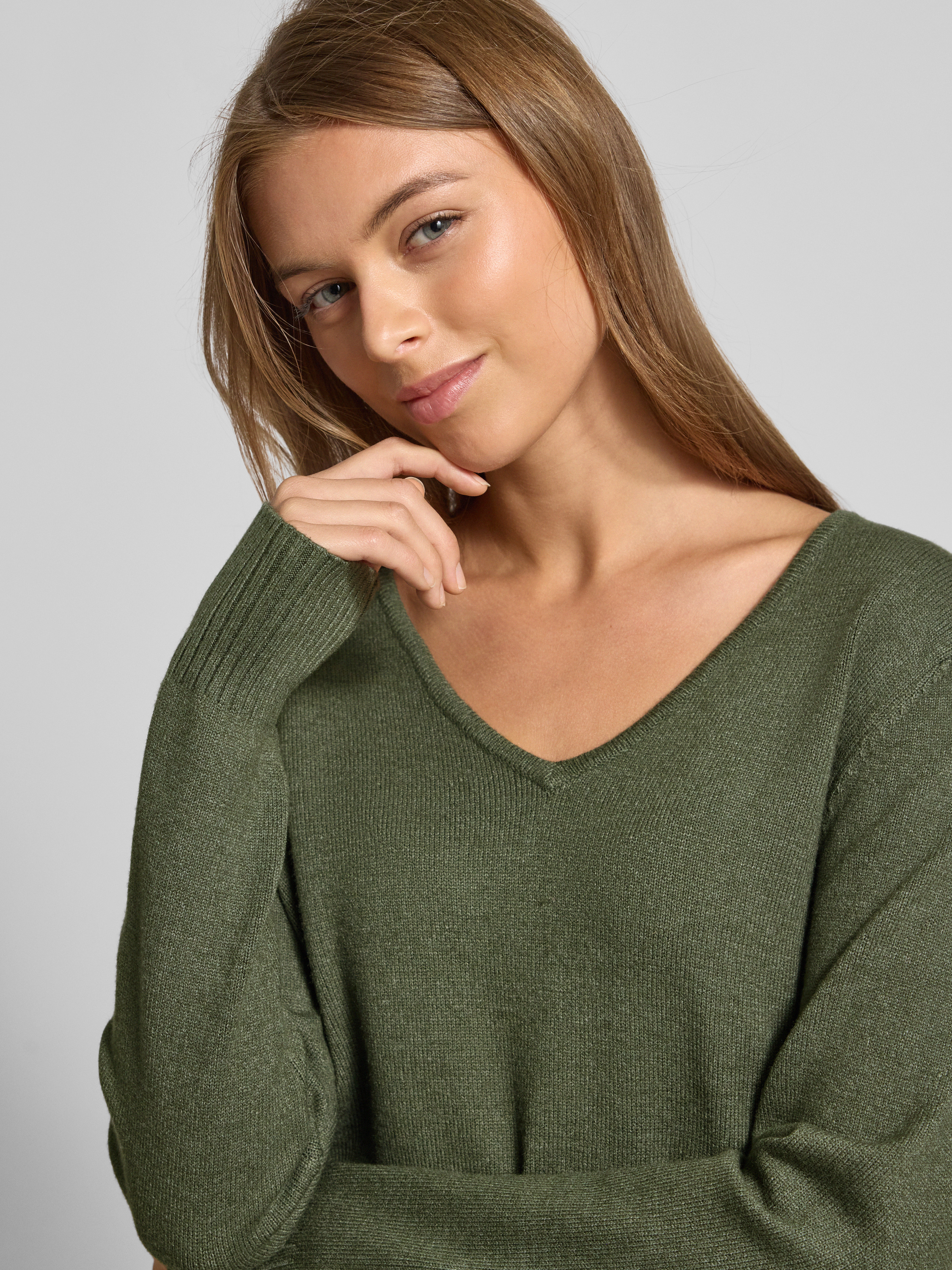Bluzka z długim rękawem o kroju regular fit z imitacji dzianiny z mieszanki wiskozy - oliwkowy melanż