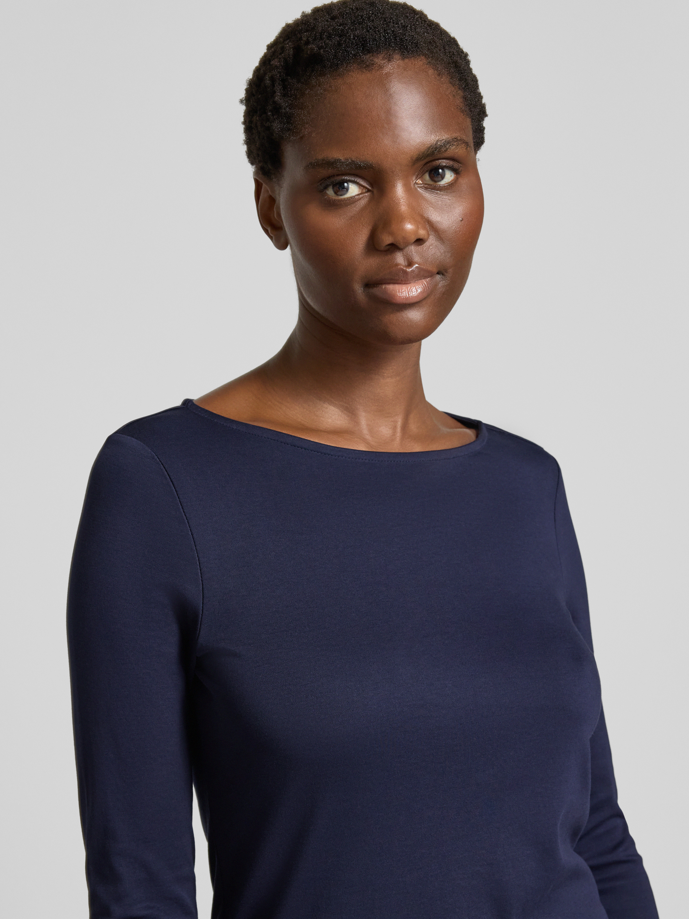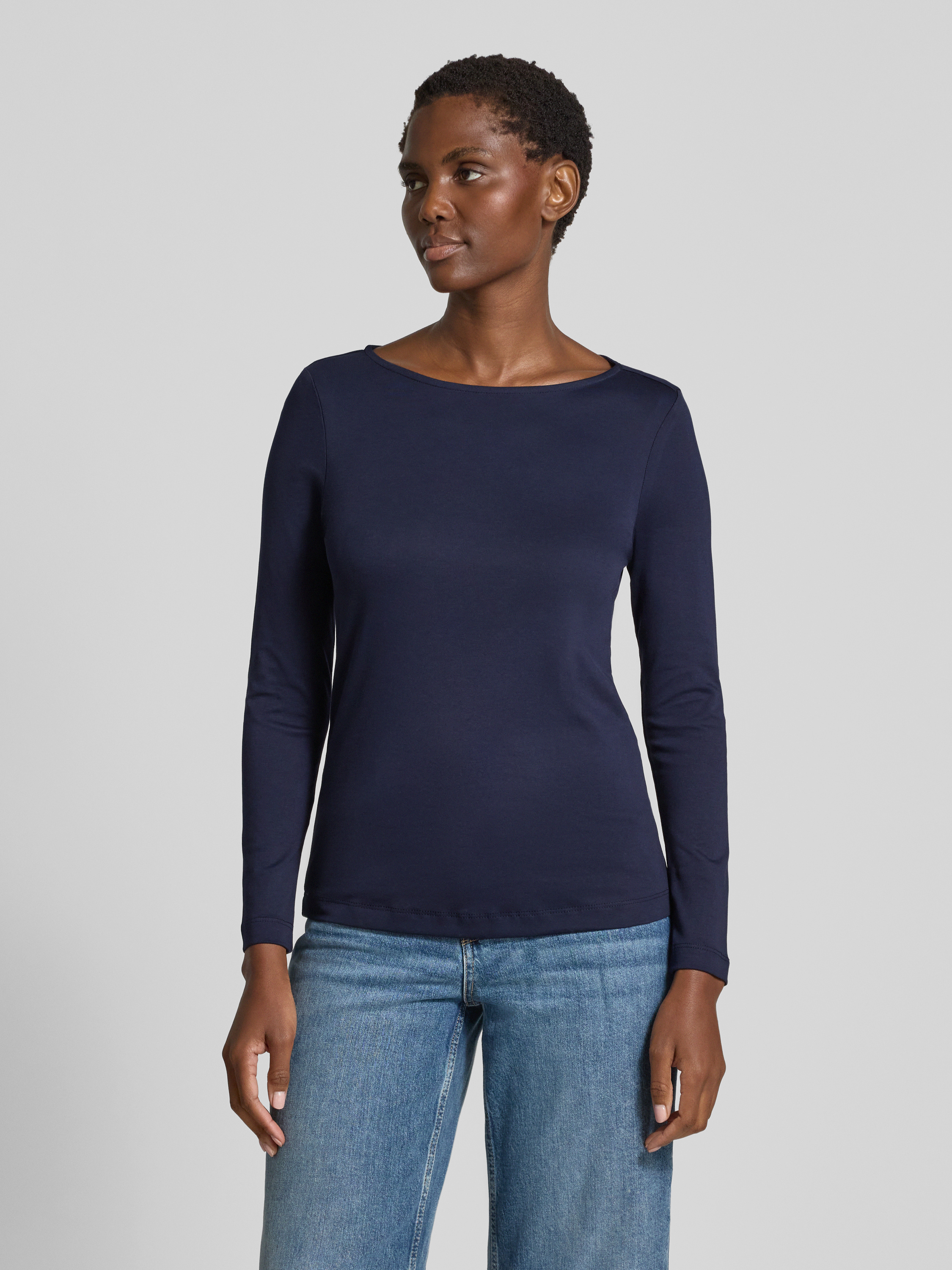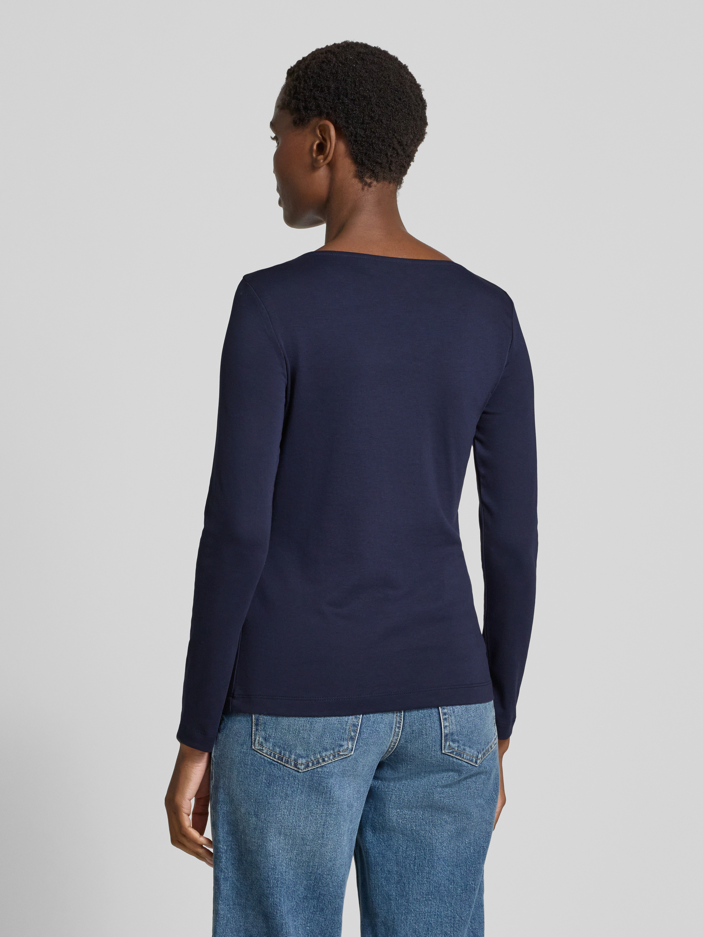 Bluzka z długim rękawem z dekoltem okrągłym - ciemnoniebieski