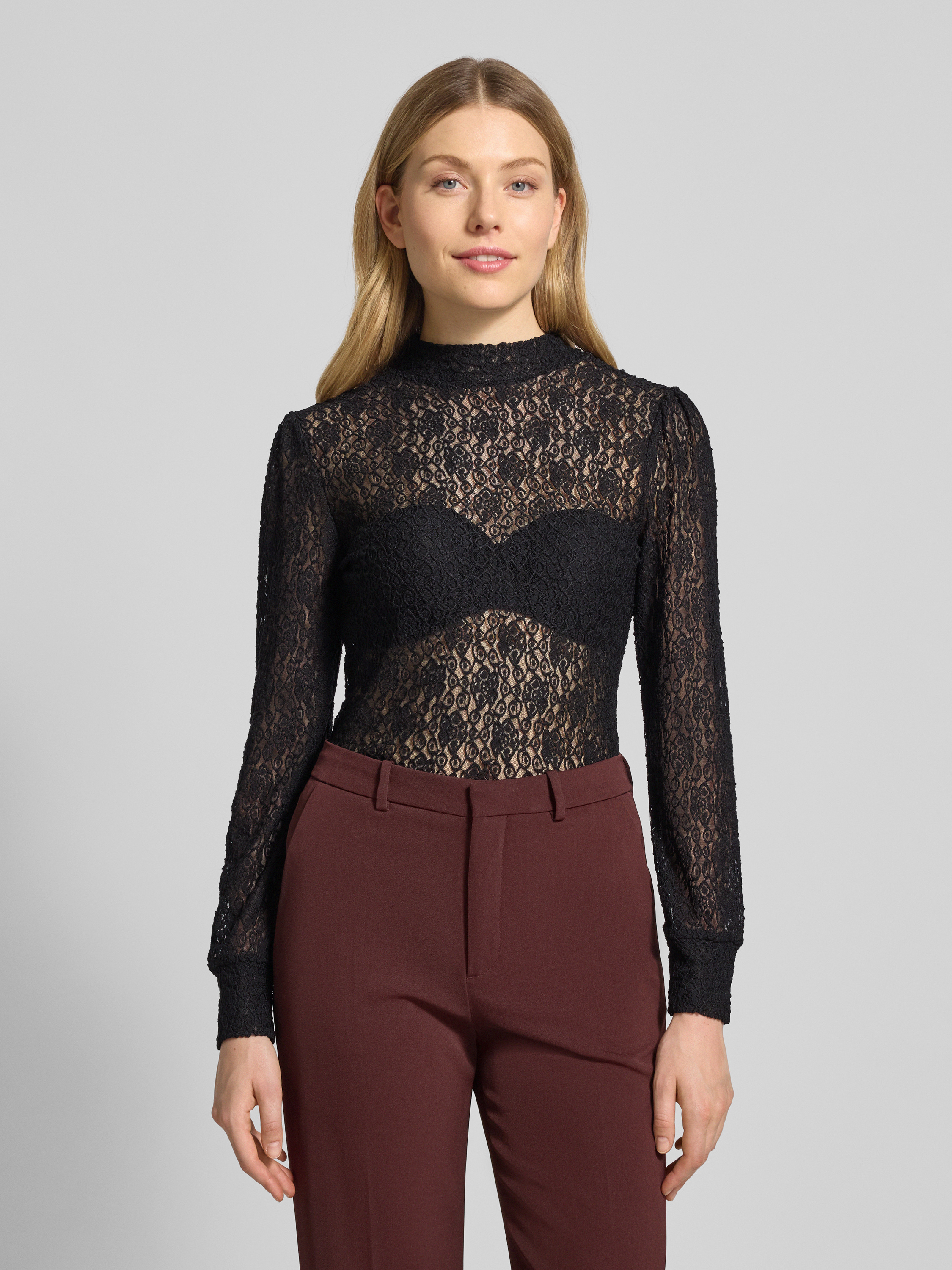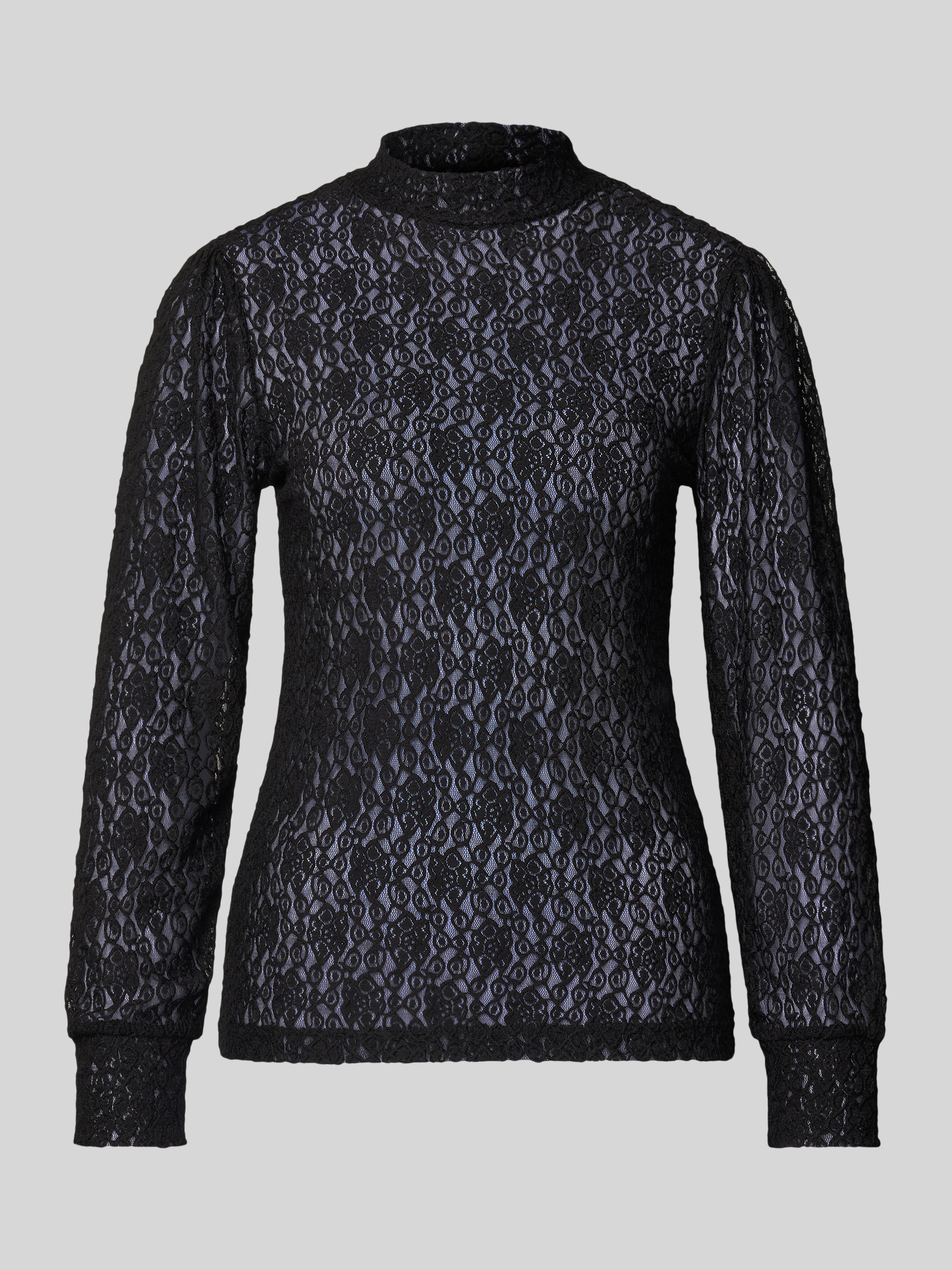 Bluzka z długim rękawem z półprzezroczystego materiału - czarny