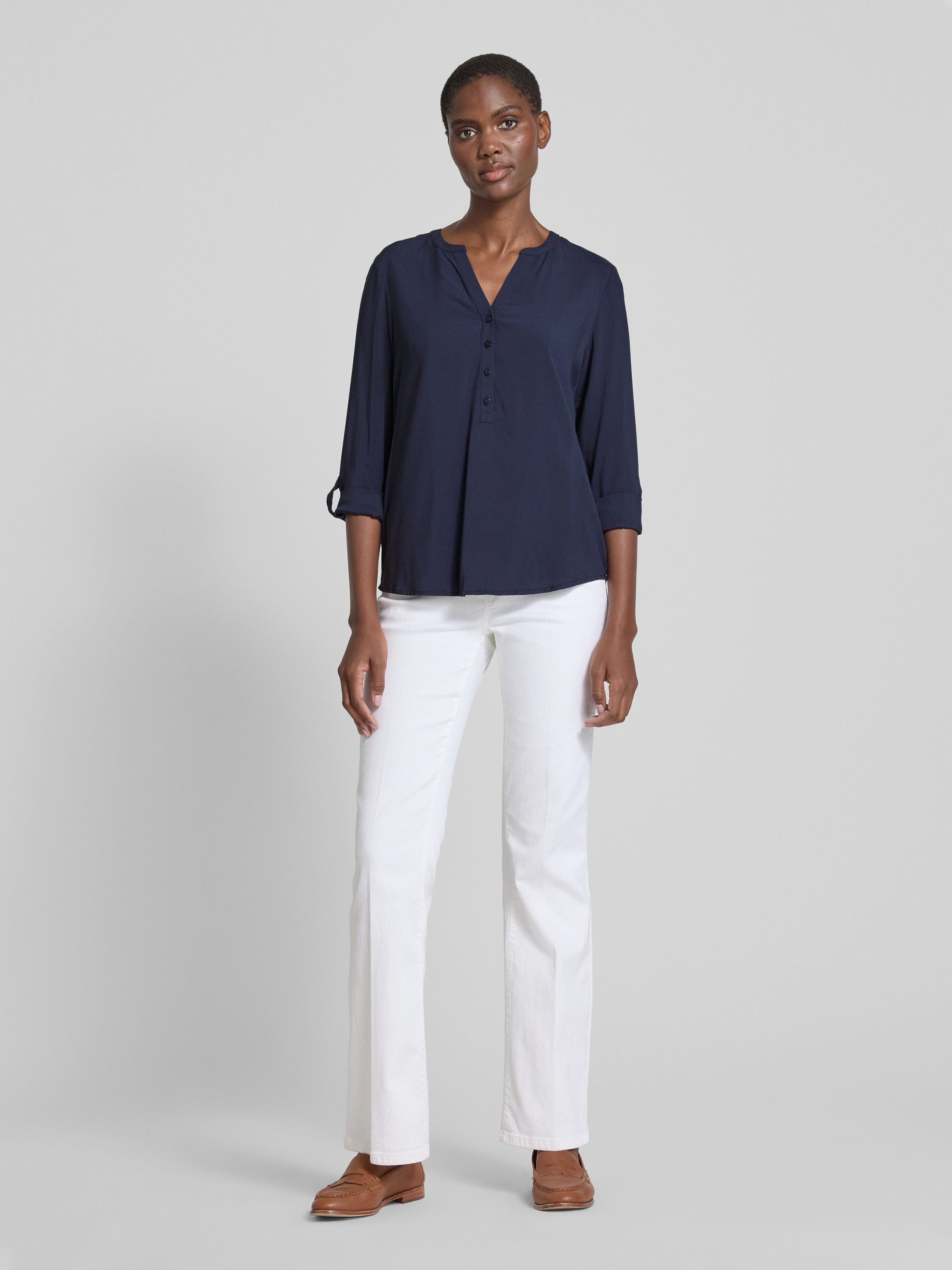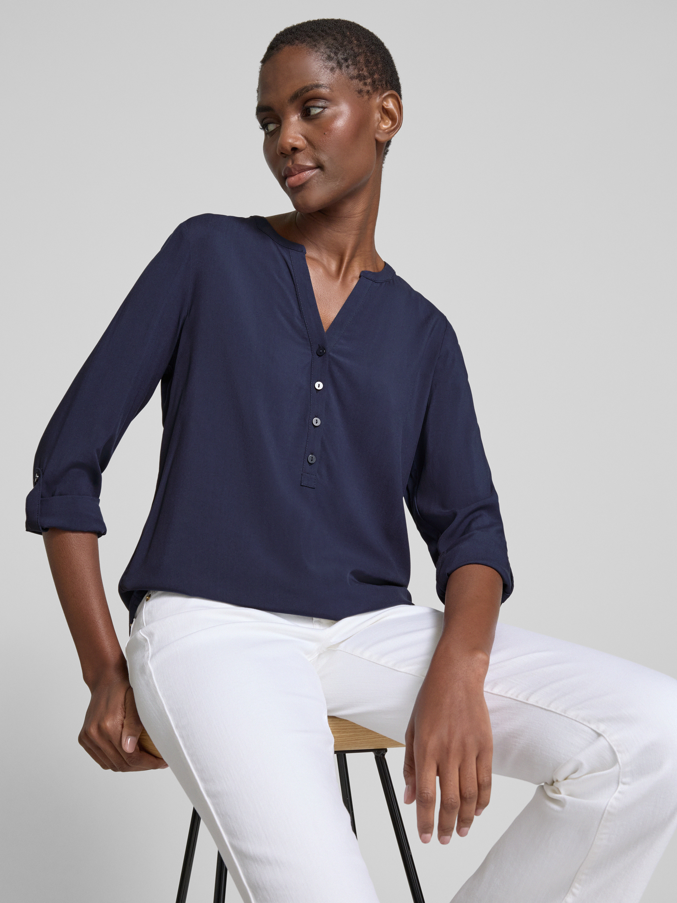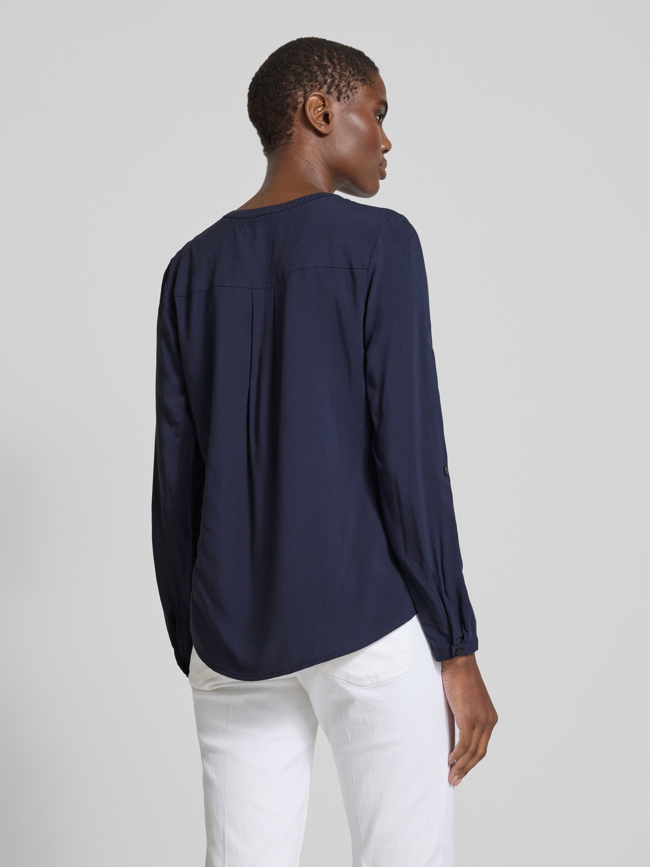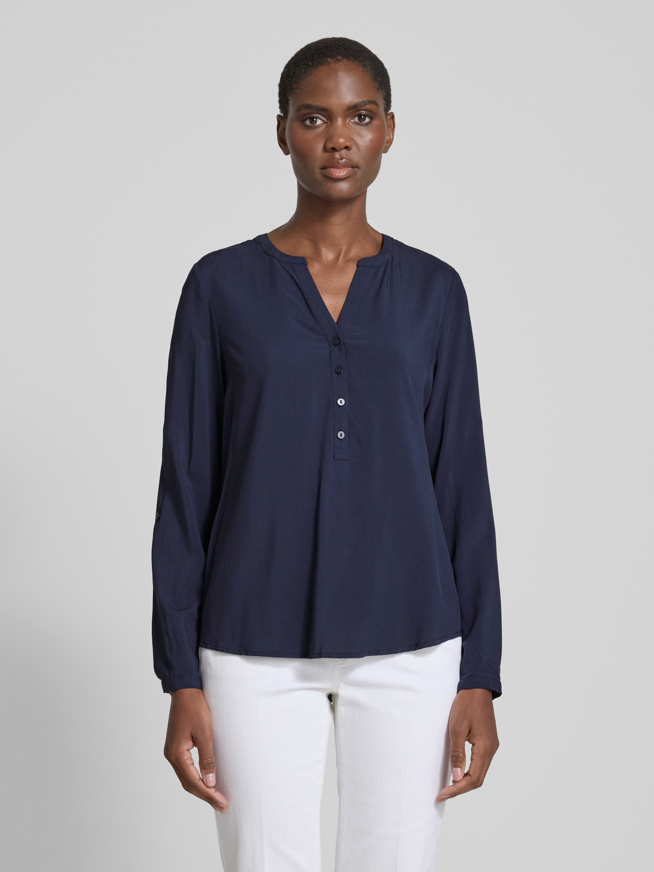 Bluzka z krótką listwą guzikową - ciemnoniebieski