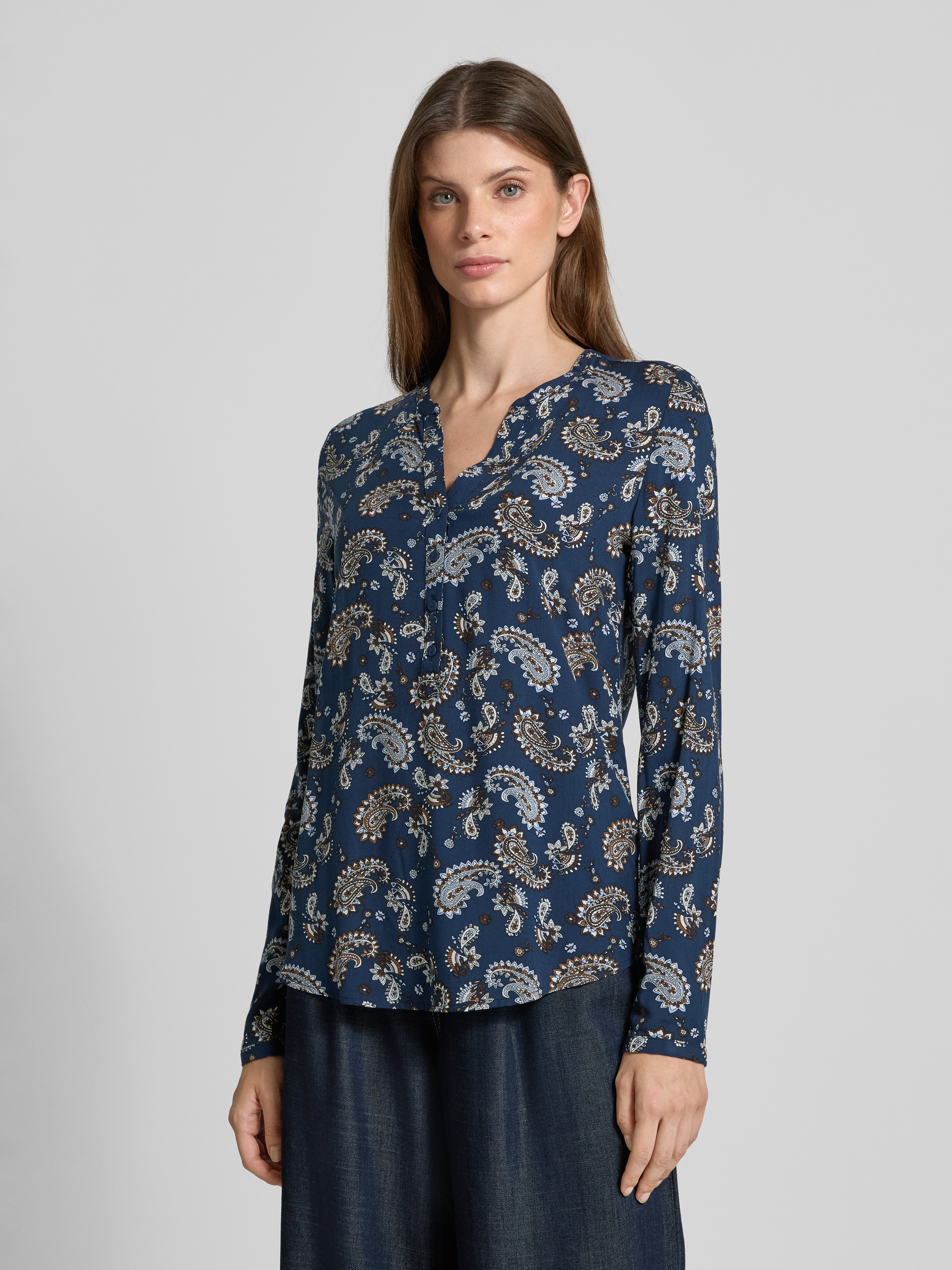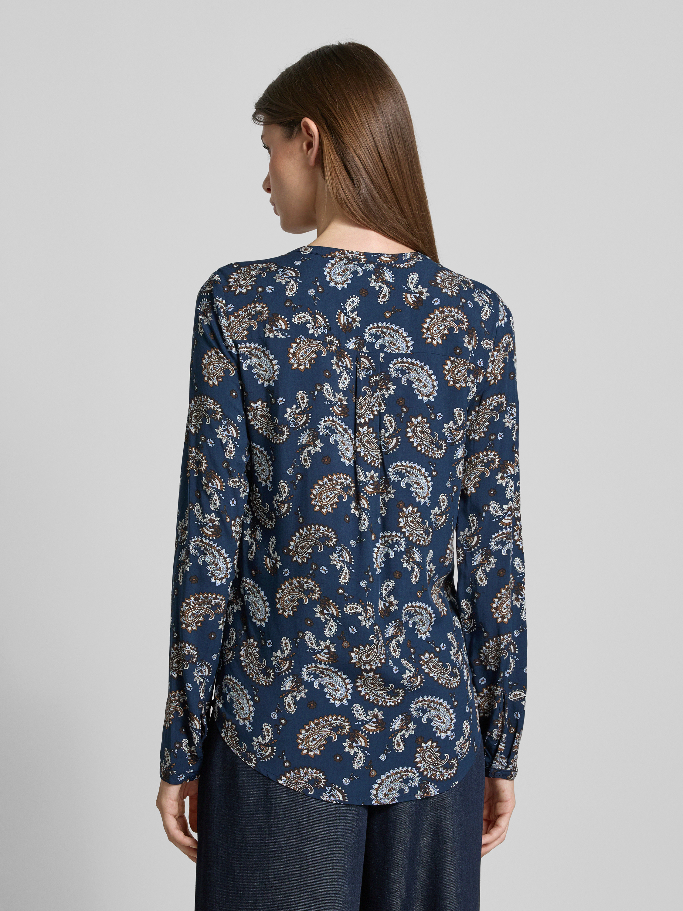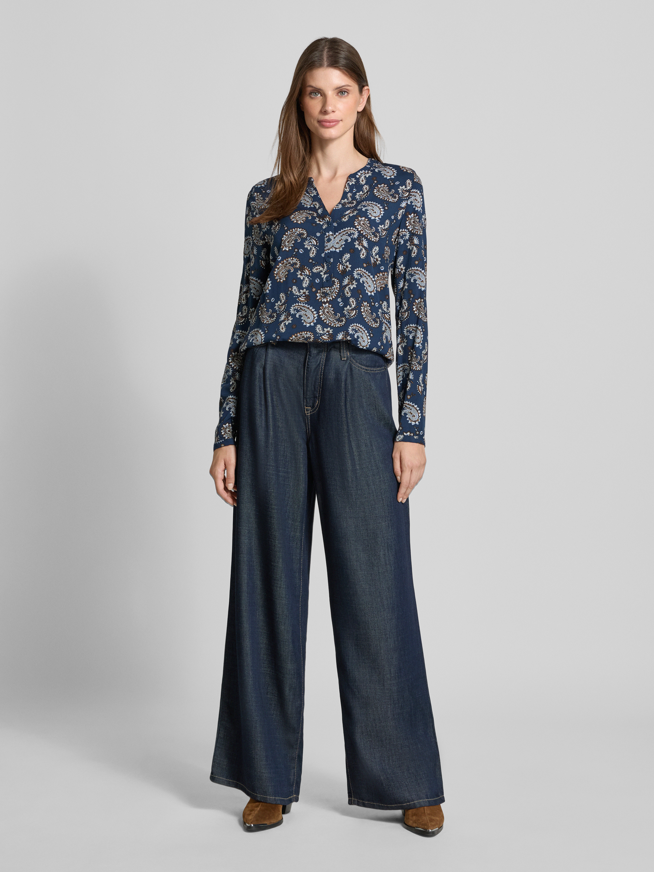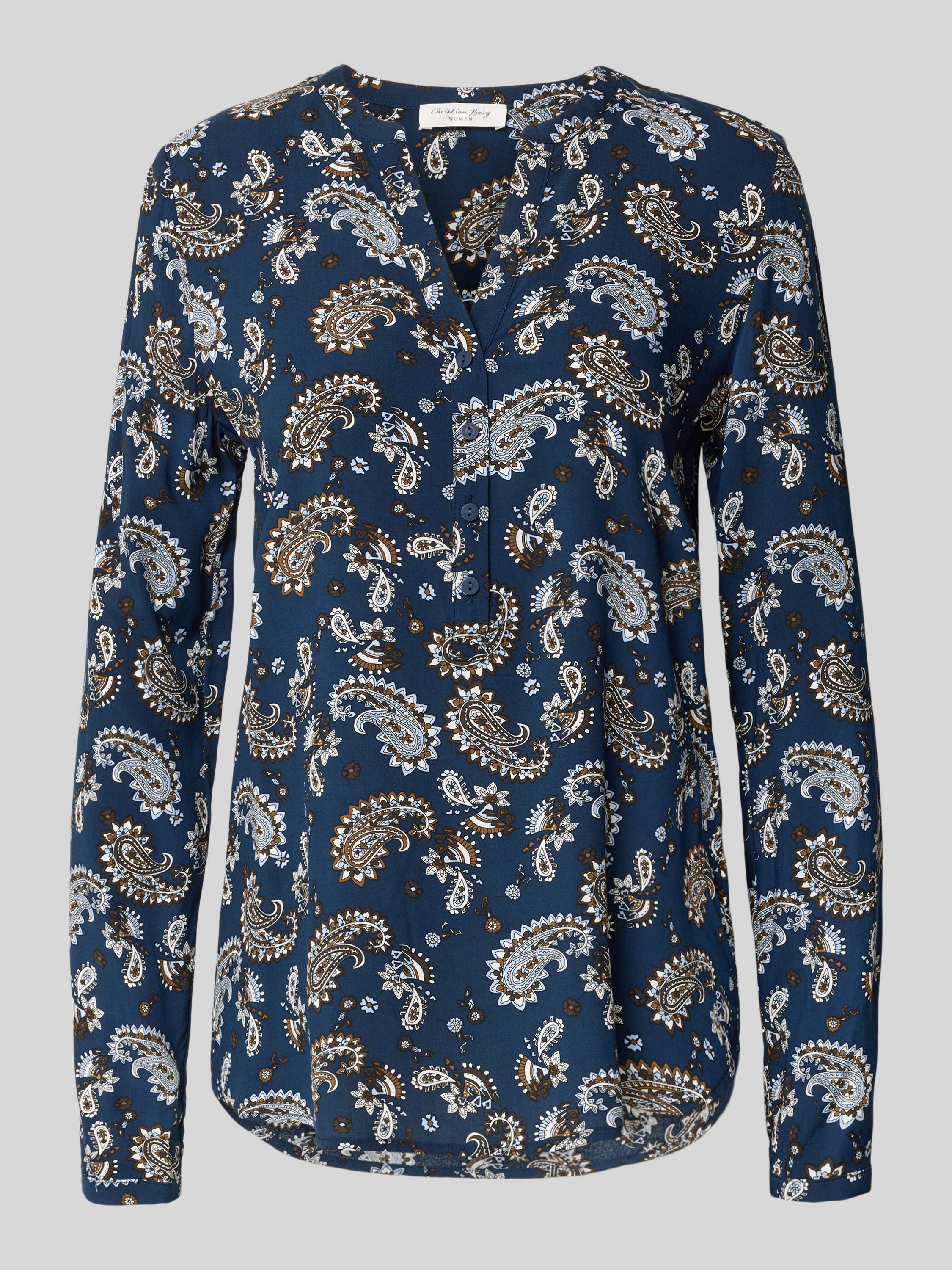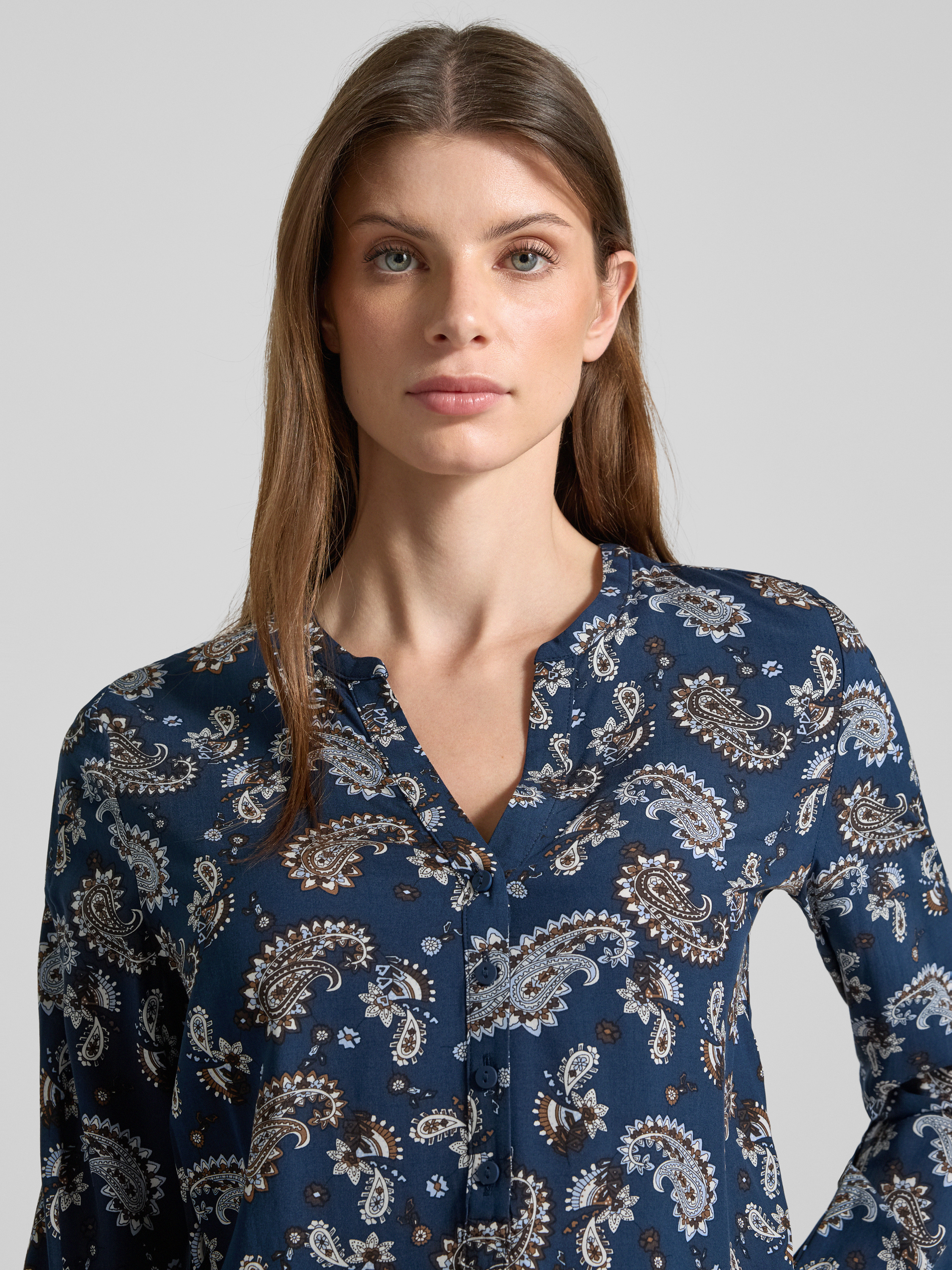 Bluzka z wiskozy z dekoltem w serek - ciemnoniebieski