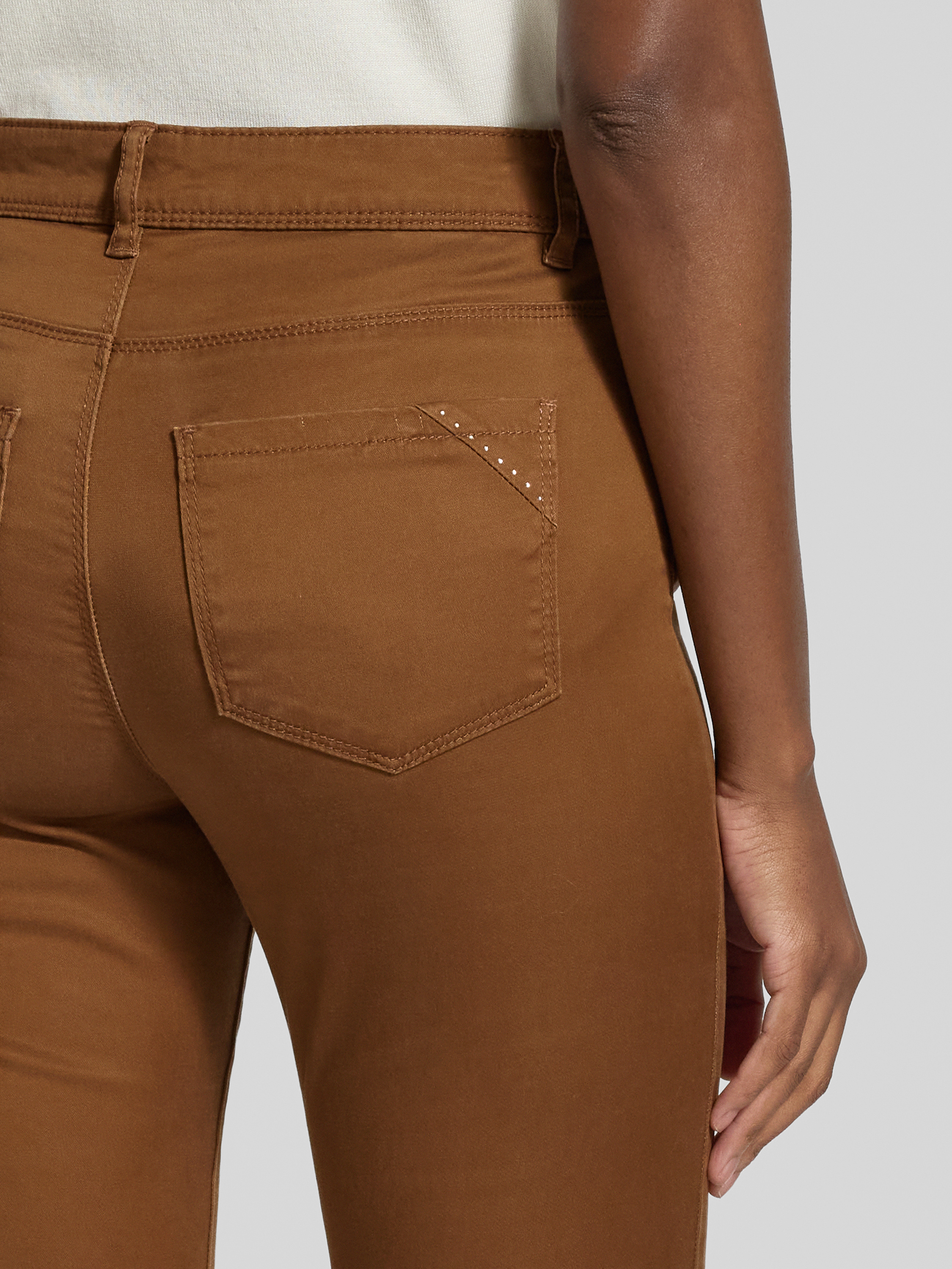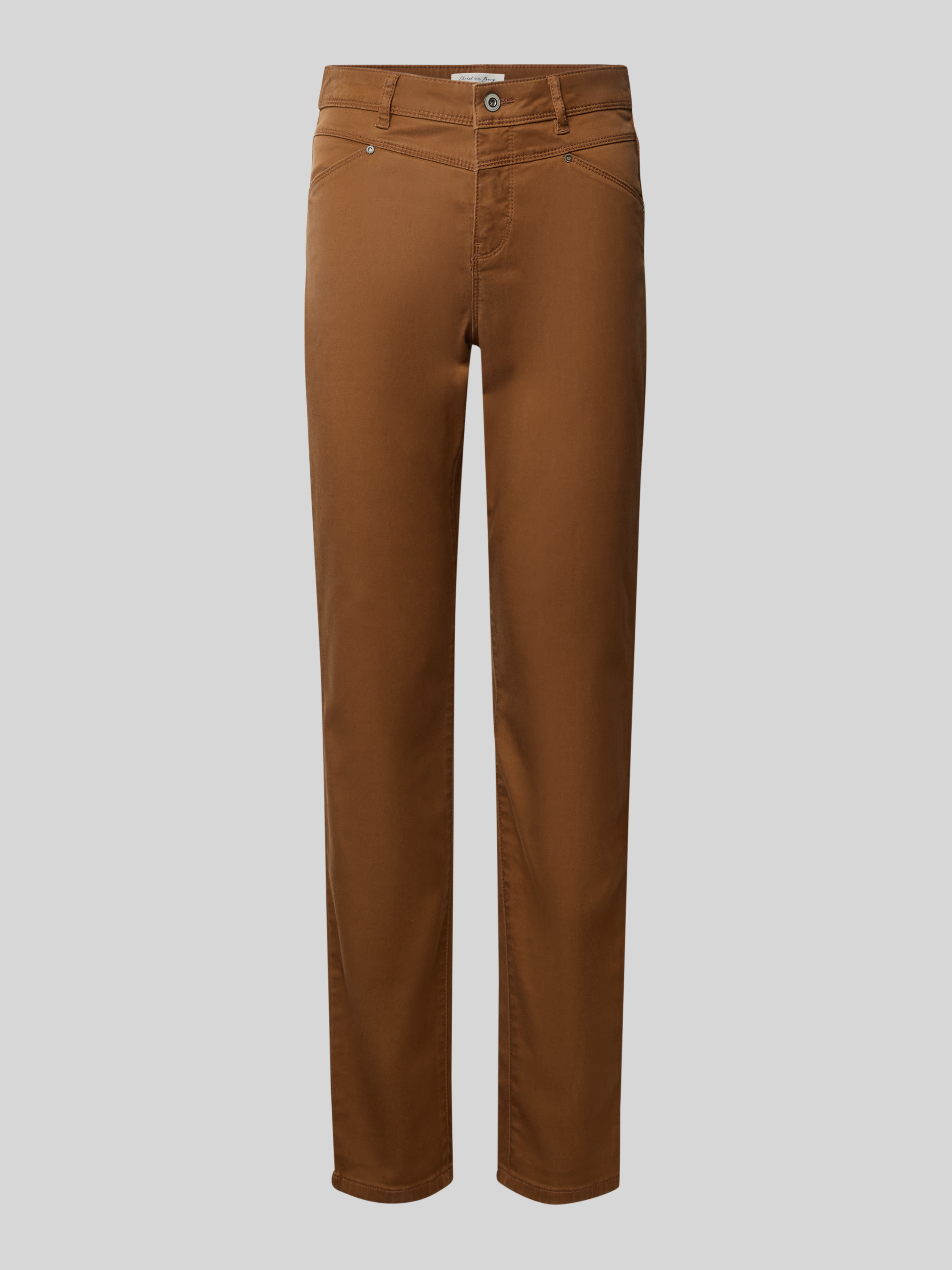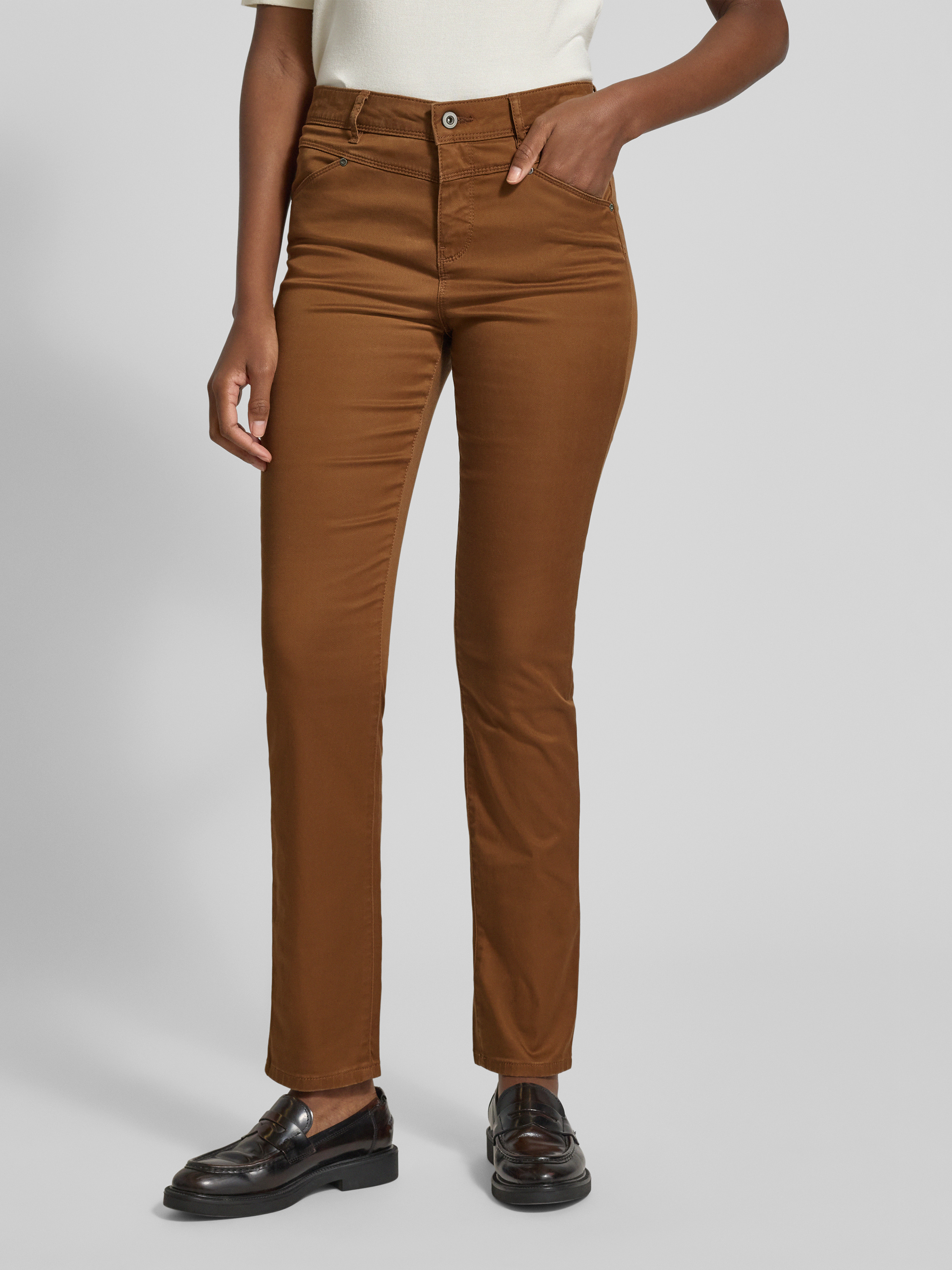 Jeansy o kroju slim fit z wpuszczanymi kieszeniami i kieszeniami z tyłu - koniakowy
