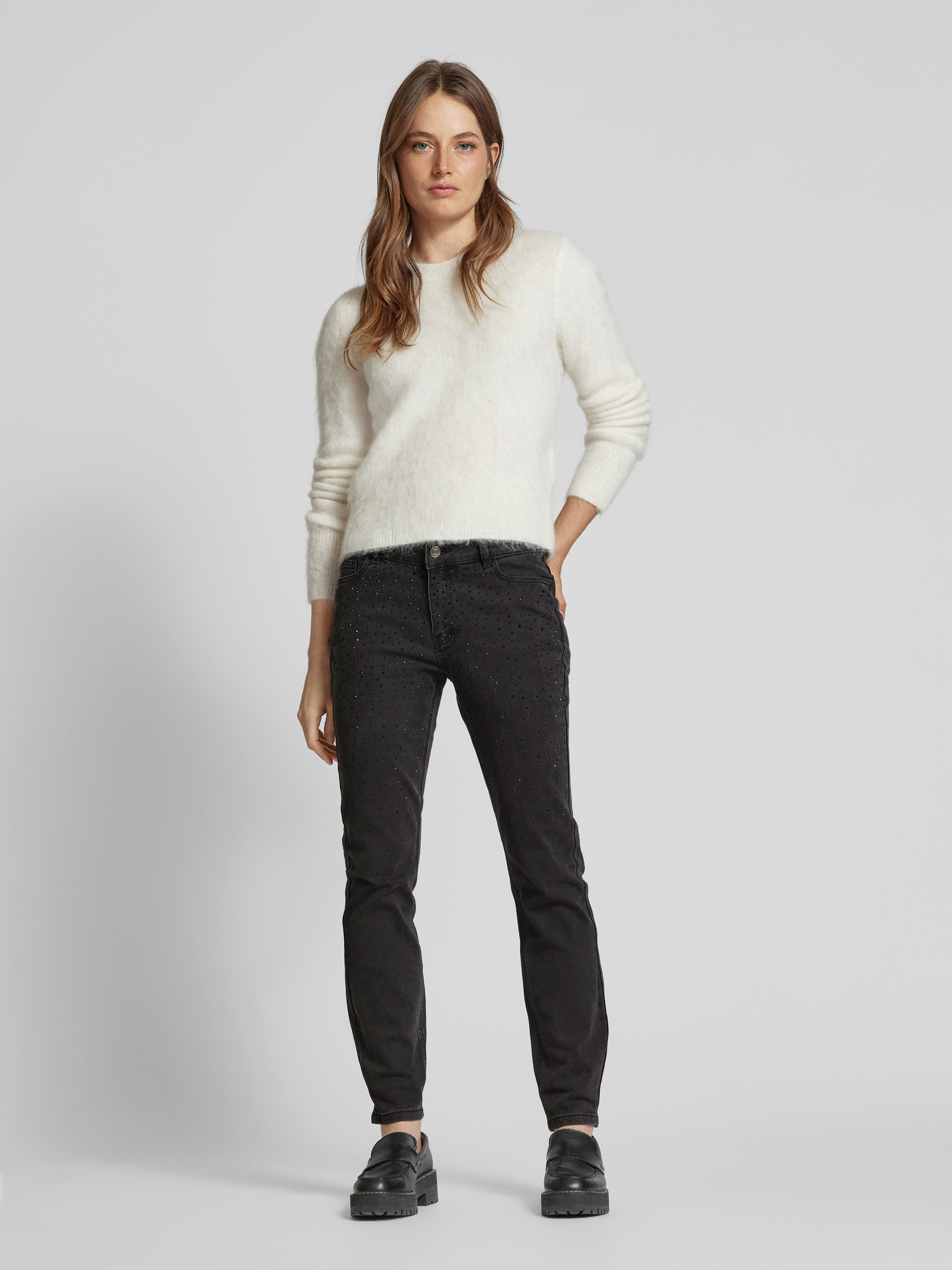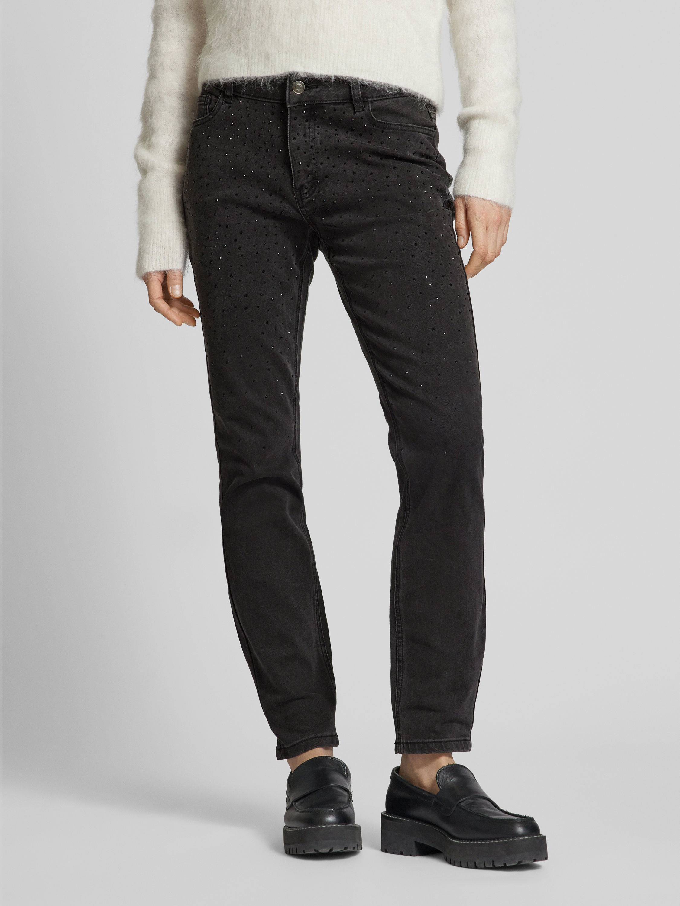 Jeansy o kroju slim fit ze szlufkami na pasek i dodatkiem wiskozy - czarny