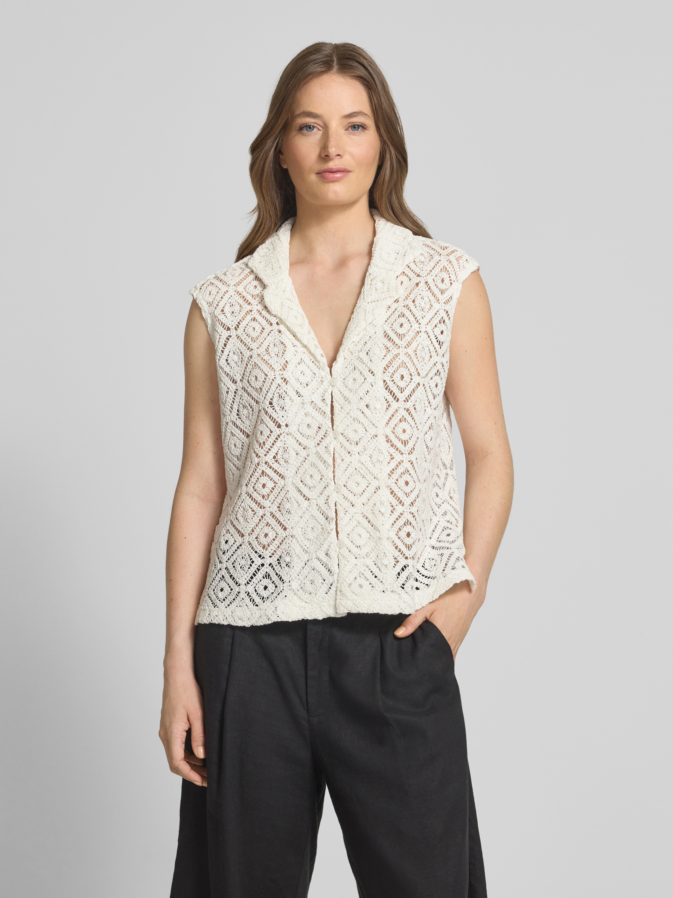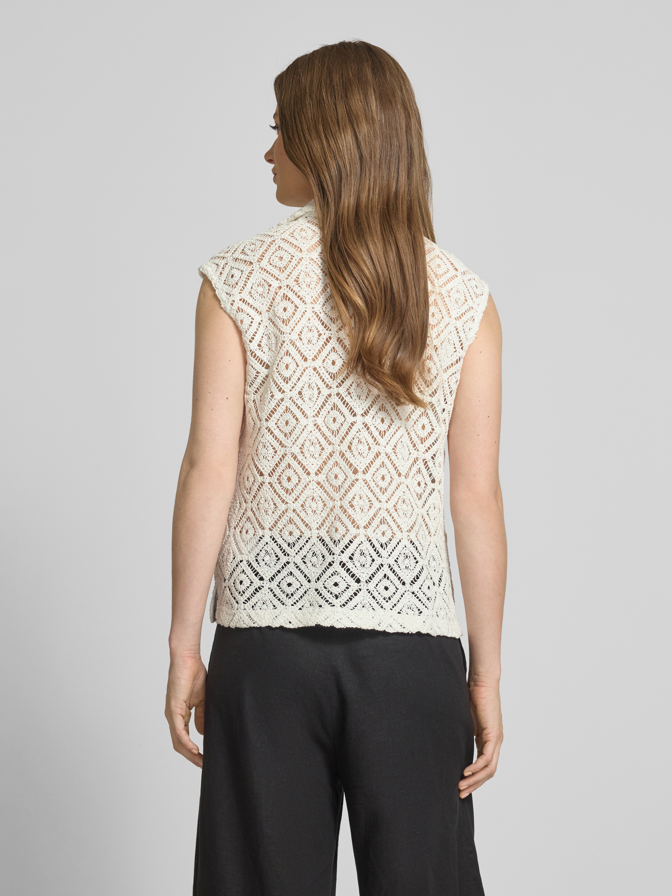 Kamizelka szydełkowa o kroju relaxed fit z ażurowym wzorem - złamany biały