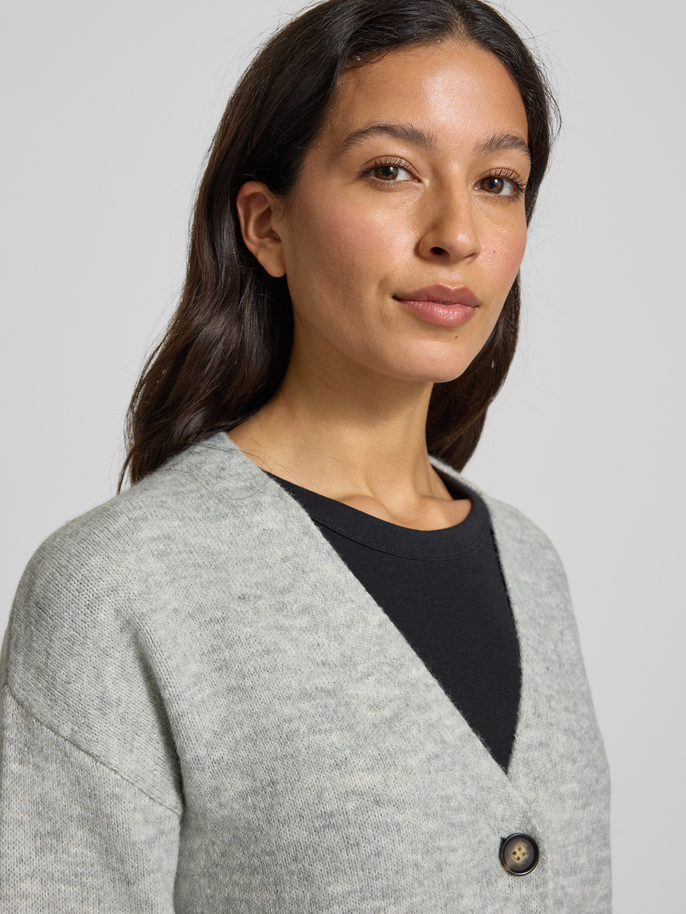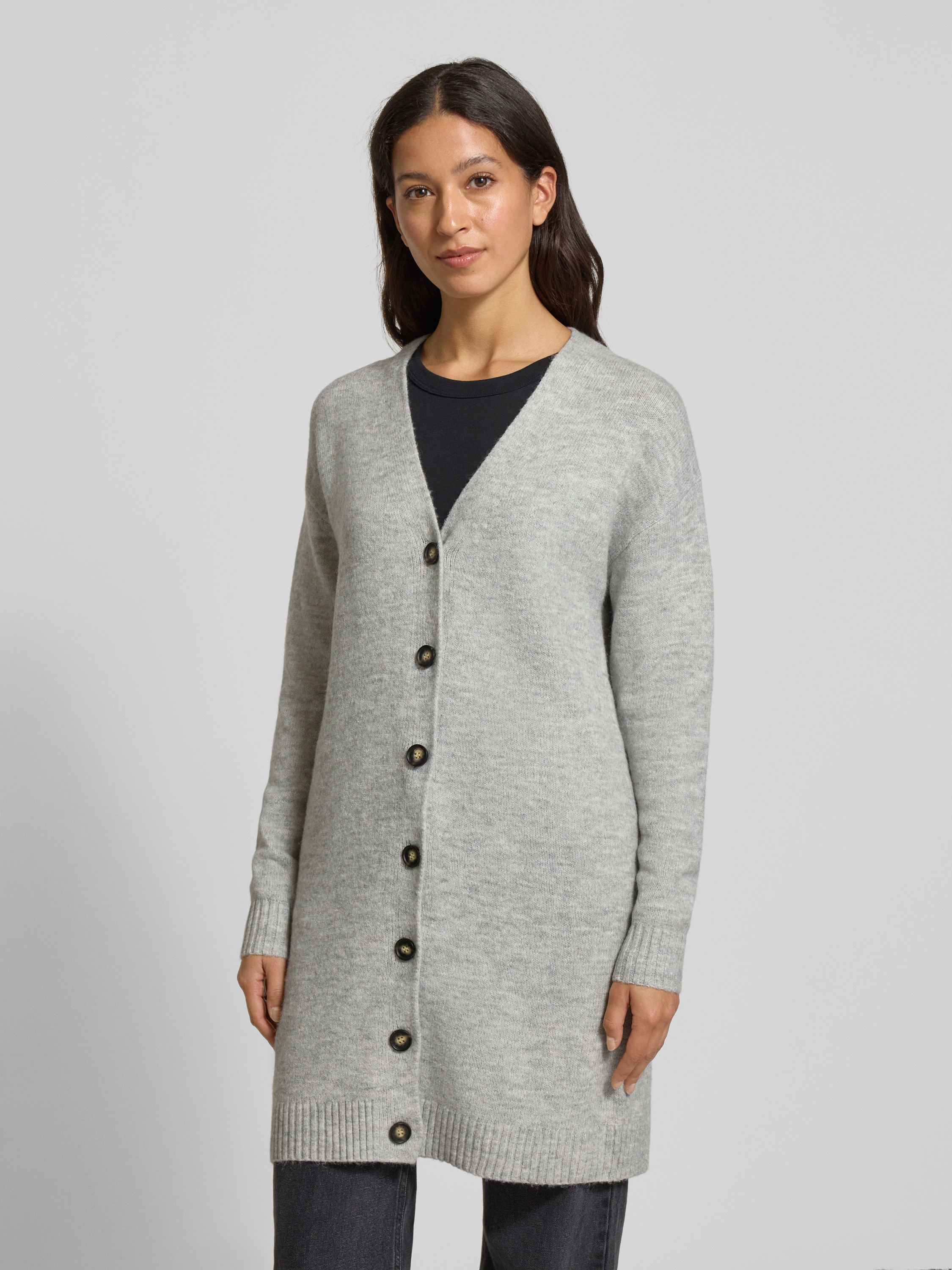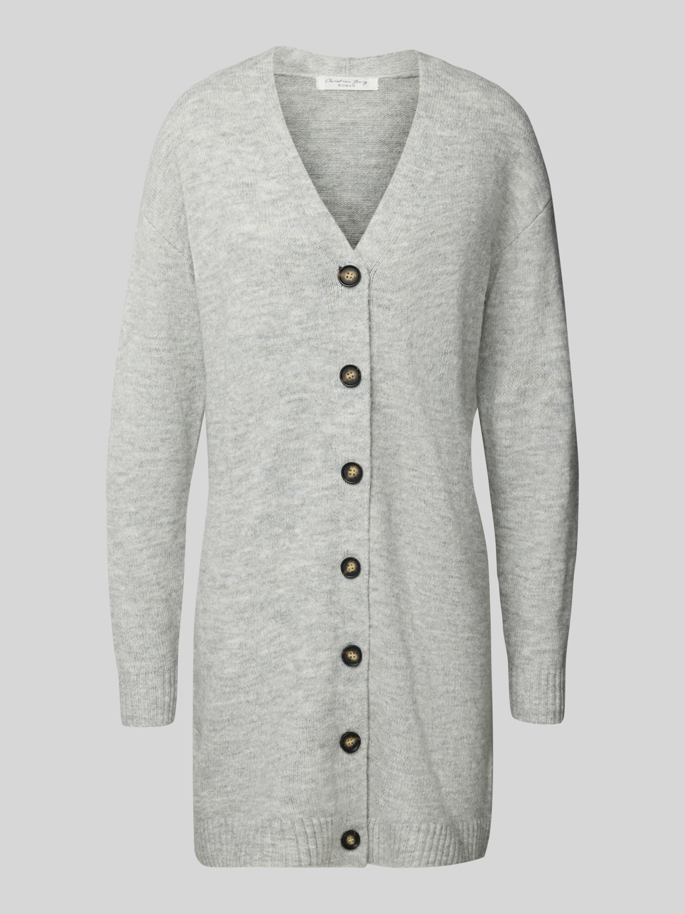 Christian Berg WomanKardigan z dekoltem w serek i listwą guzikową - średnioszary melanż