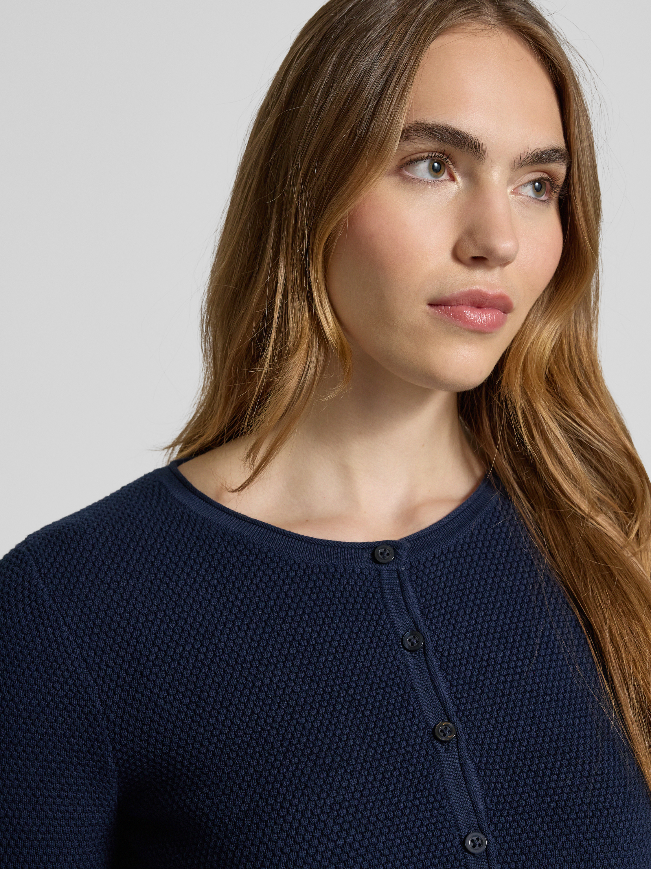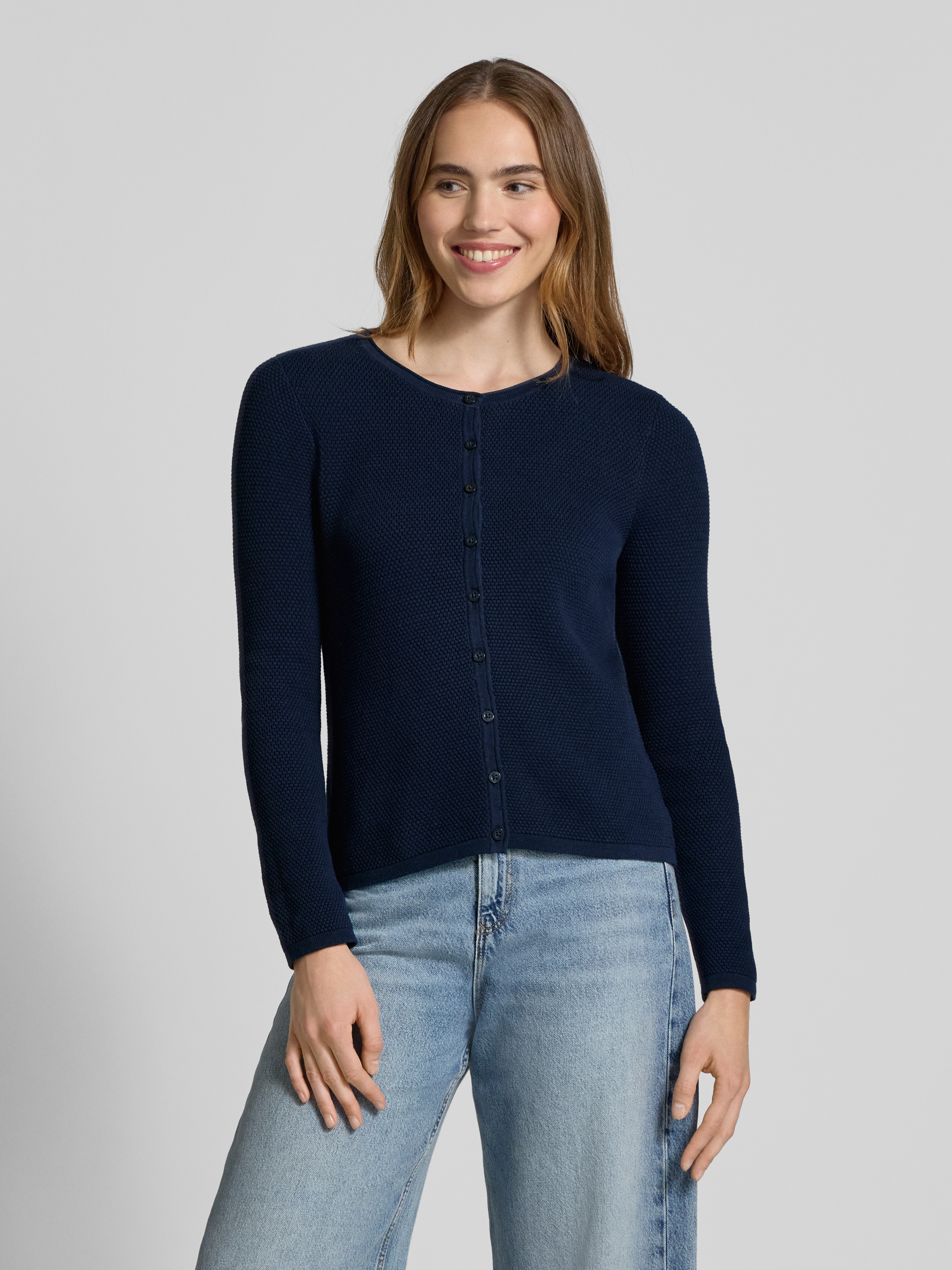 Kardigan z dzianiny z fakturowanym wzorem - ciemnoniebieski