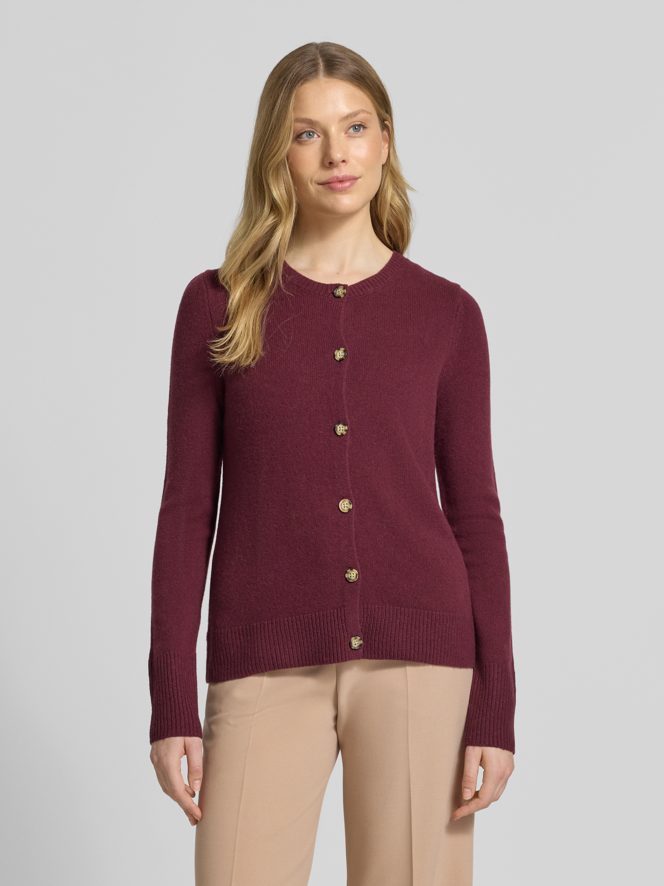 Christian Berg WomanKardigan z okrągłym dekoltem i zapięciem na guziki - bordowy