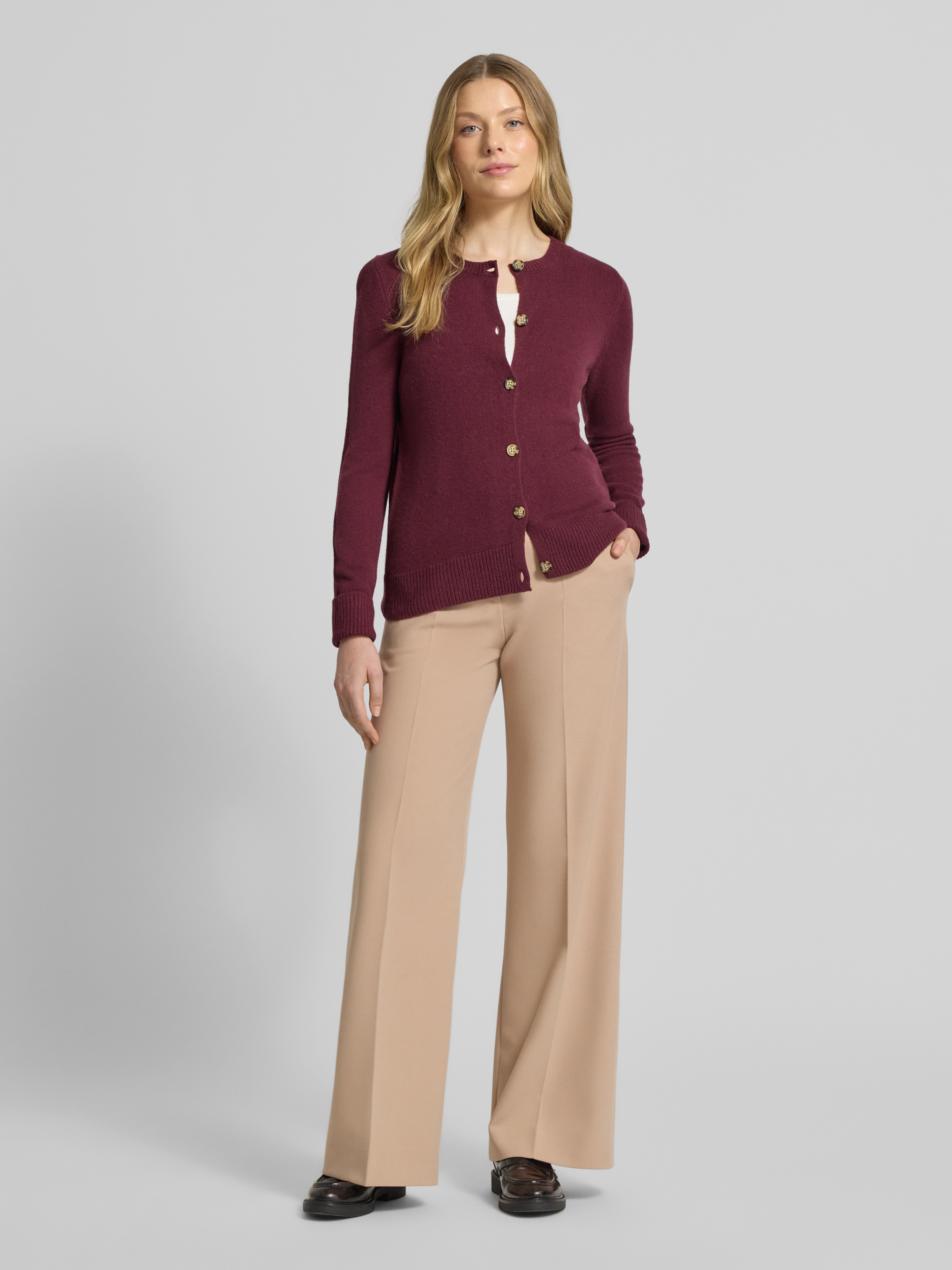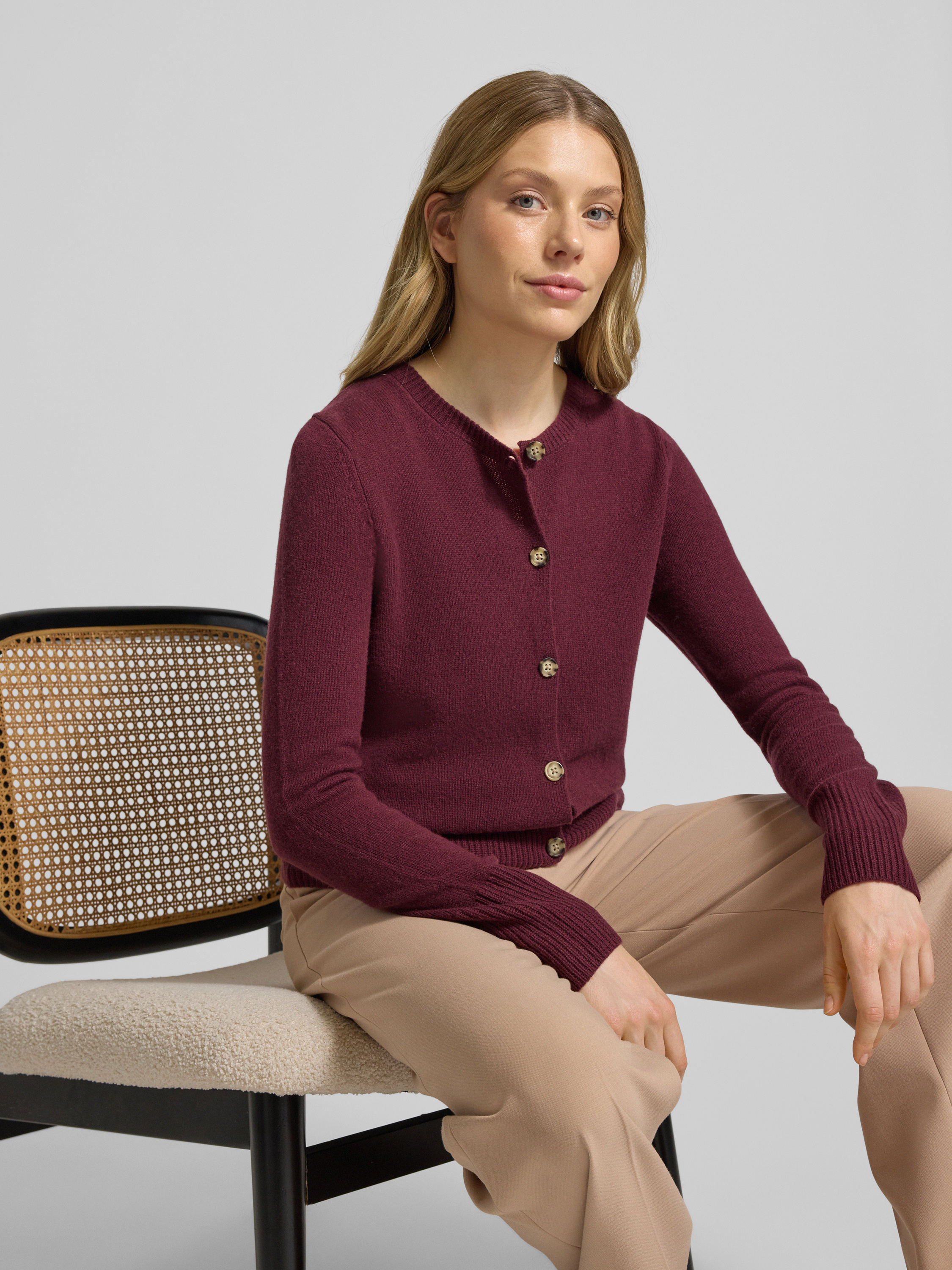 • Christian Berg Woman Kardigan z okrągłym dekoltem i zapięciem na guziki Bordowy