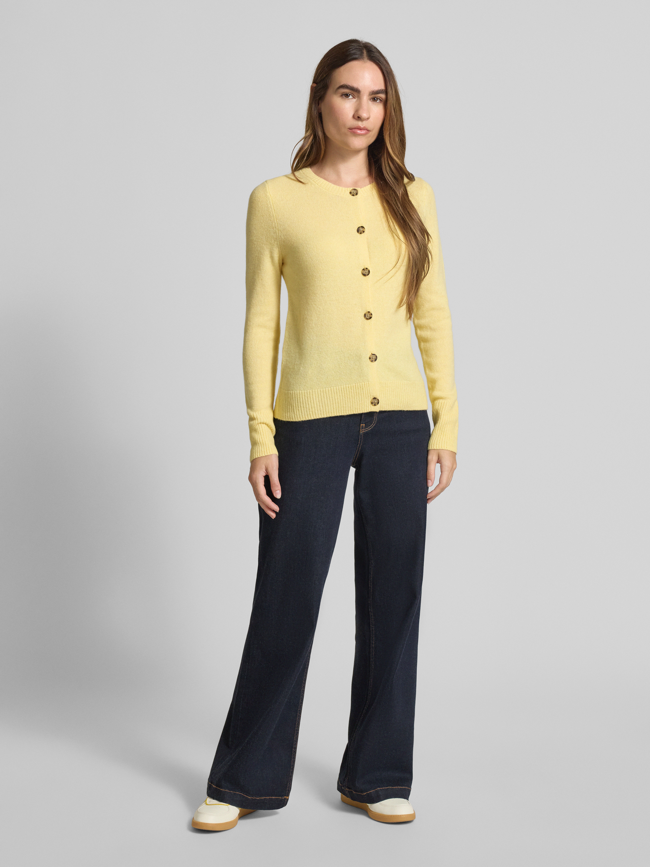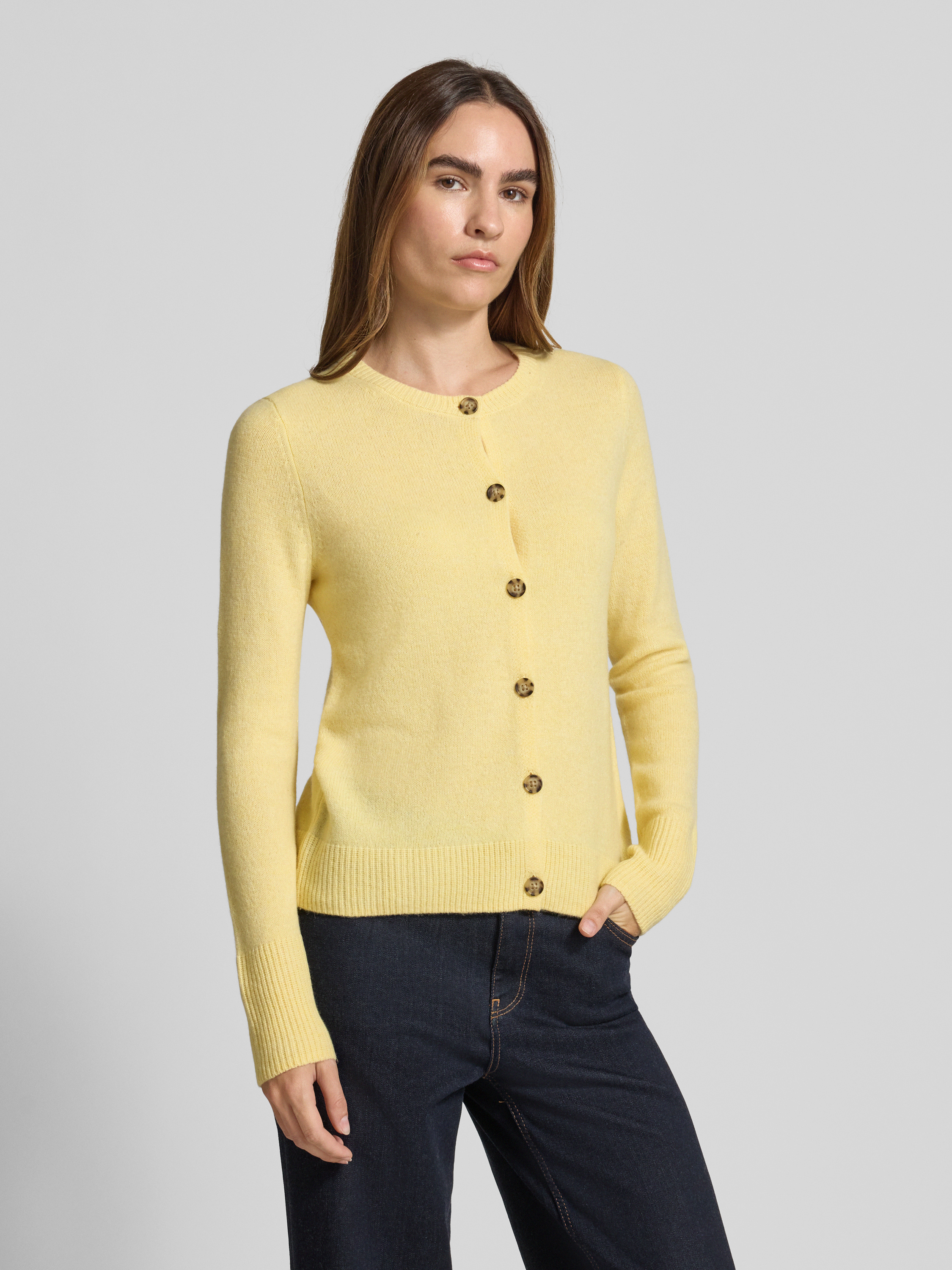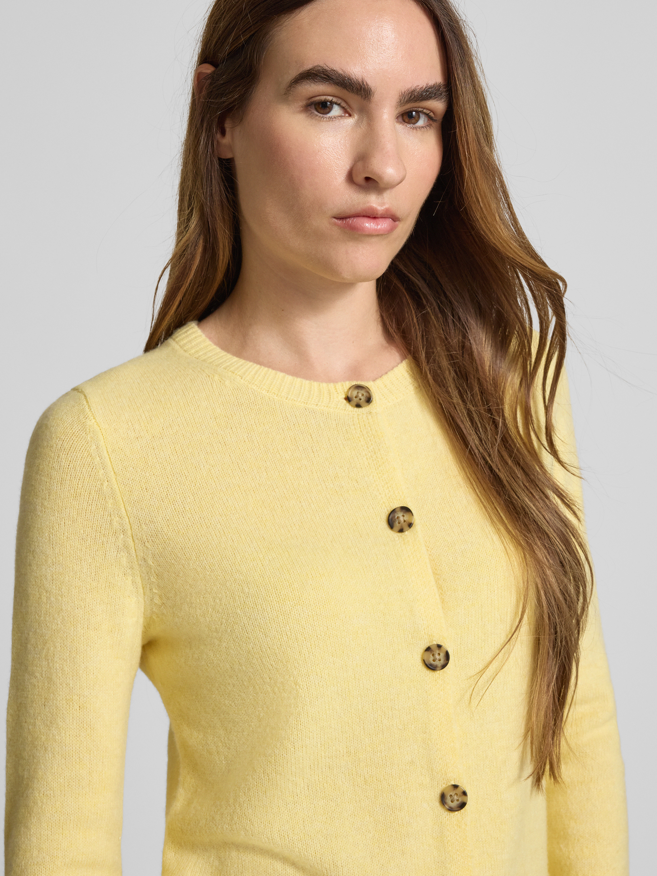 • Christian Berg Woman Kardigan z okrągłym dekoltem i zapięciem na guziki Jasnożółty