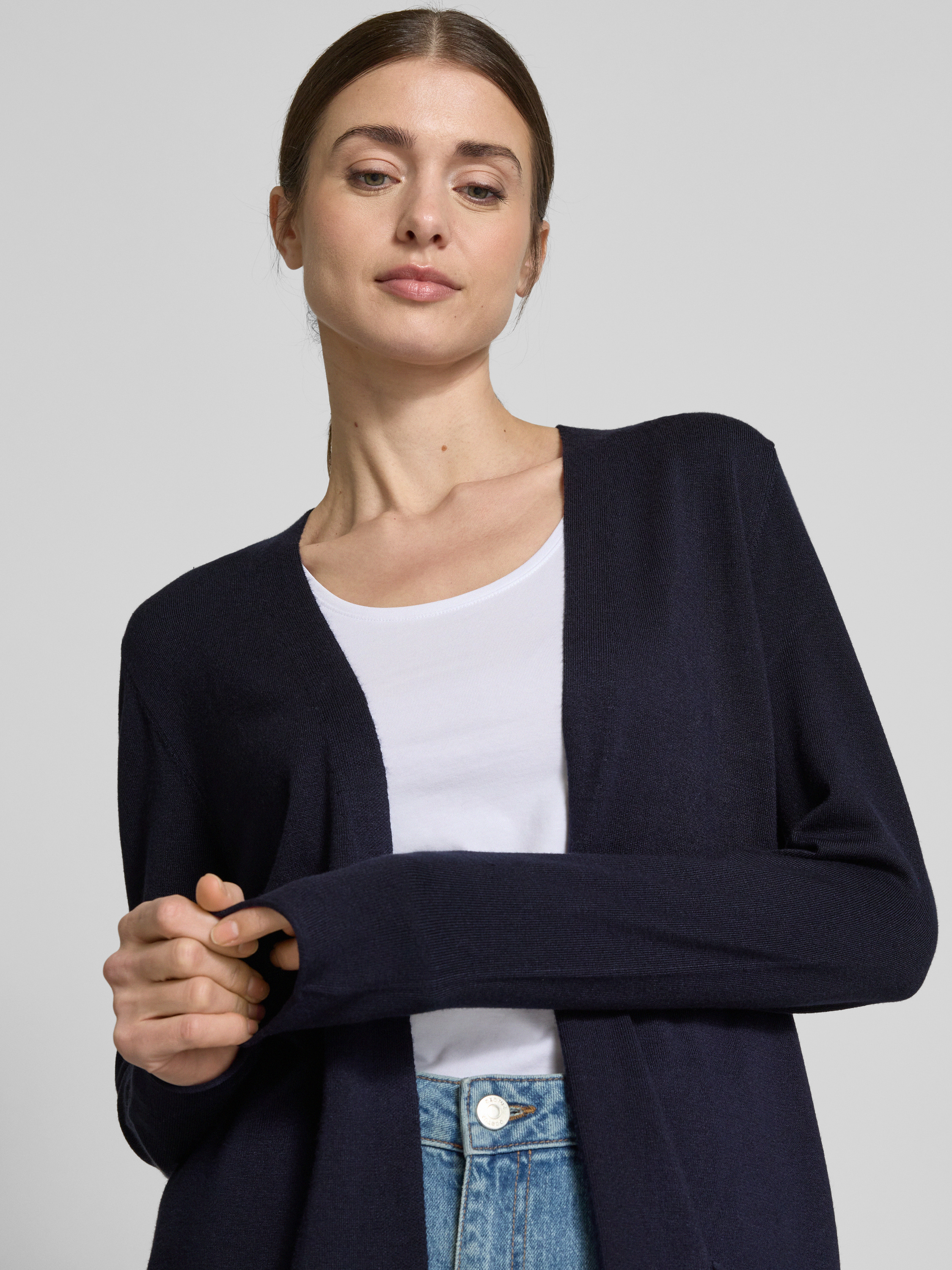 Kurtka z dzianiny bez zapięcia - ciemnoniebieski
