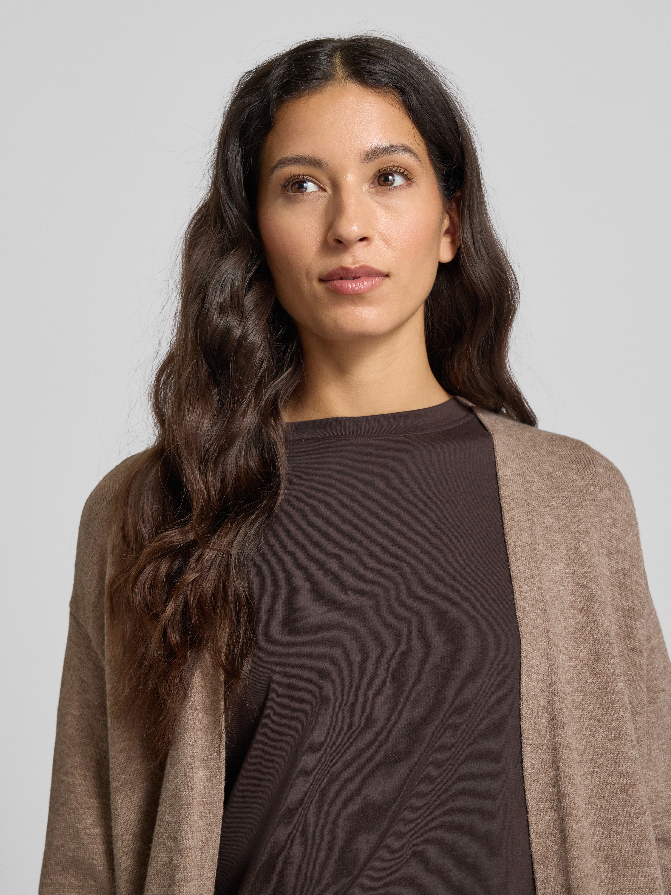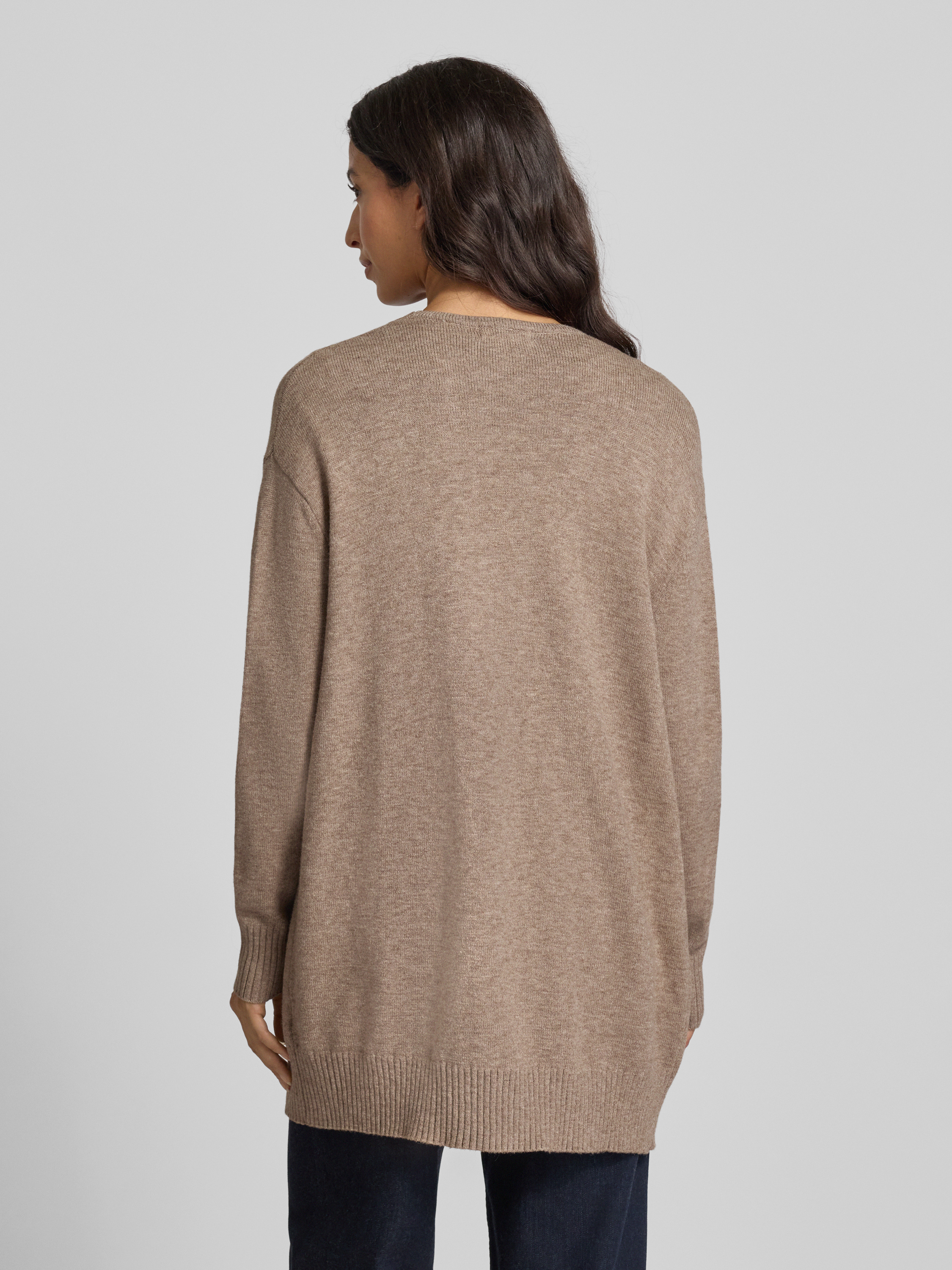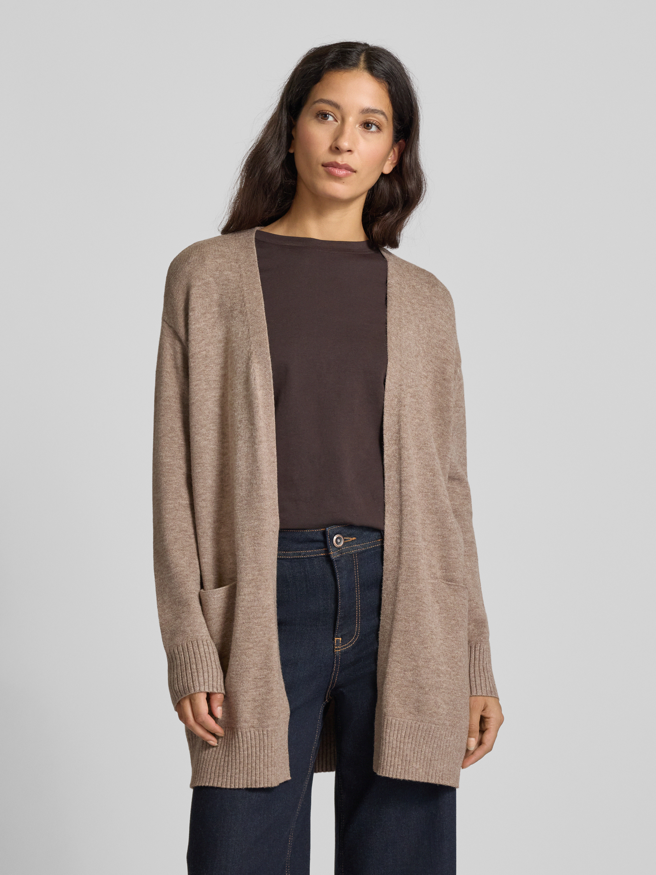 Kurtka z dzianiny bez zapięcia - średniobrązowy melanż