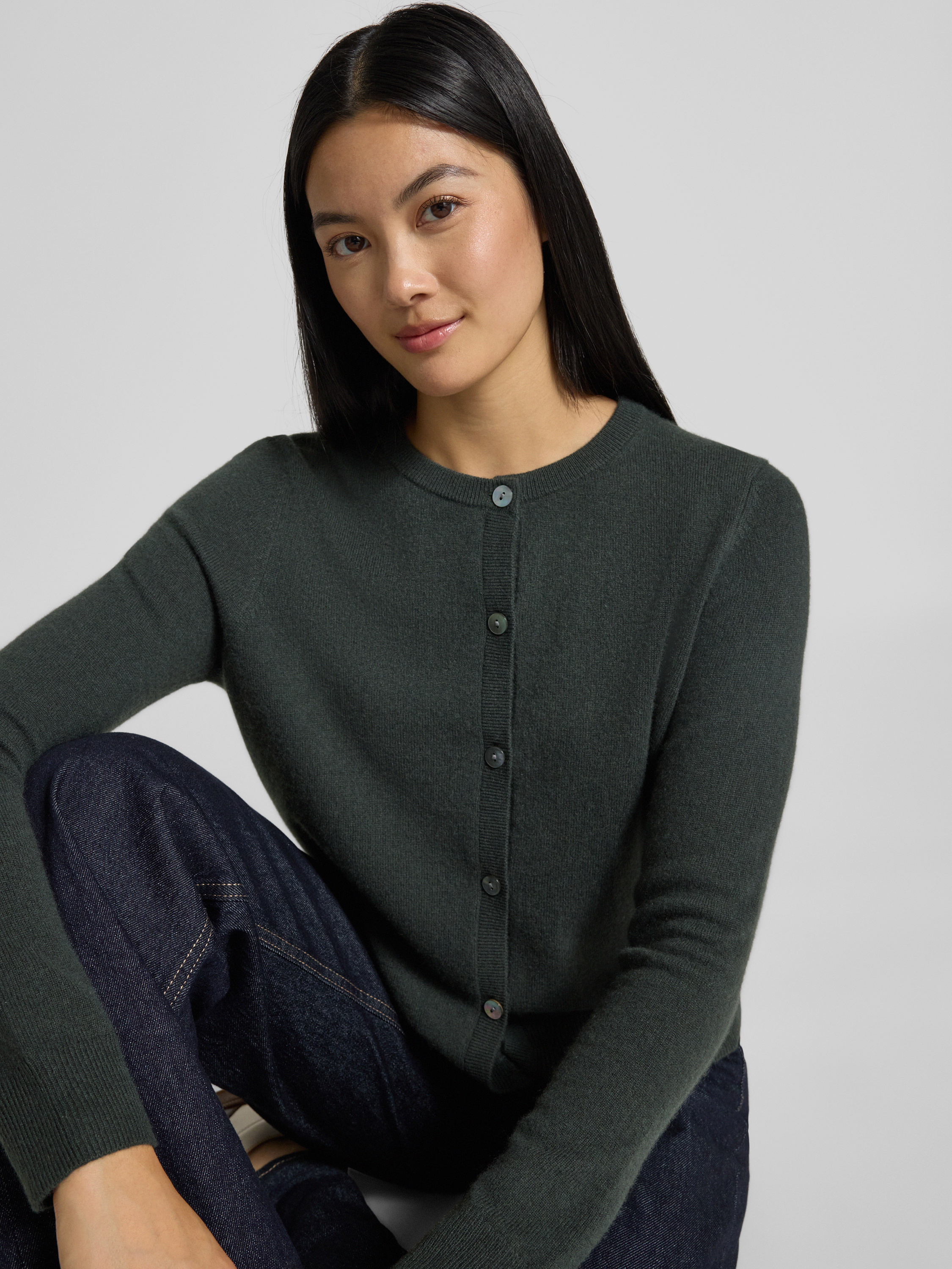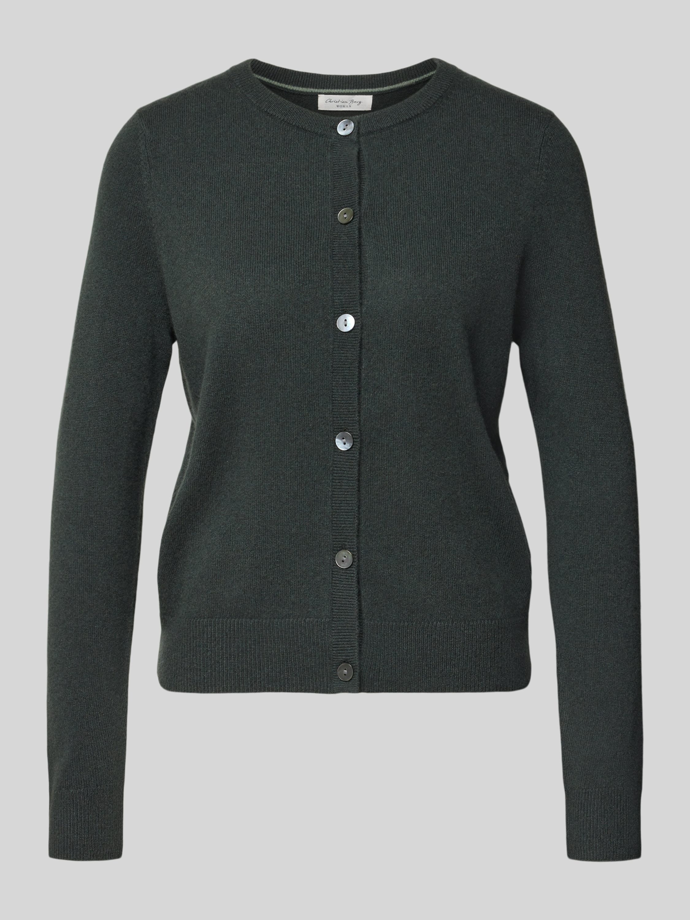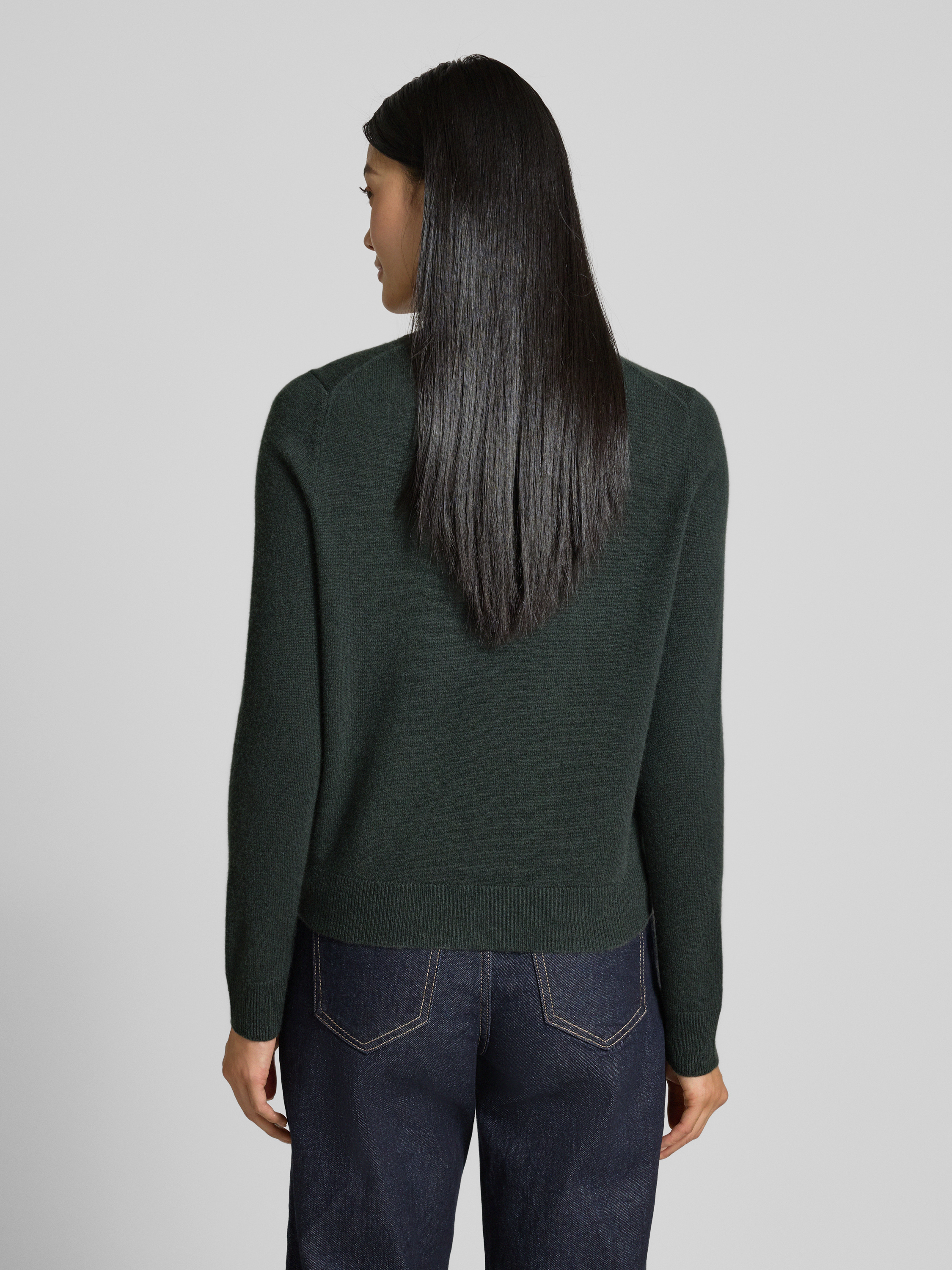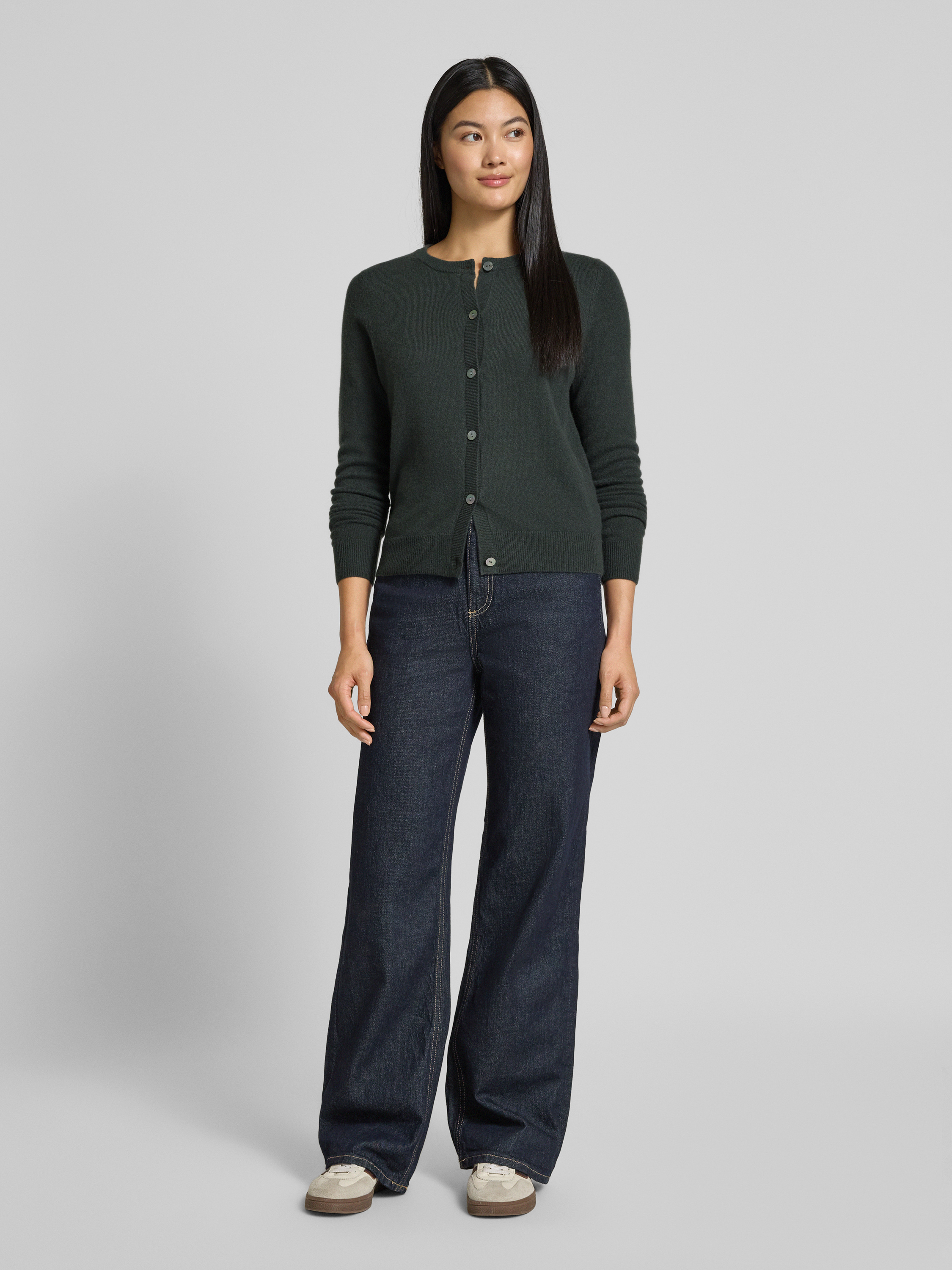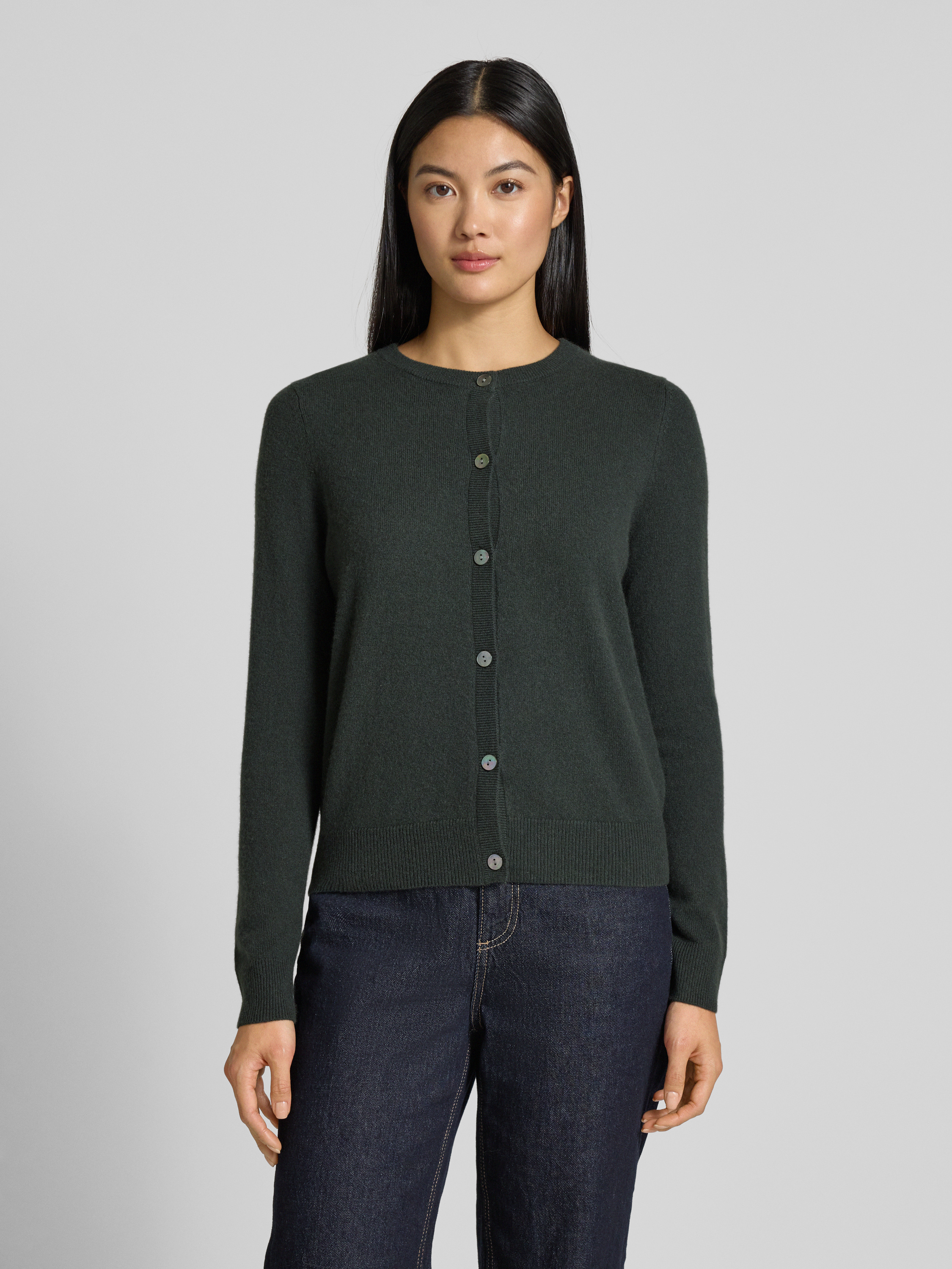 Kurtka z dzianiny z kaszmiru z okrągłym dekoltem - ciemnozielony