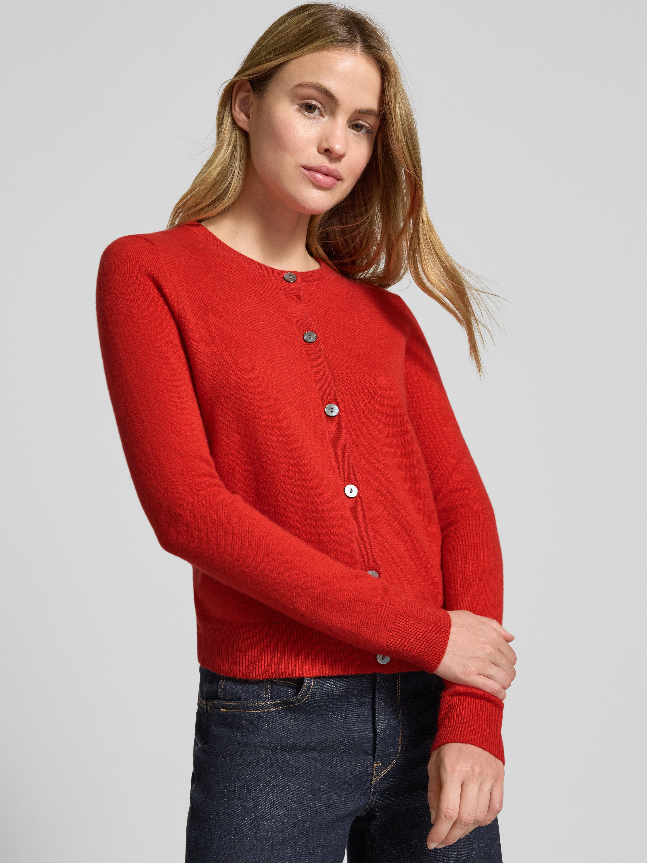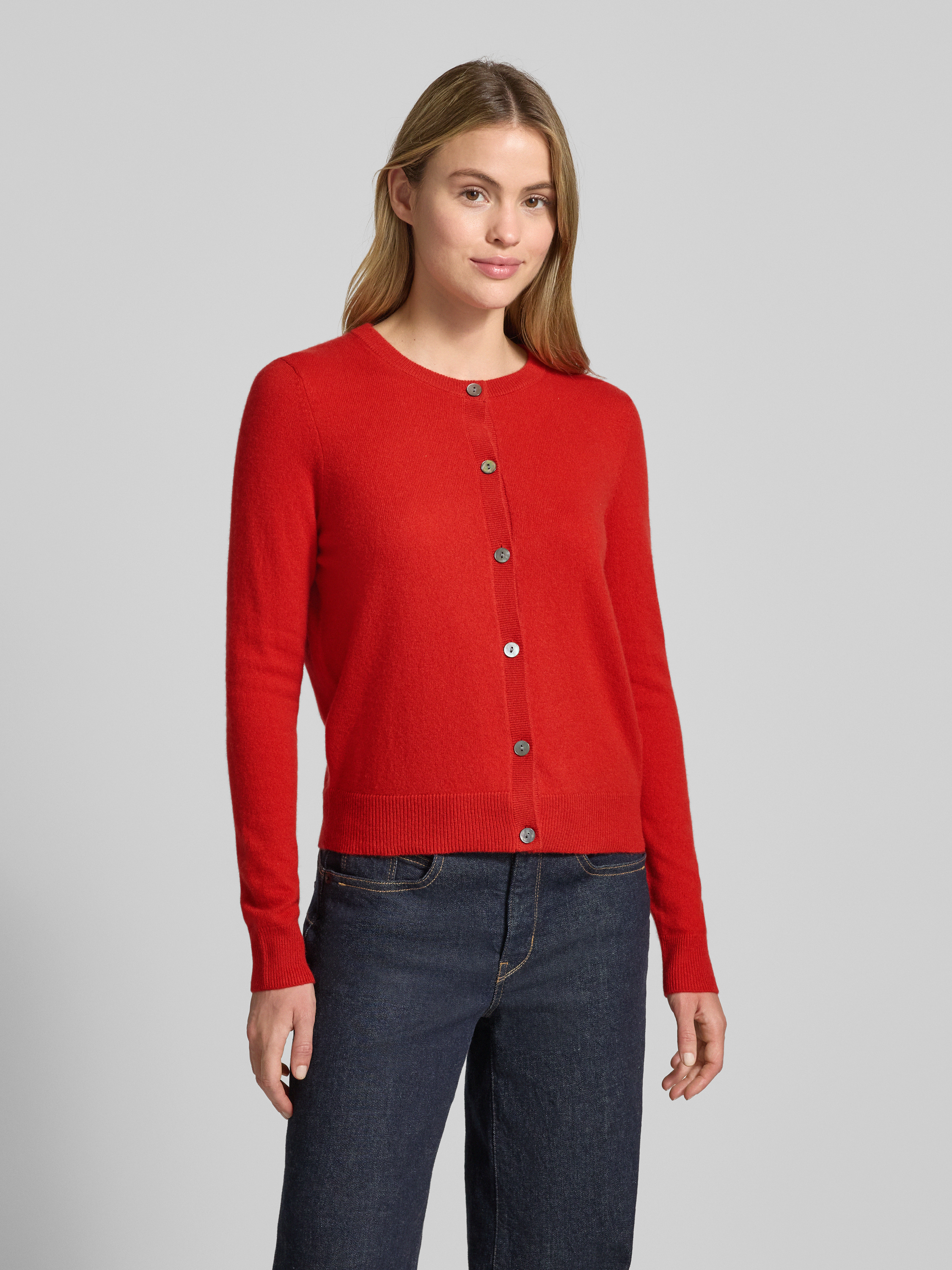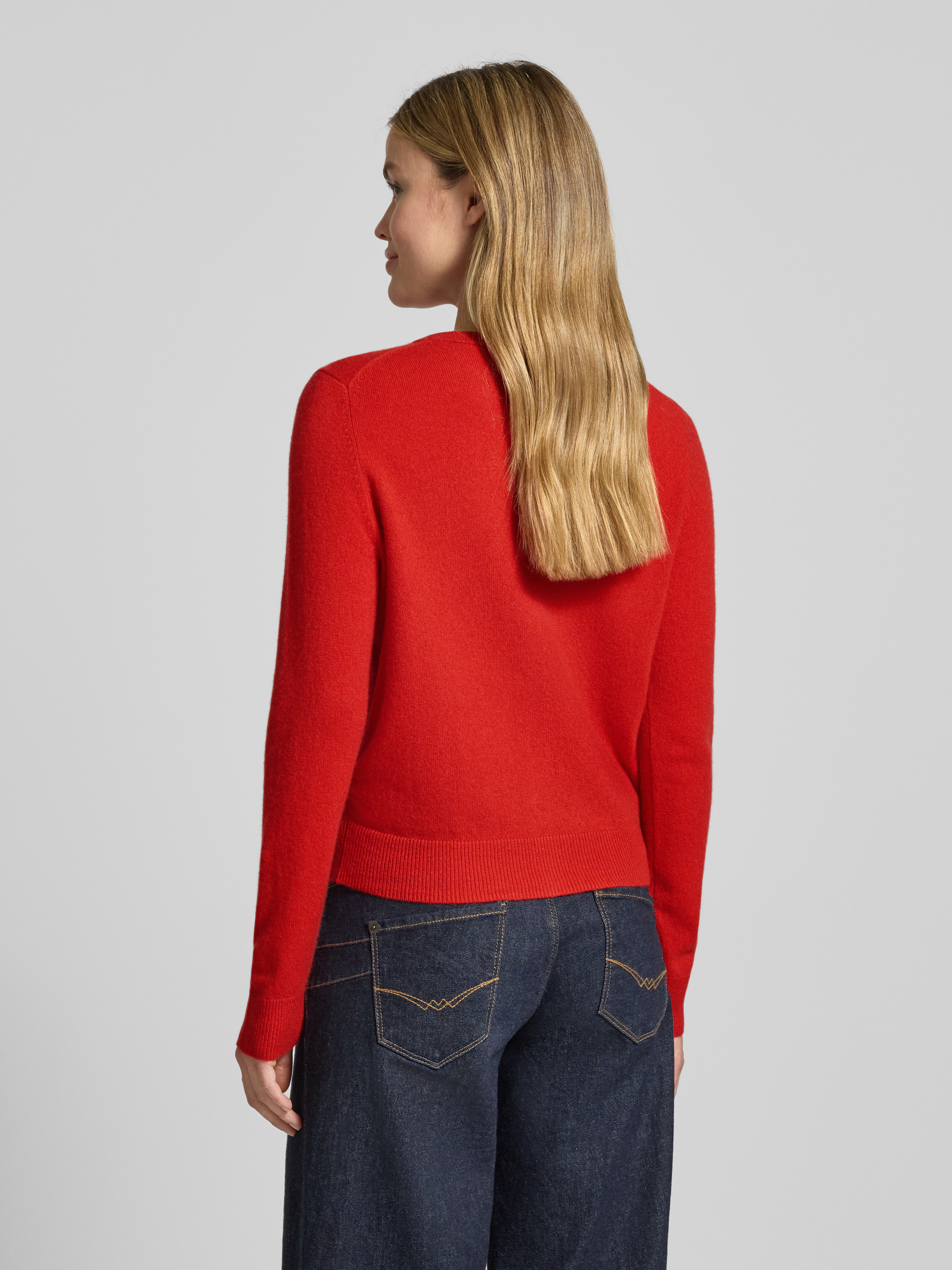 Kurtka z dzianiny z kaszmiru z okrągłym dekoltem - czerwony