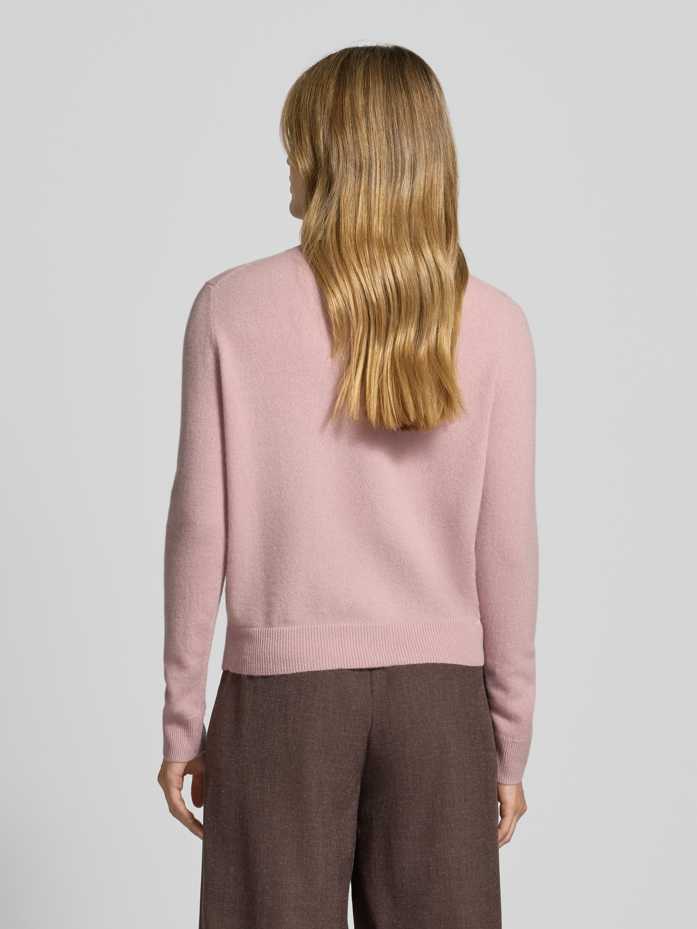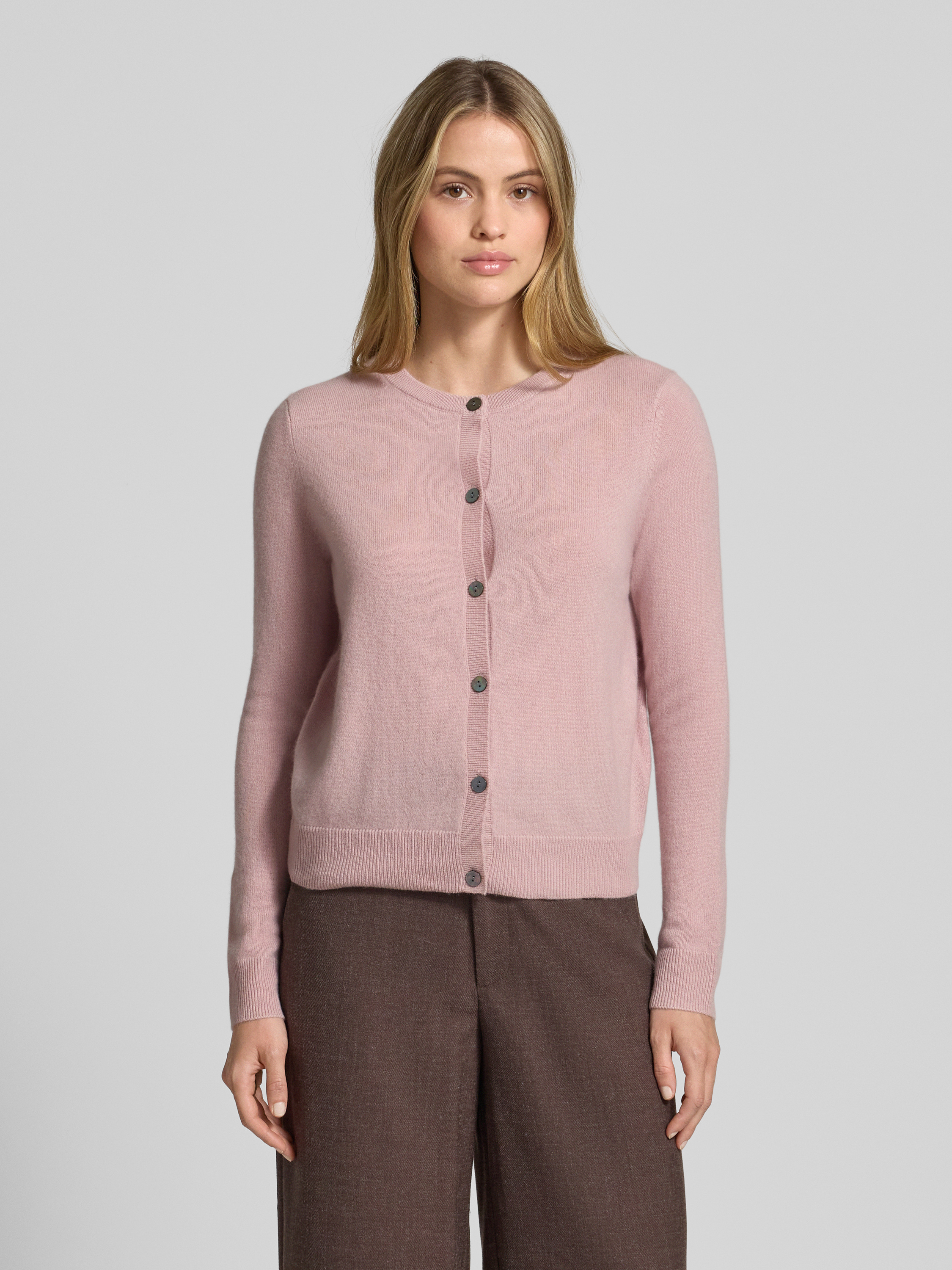 Kurtka z dzianiny z kaszmiru z okrągłym dekoltem - jasnoróżowy