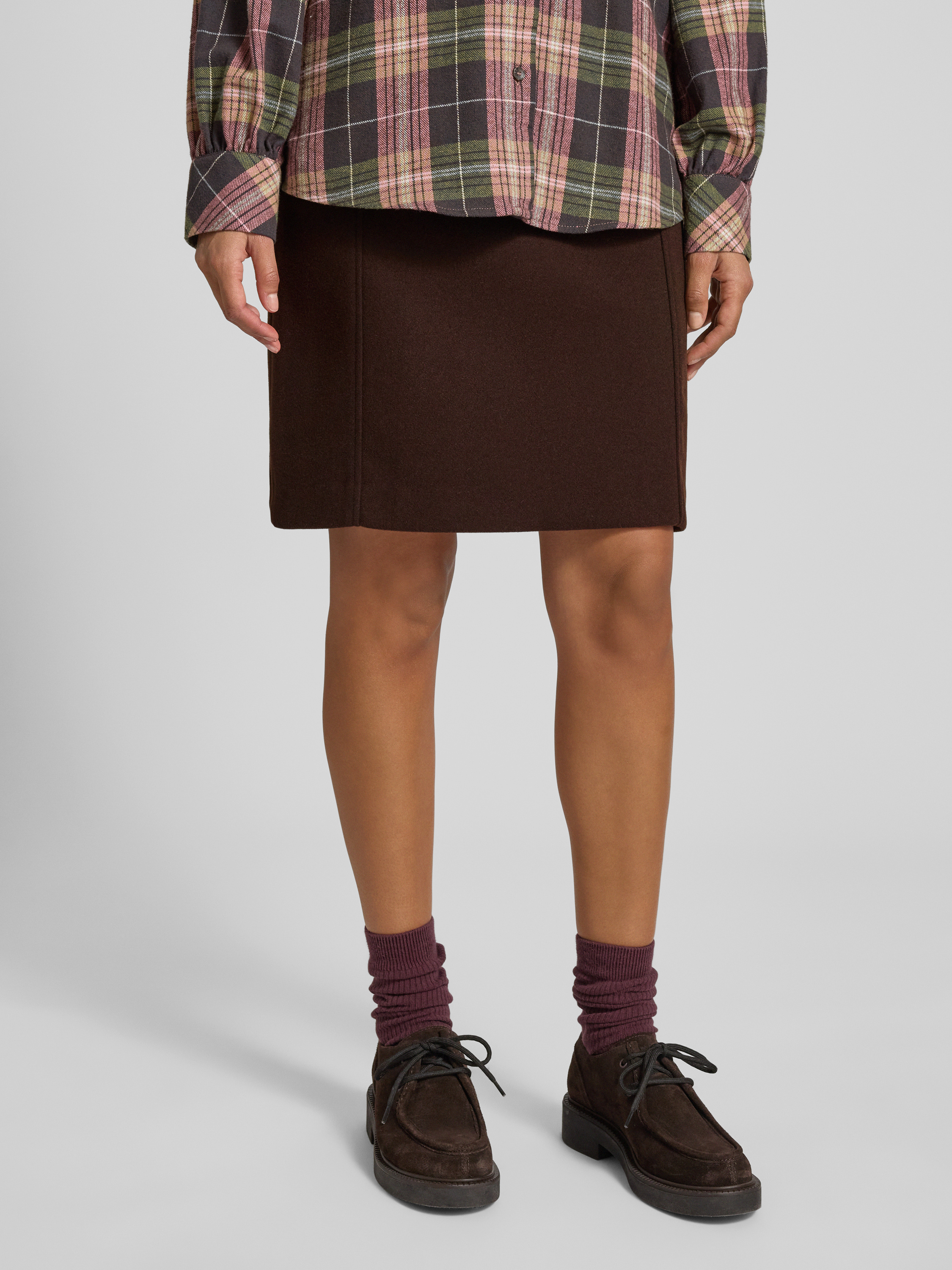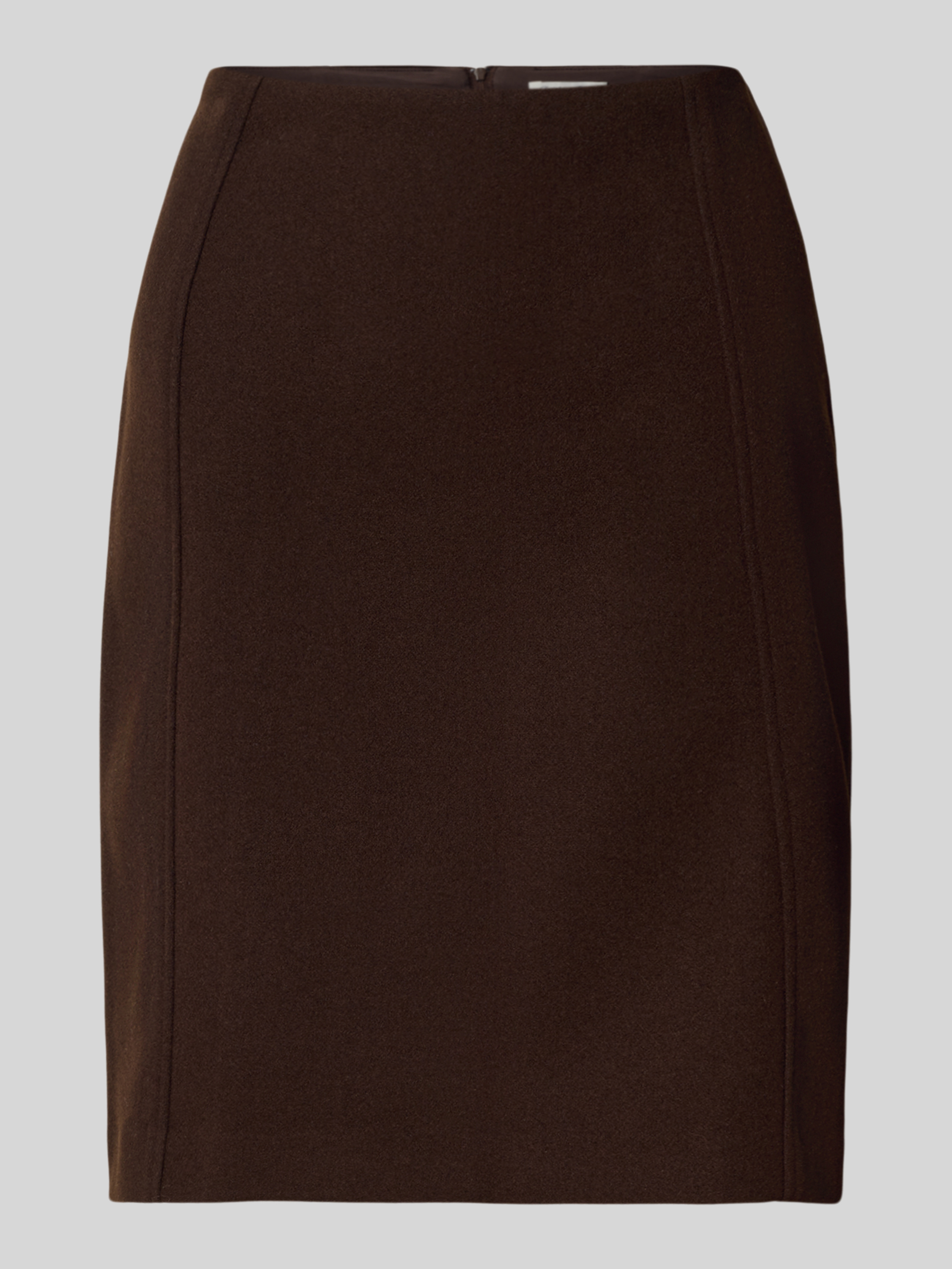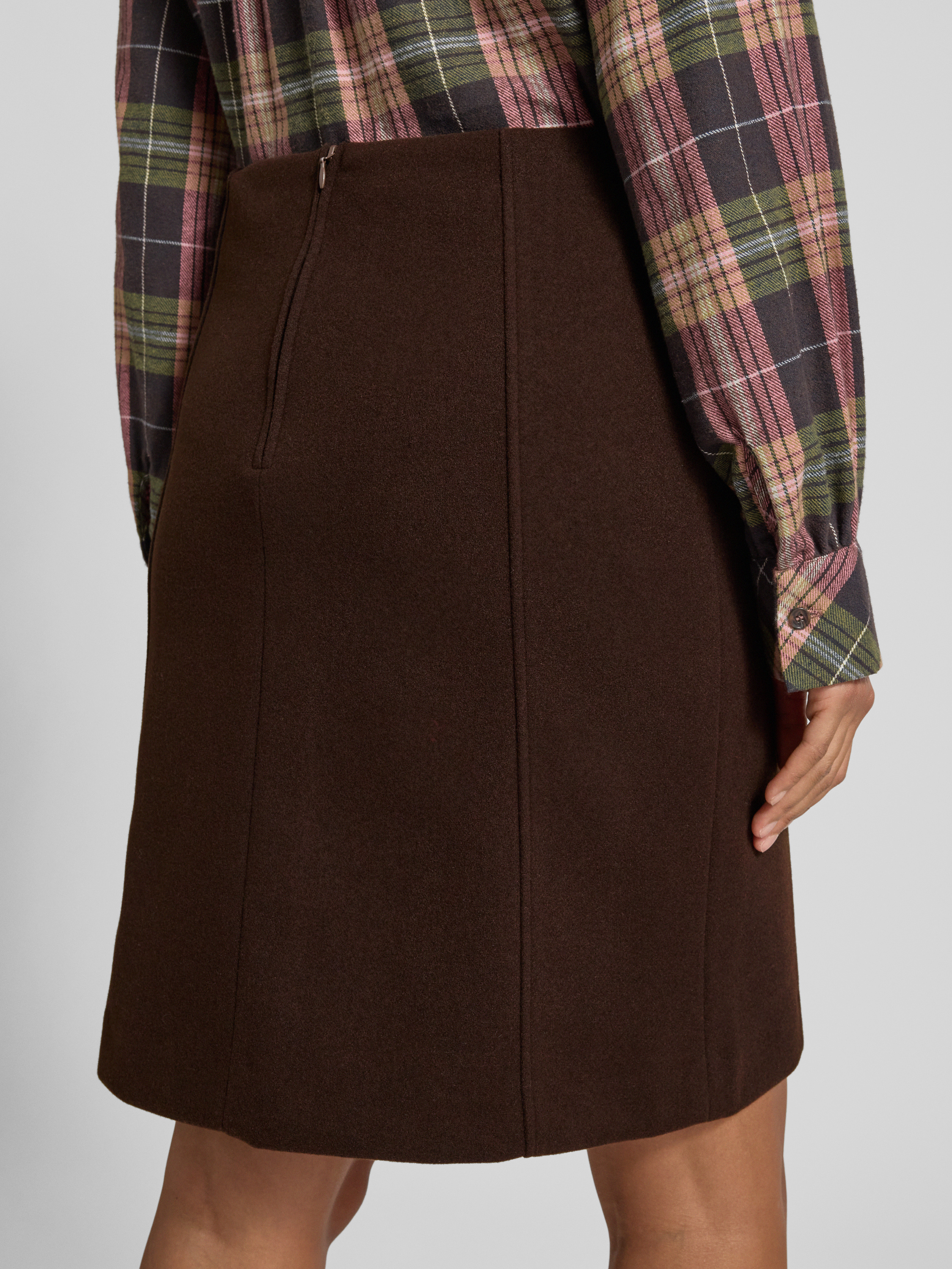 Spódnica o długości do kolan z wszytym zamkiem błyskawicznym - czekoladowy
