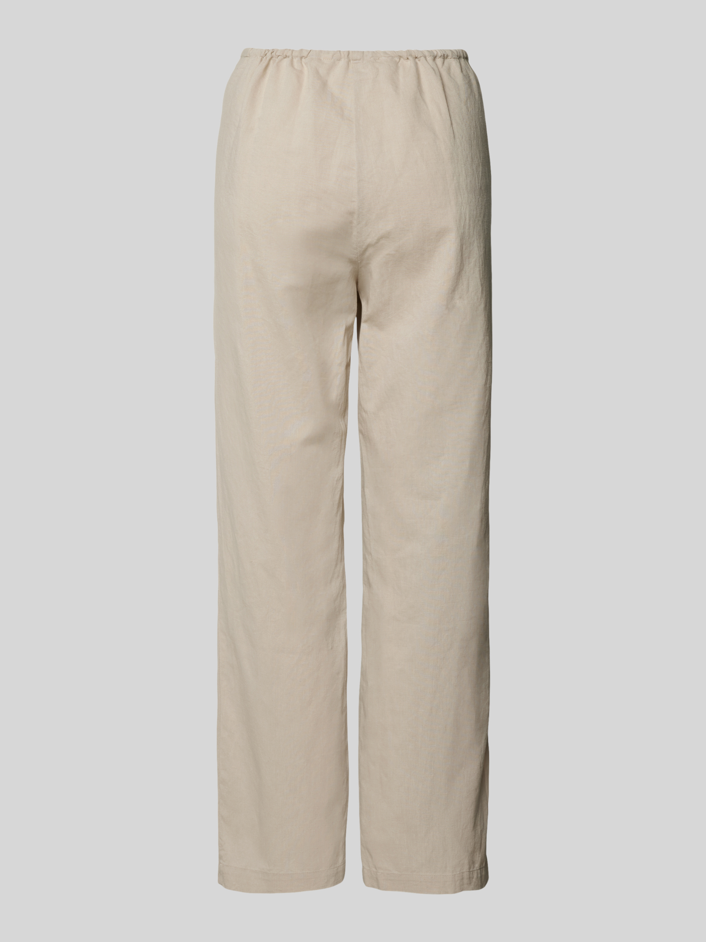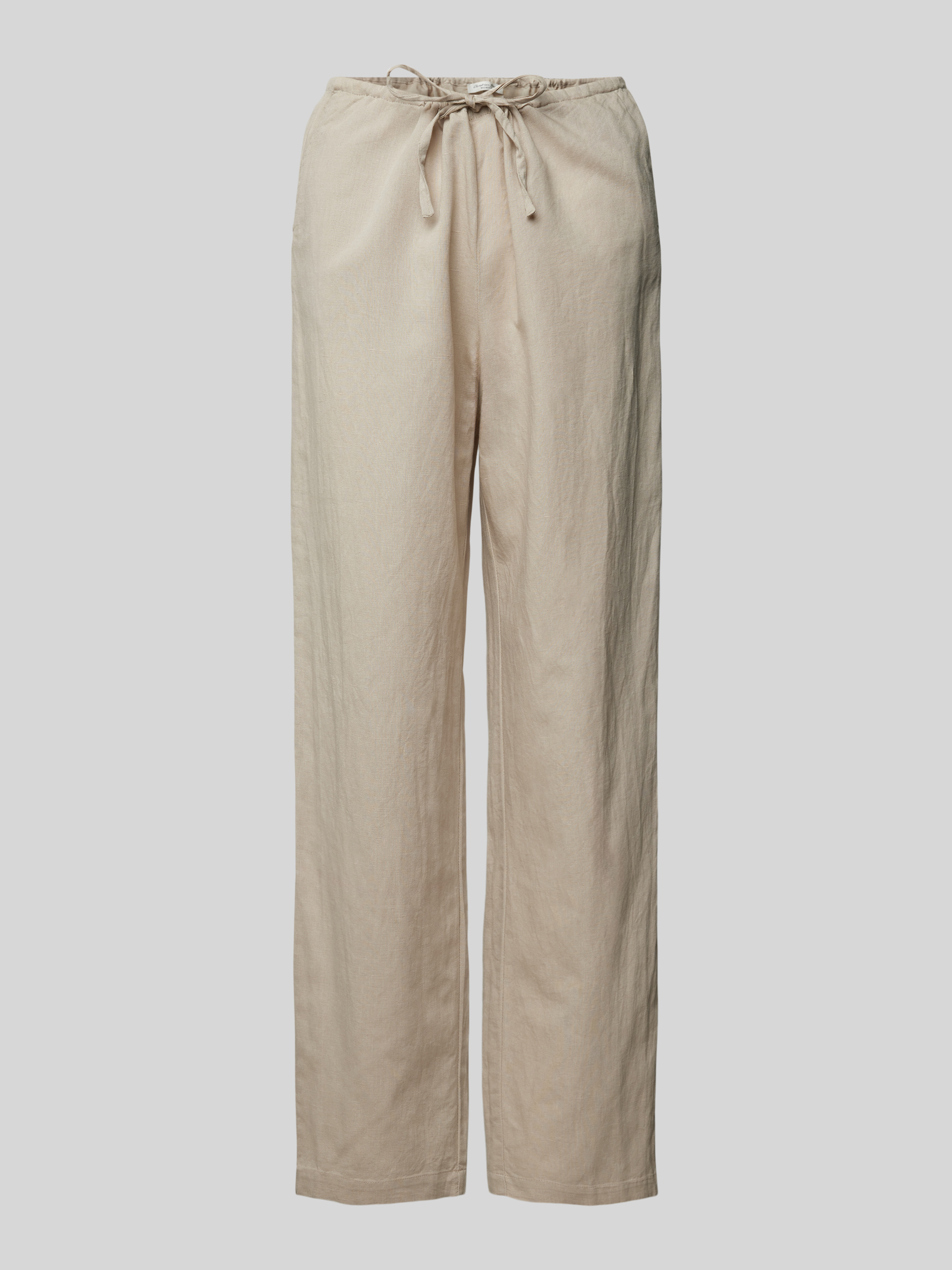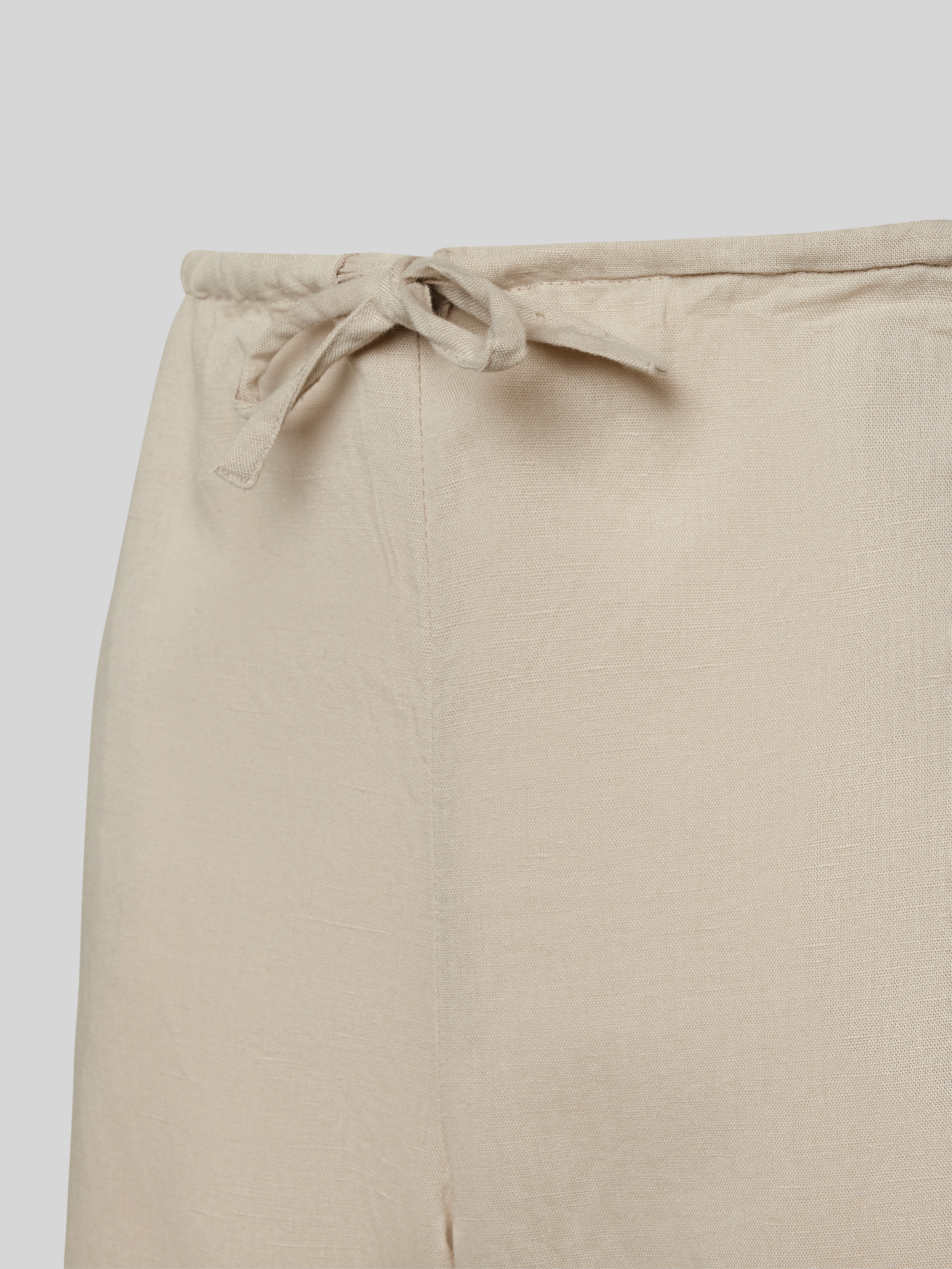 Spodnie lniane z szeroką nogawką i tunelem - beżowy