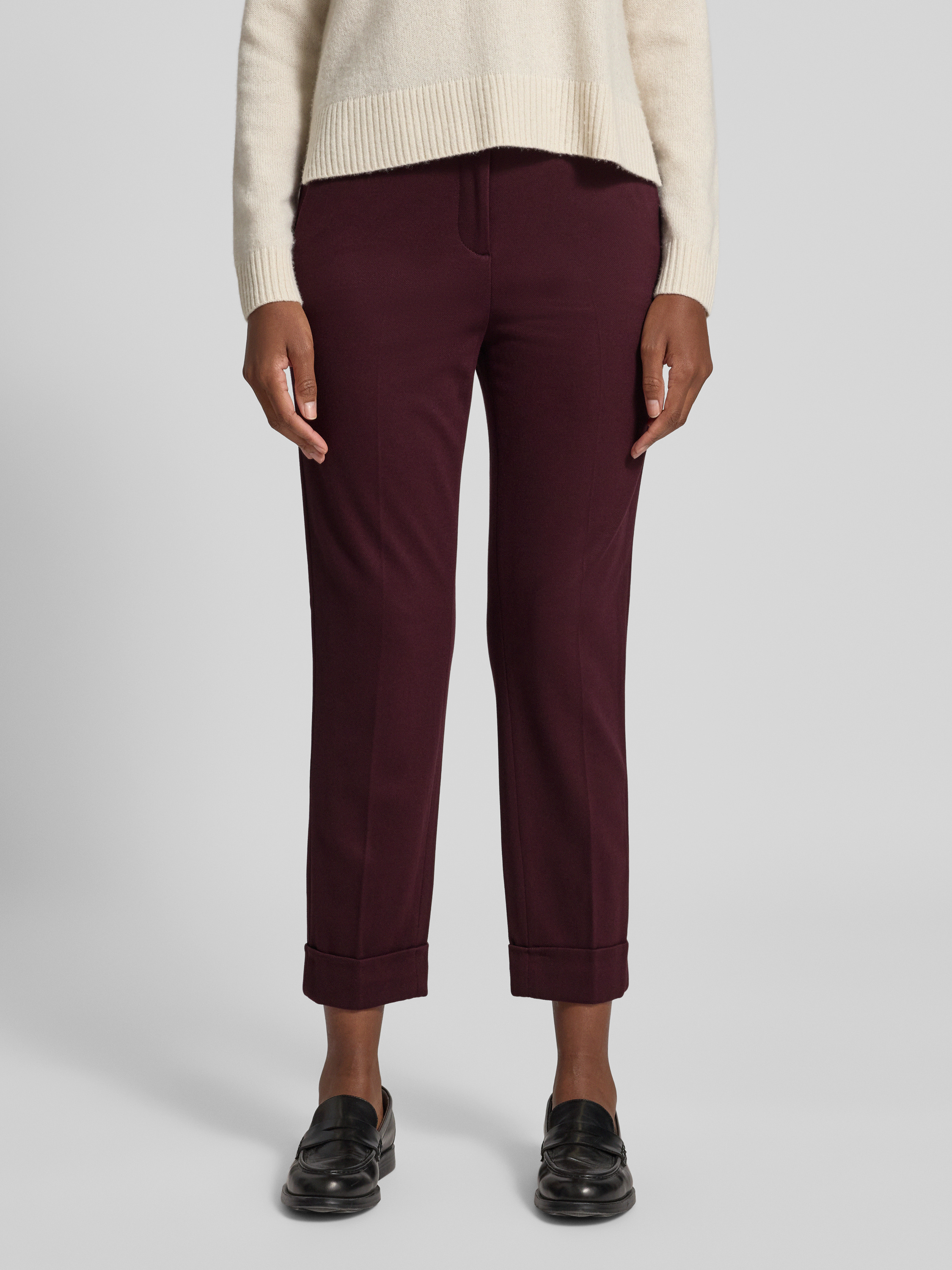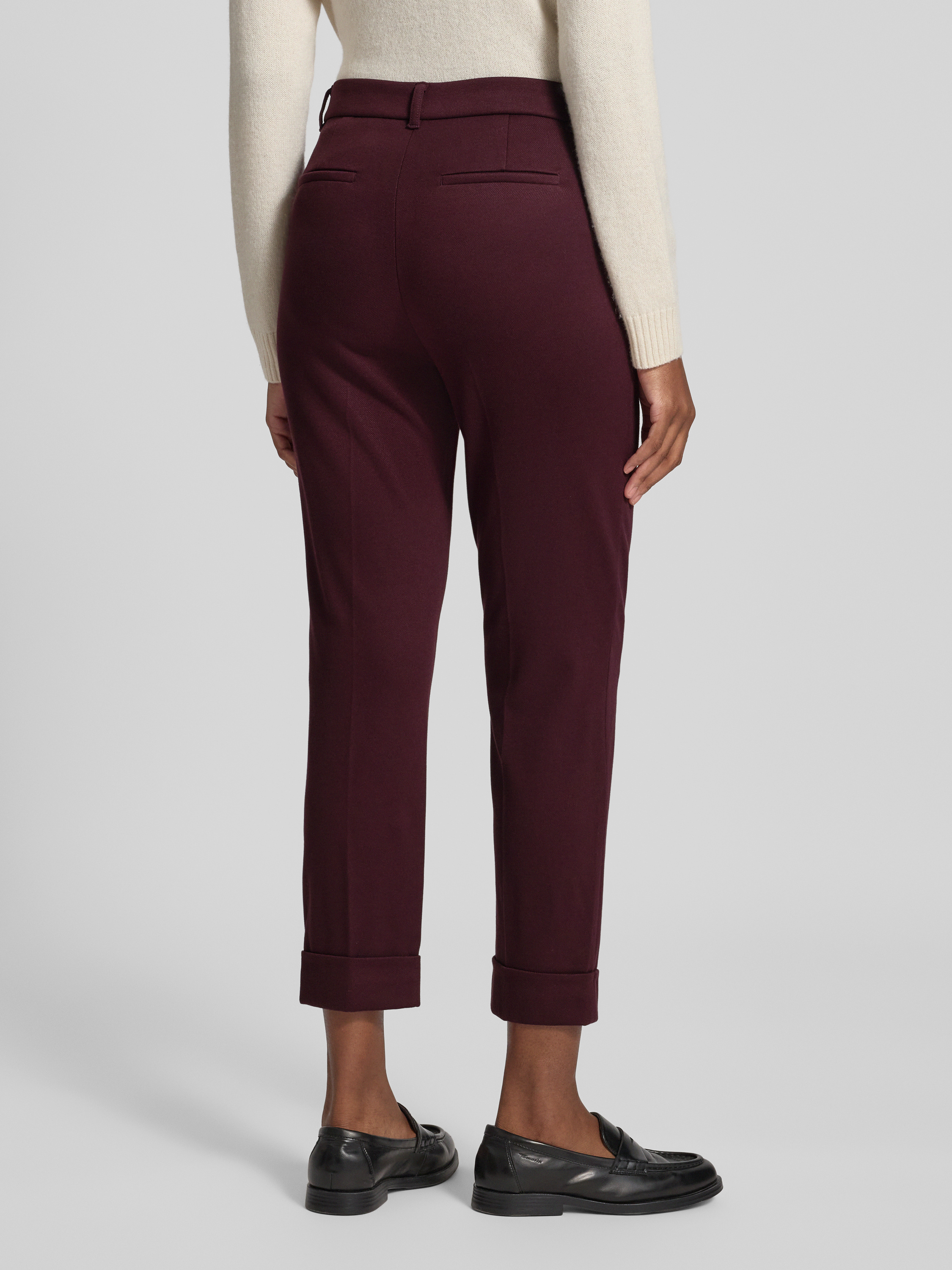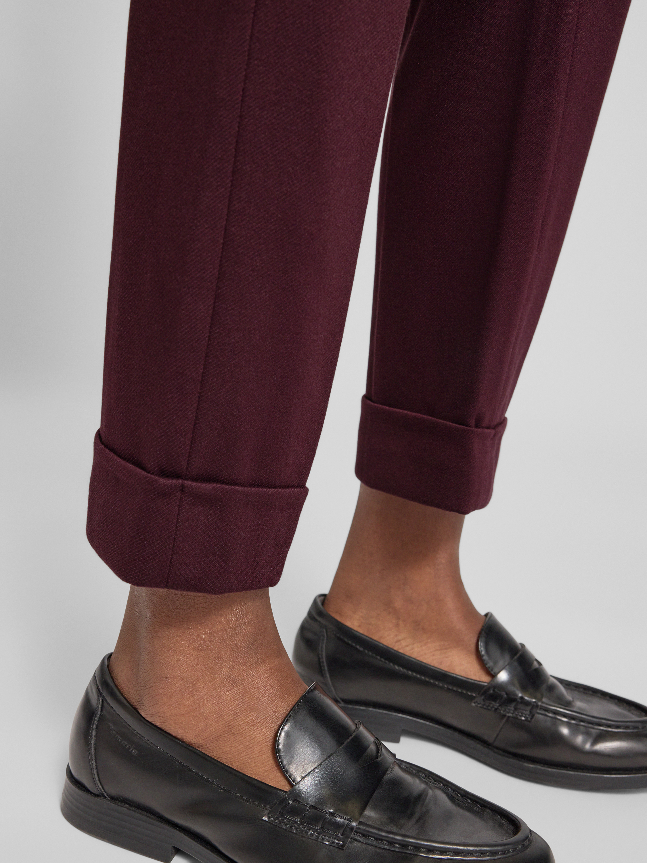 Spodnie materiałowe z kieszeniami z tyłu - ciemnoczerwony