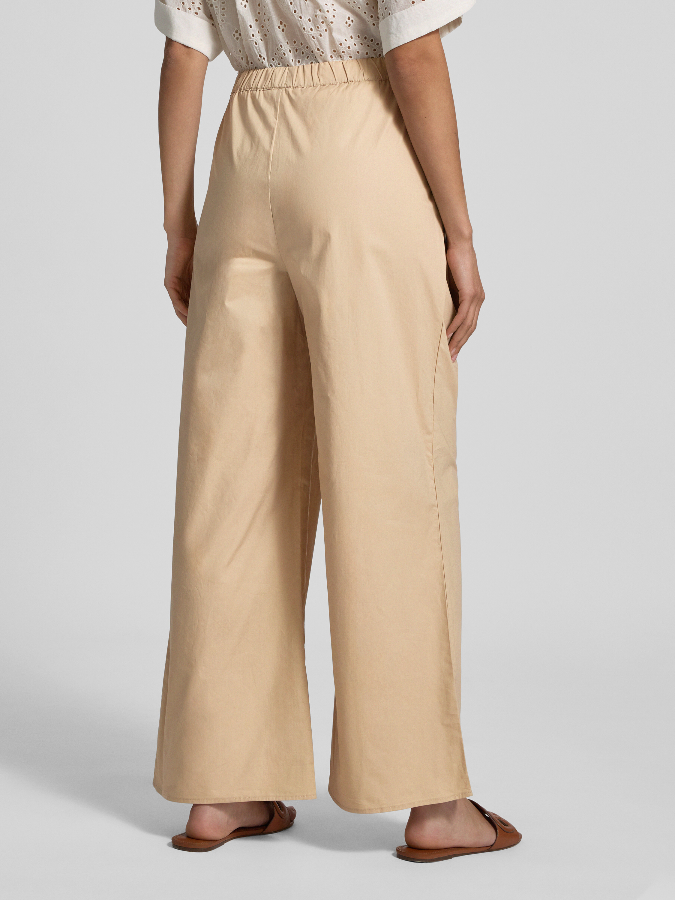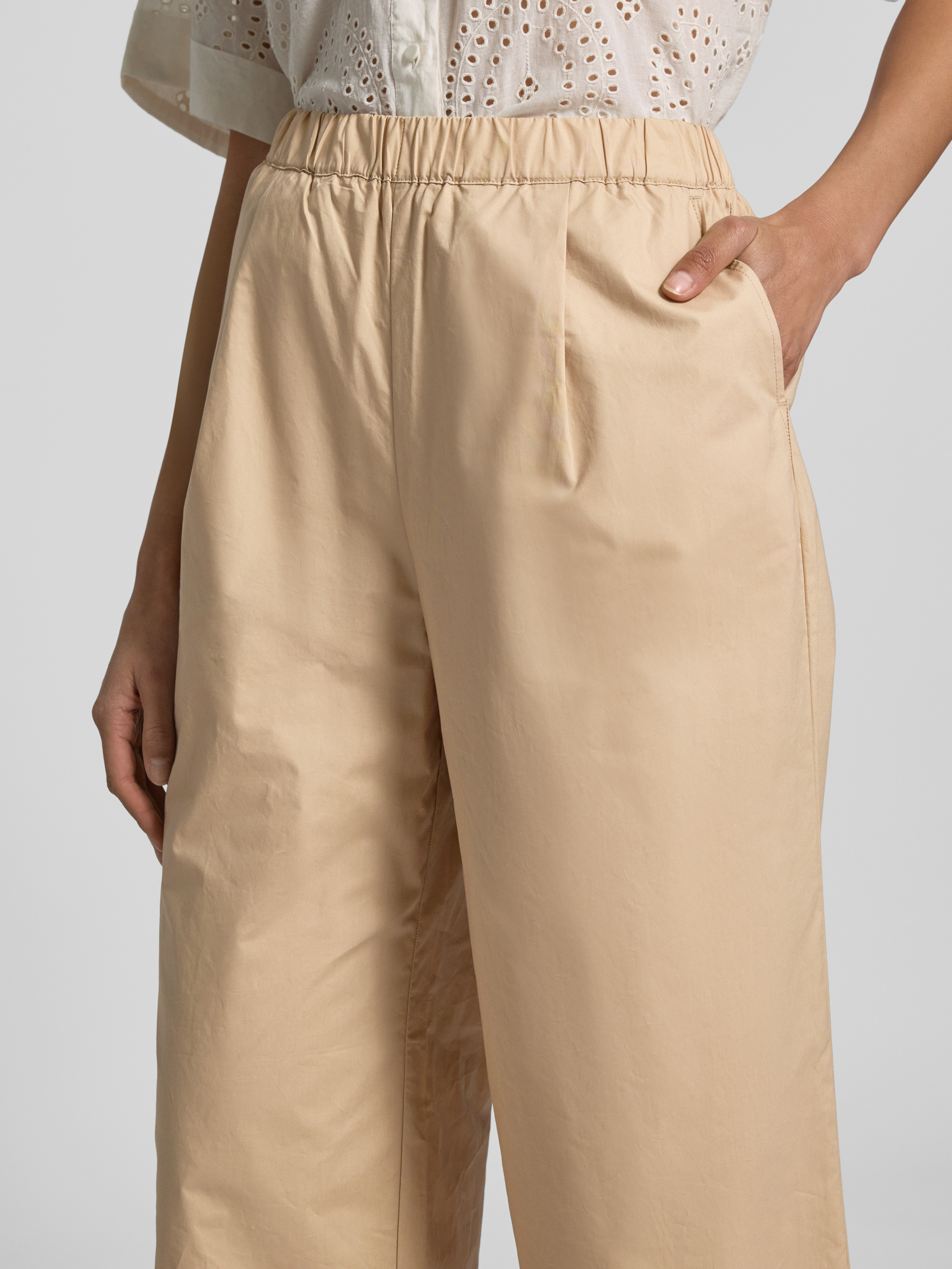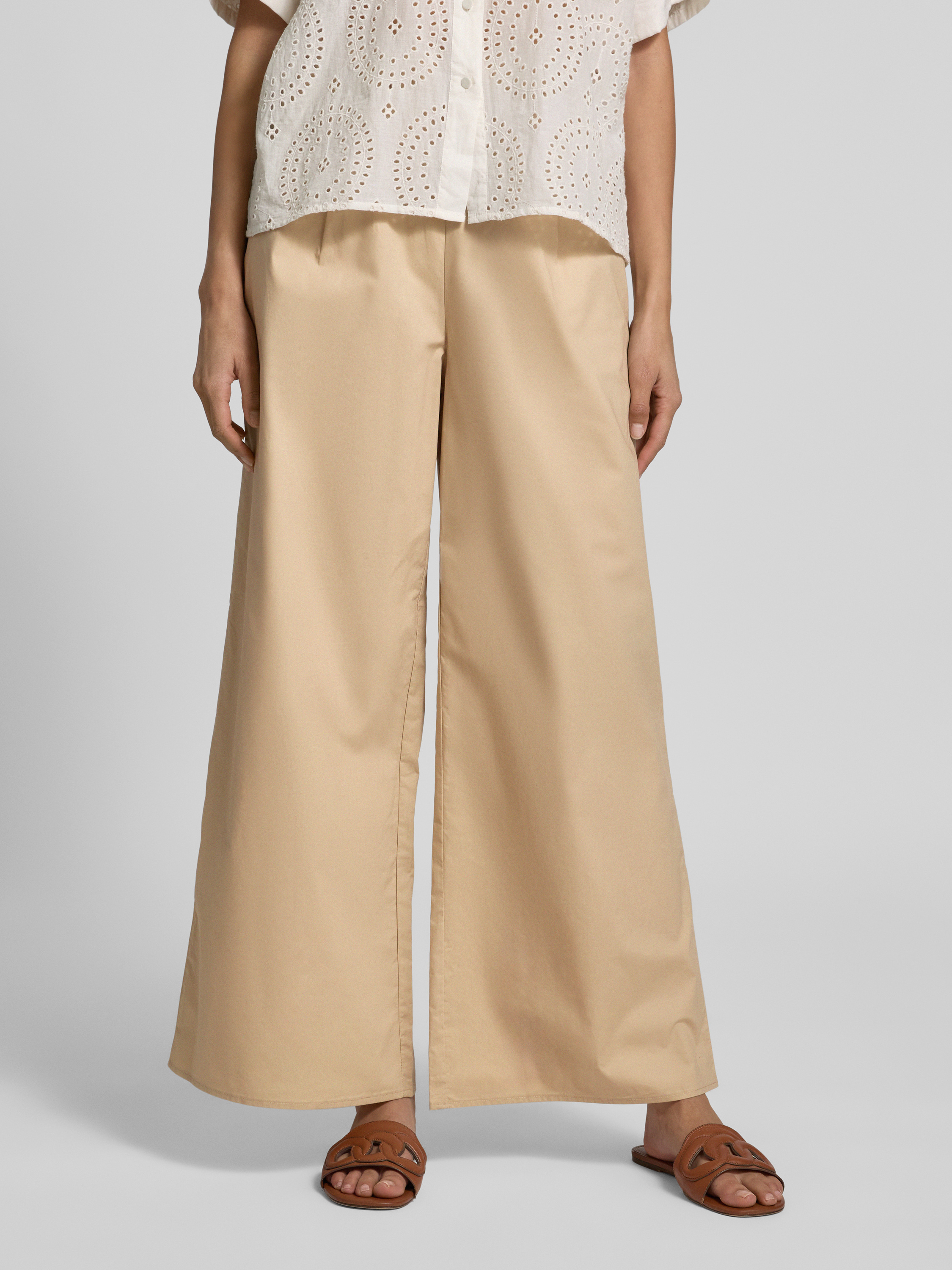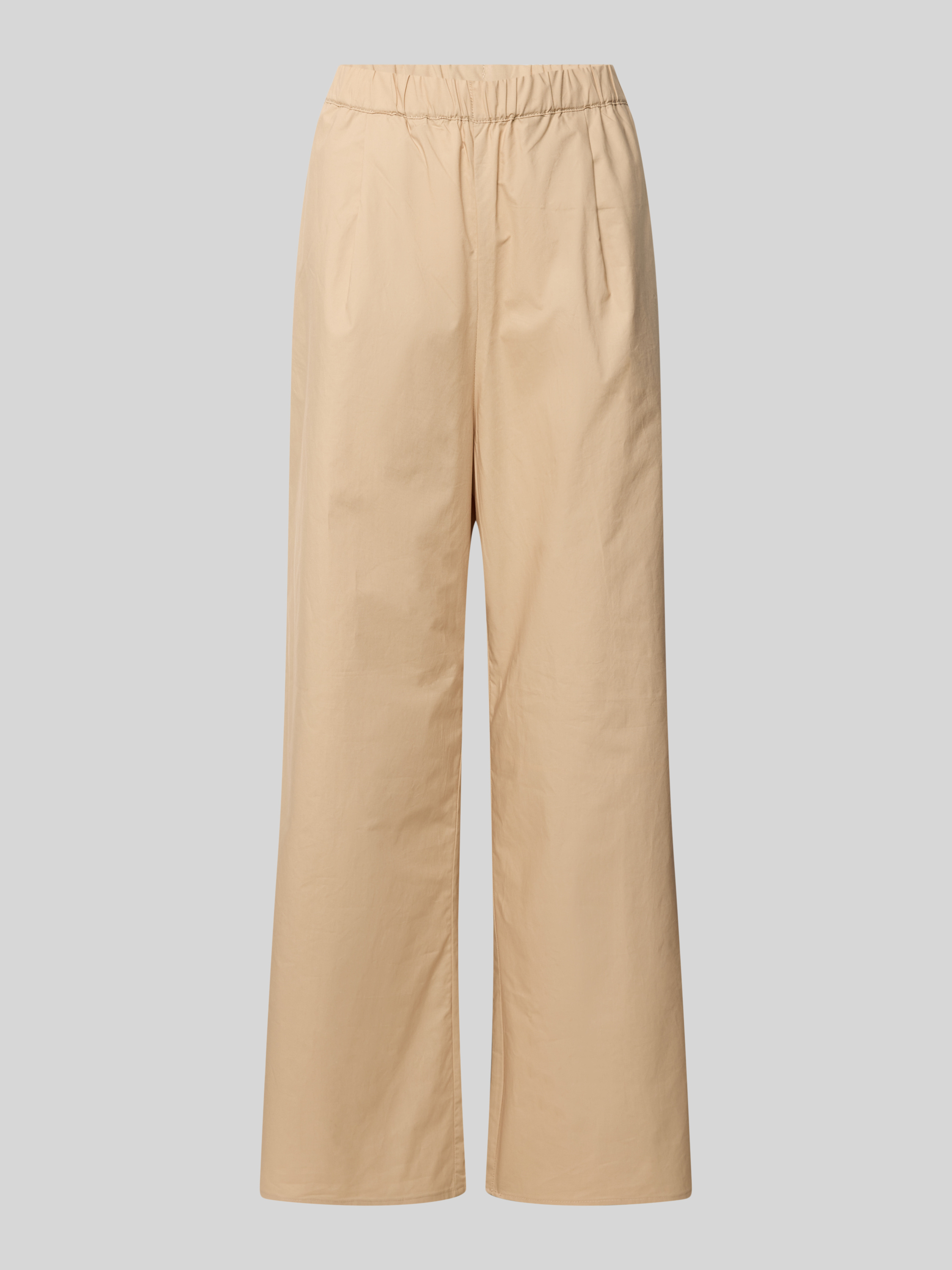 Spodnie materiałowe z prostą nogawką i elastycznym pasem - piaskowy