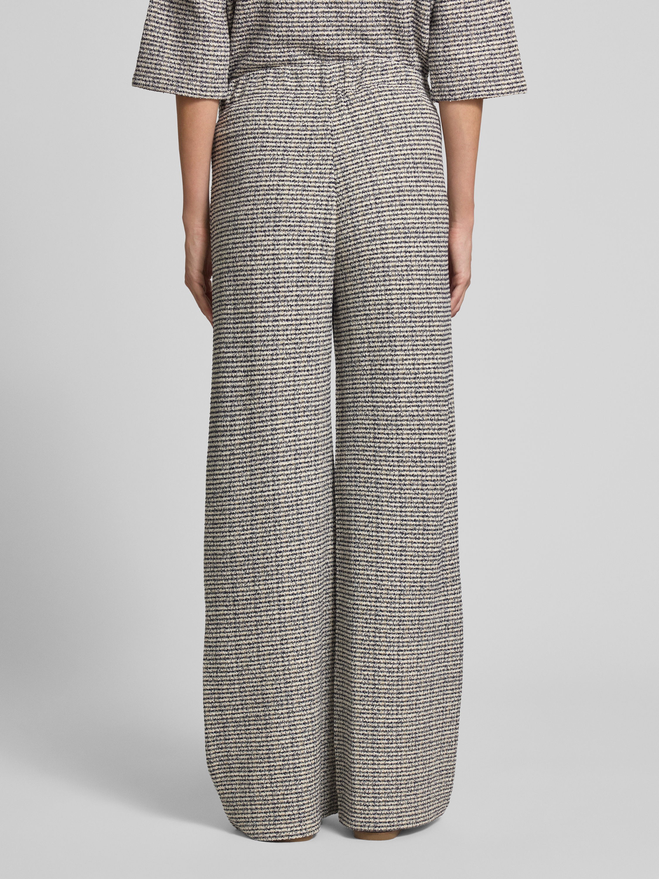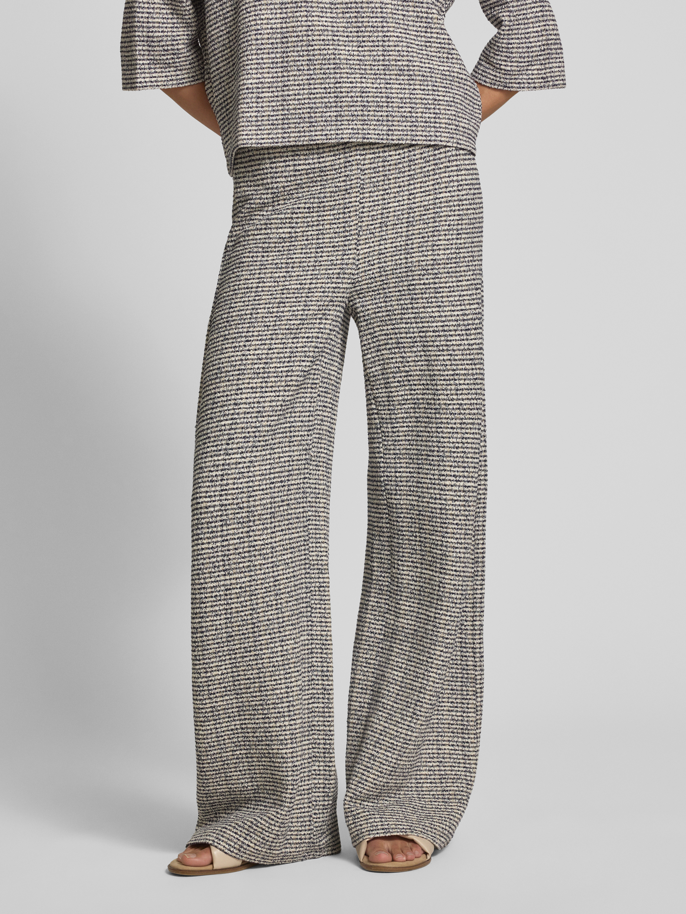 Spodnie materiałowe z szeroką nogawką i fakturowanym wzorem - ciemnoniebieski
