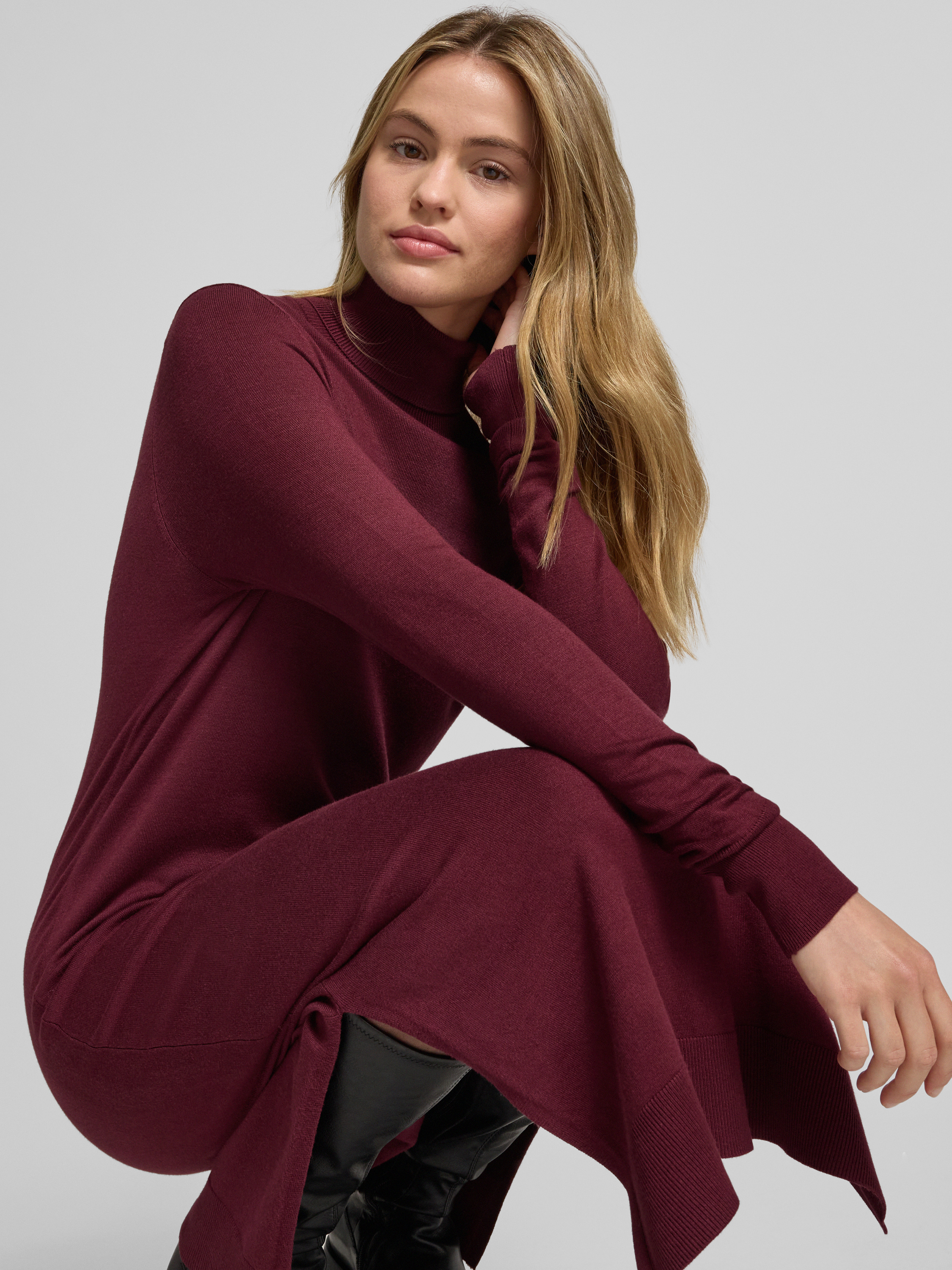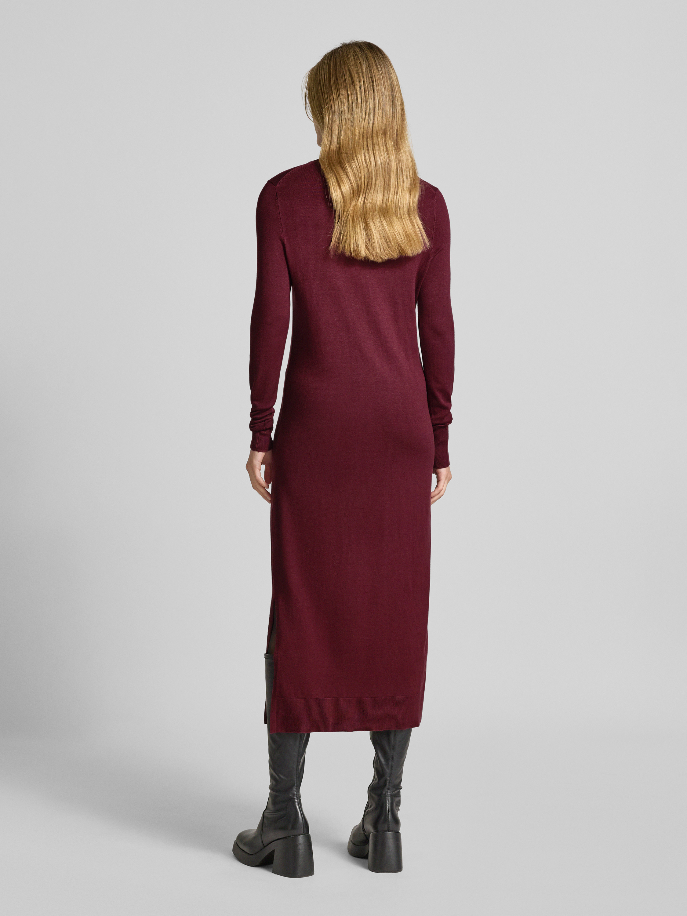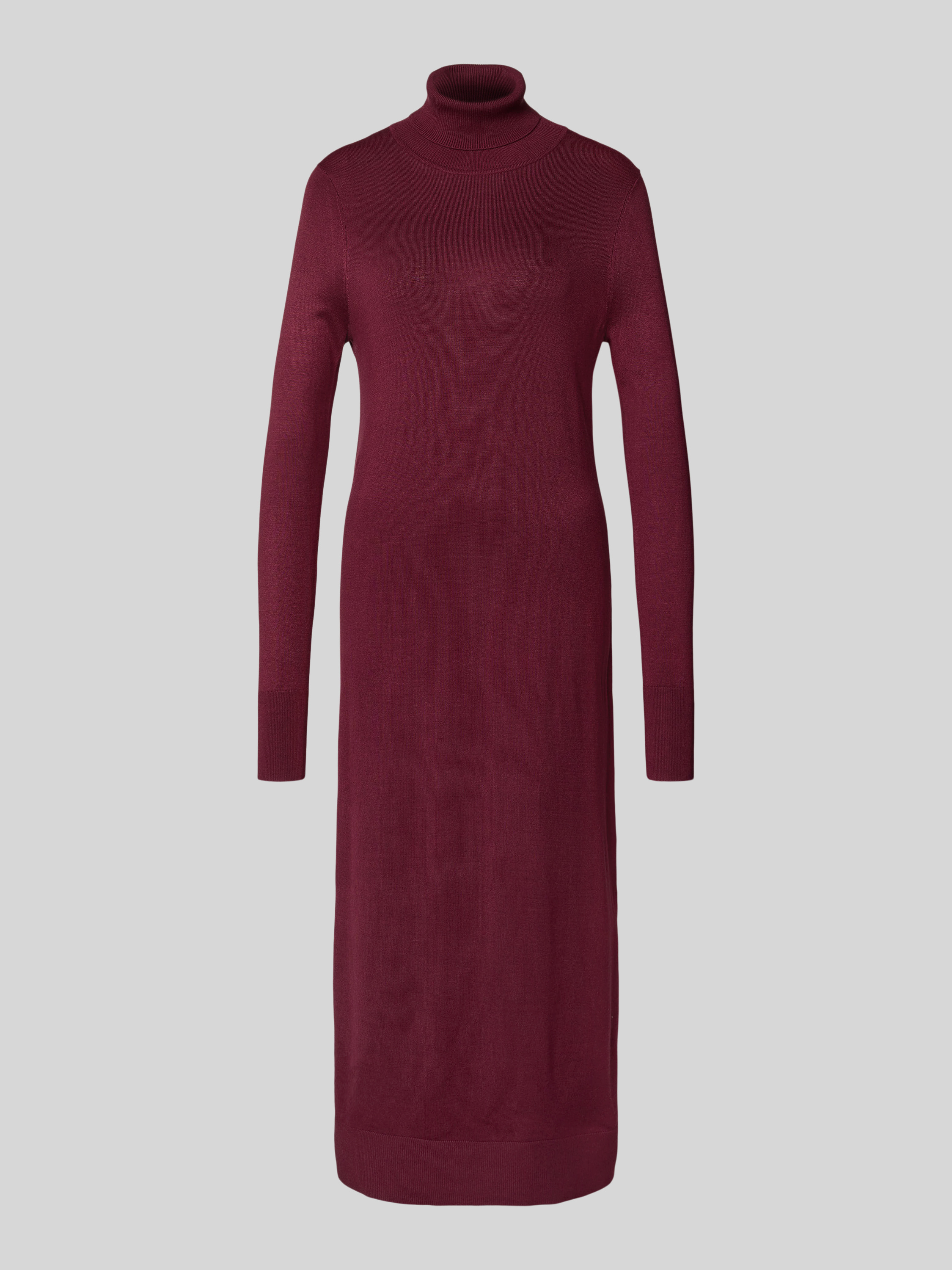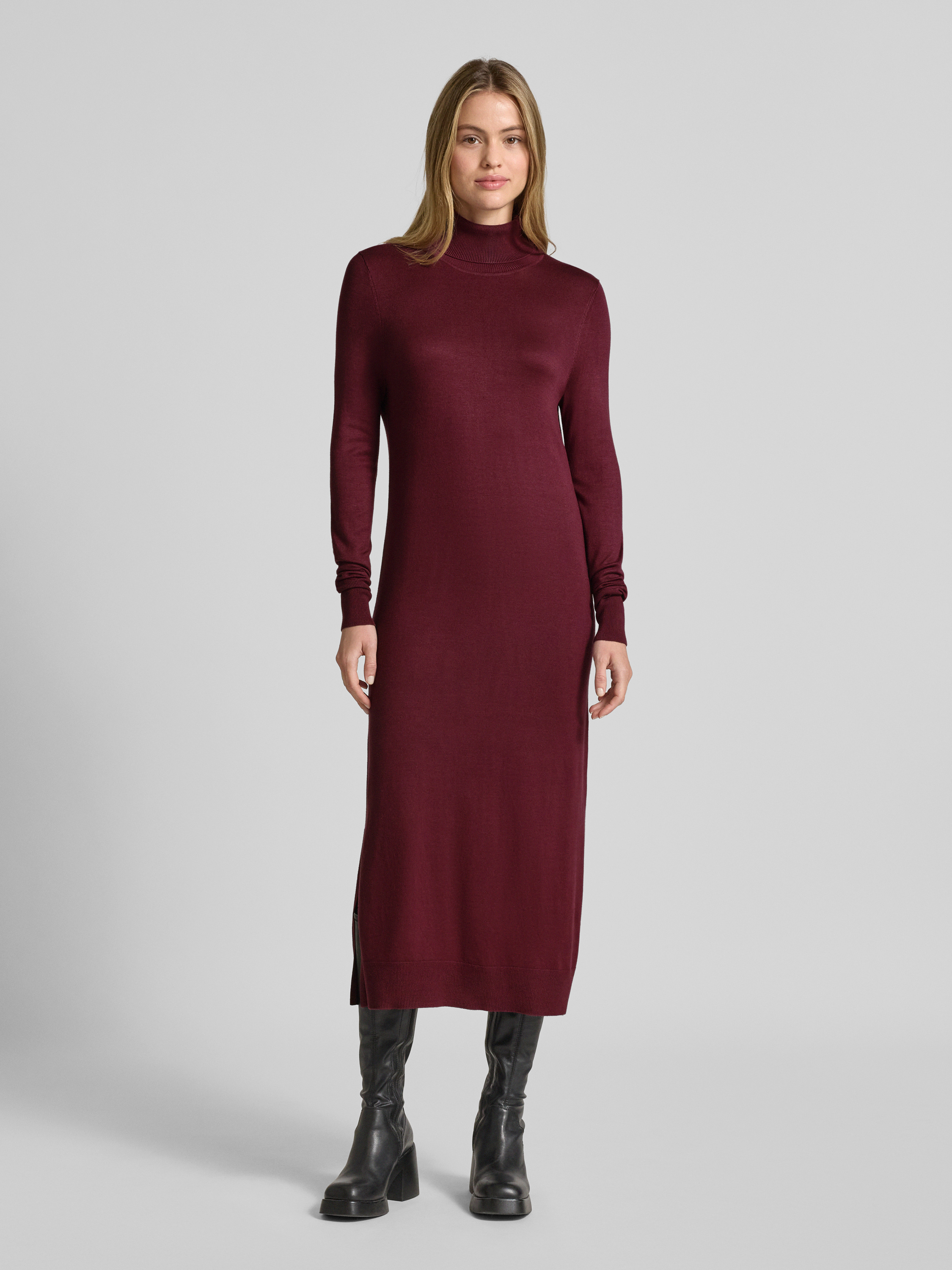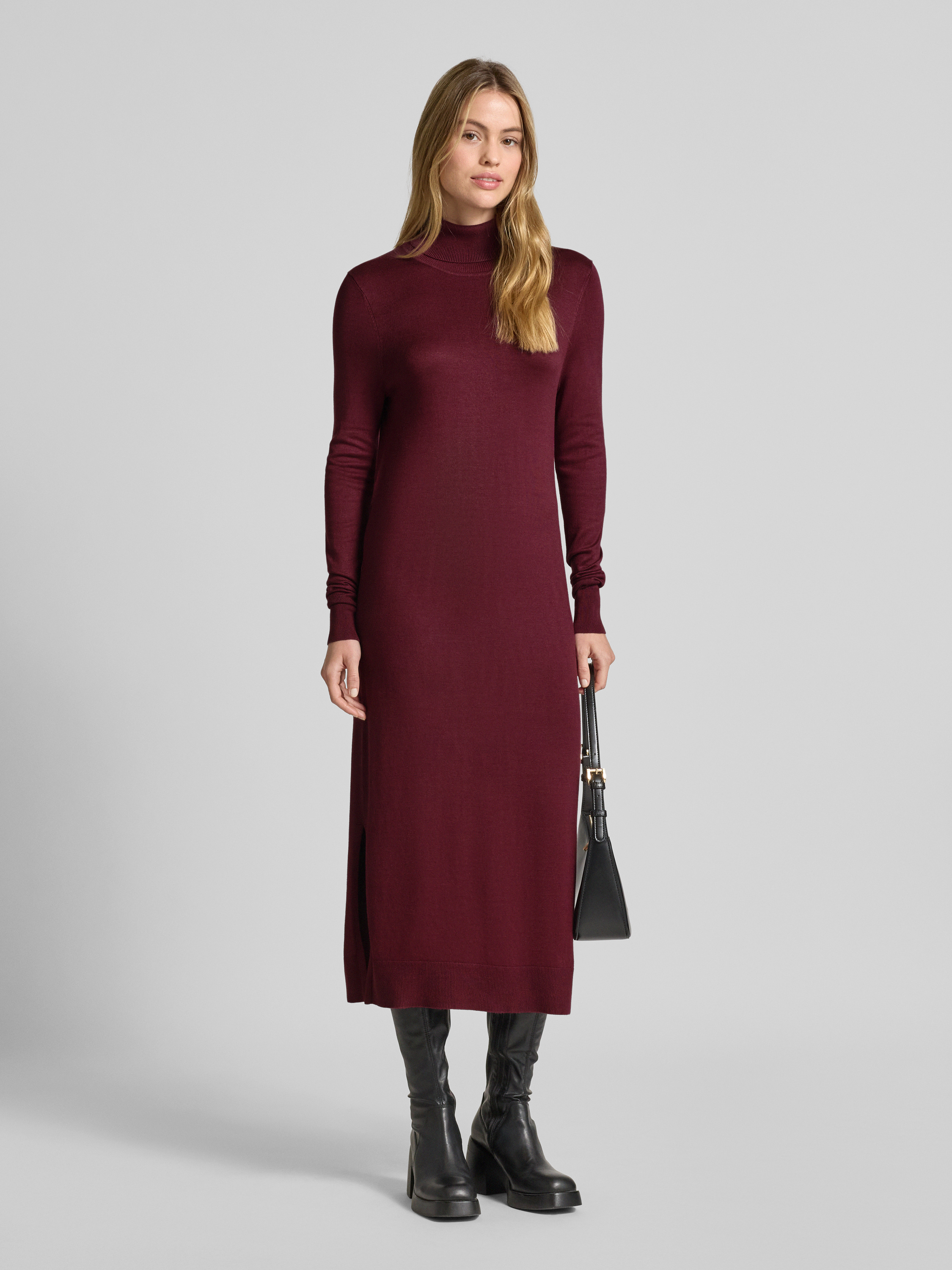 Sukienka z dzianiny z mieszanki wiskozy z rolowanym kołnierzem - bordowy