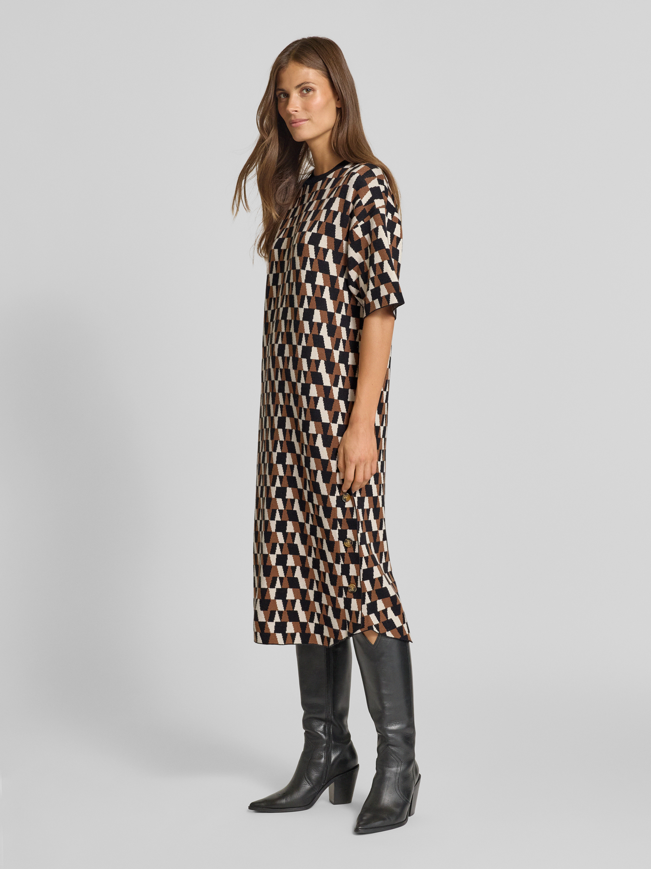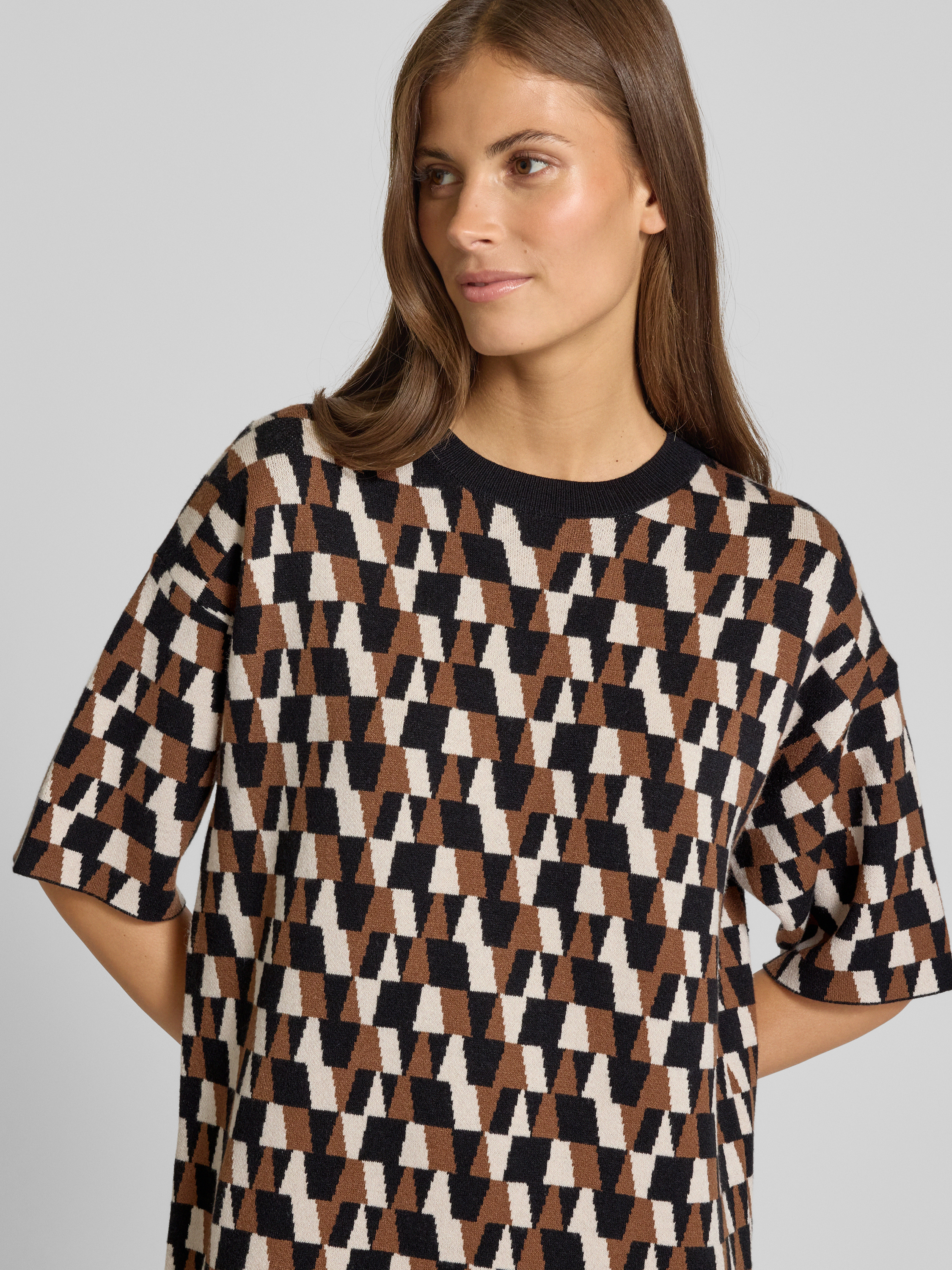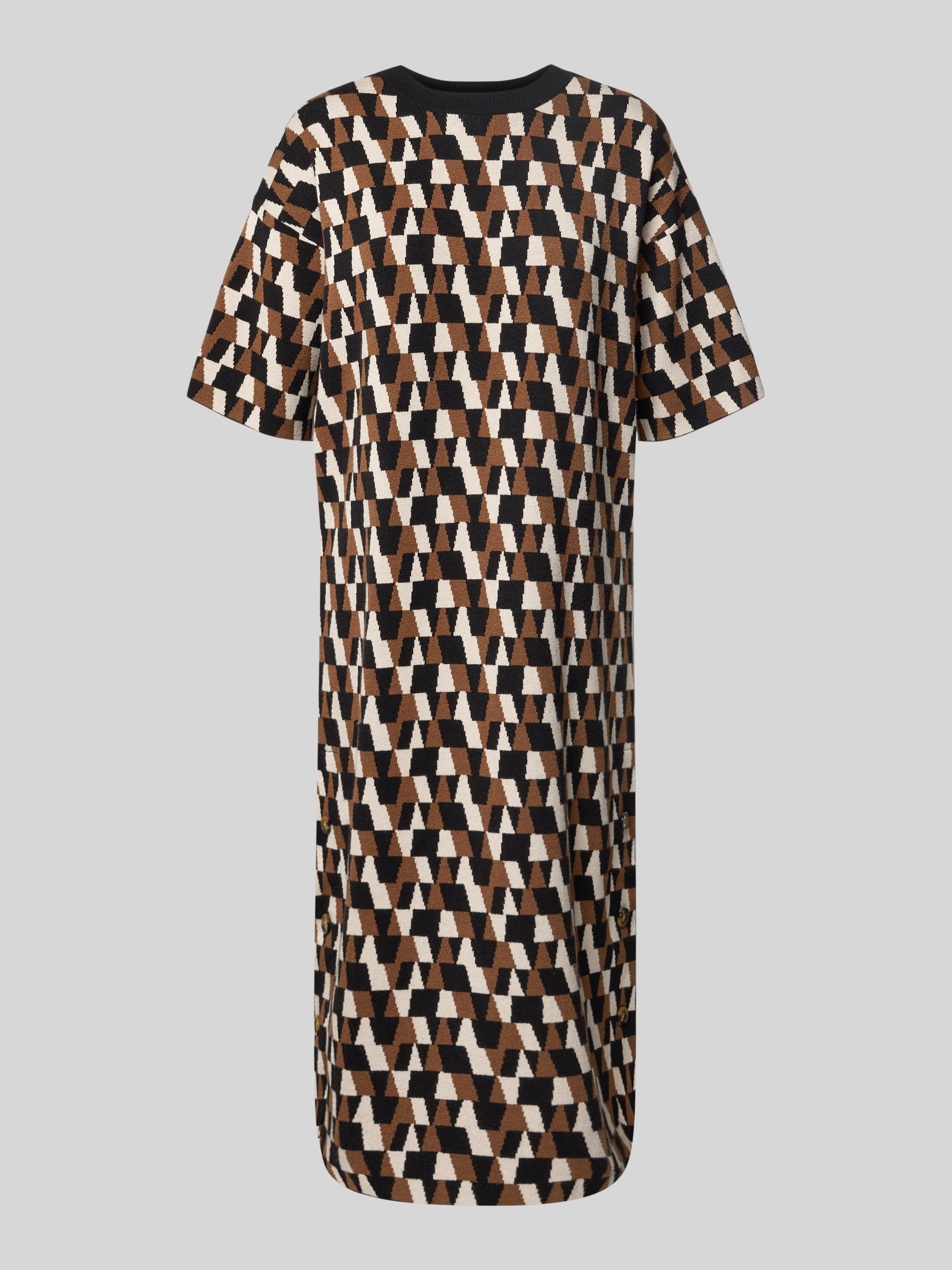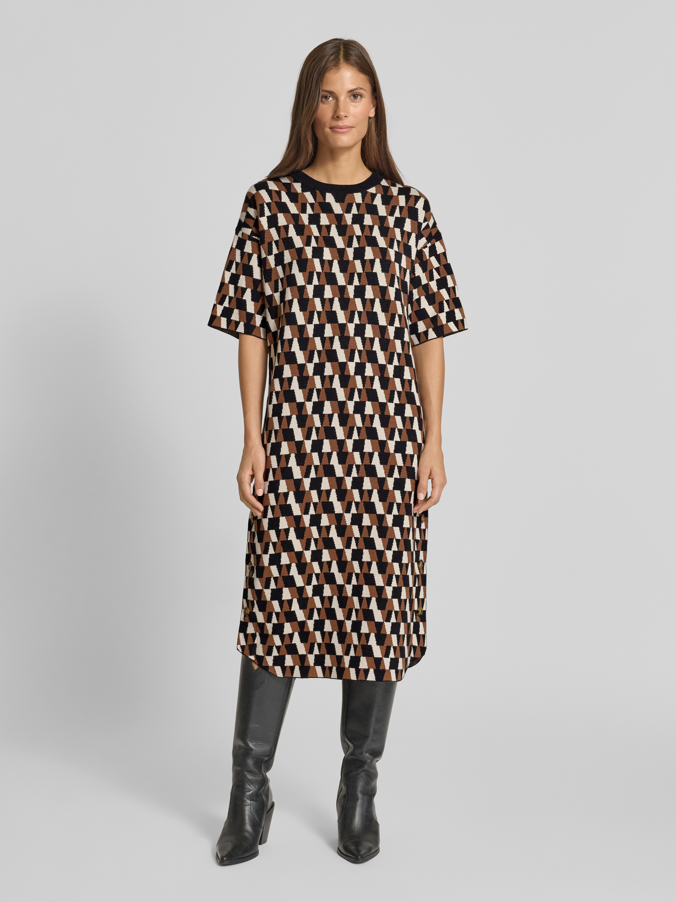 Sukienka z dzianiny z okrągłym dekoltem - koniakowy