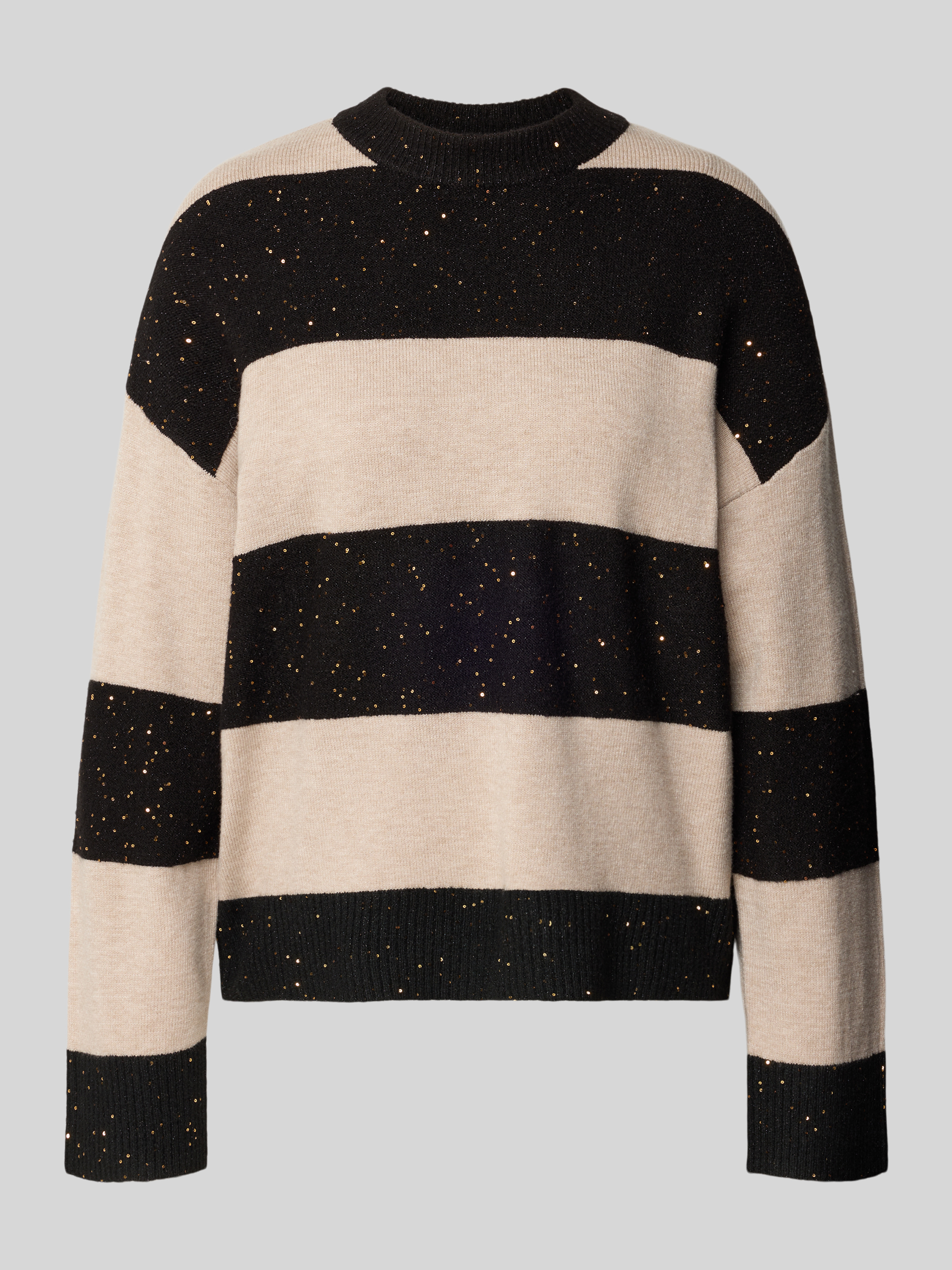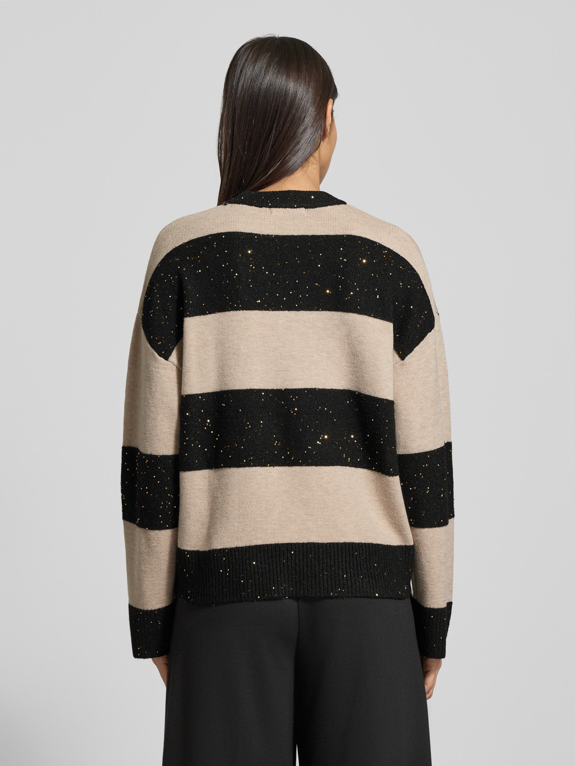 Sweter z dzianiny o kroju oversized z prążkowanymi wykończeniami - czarny