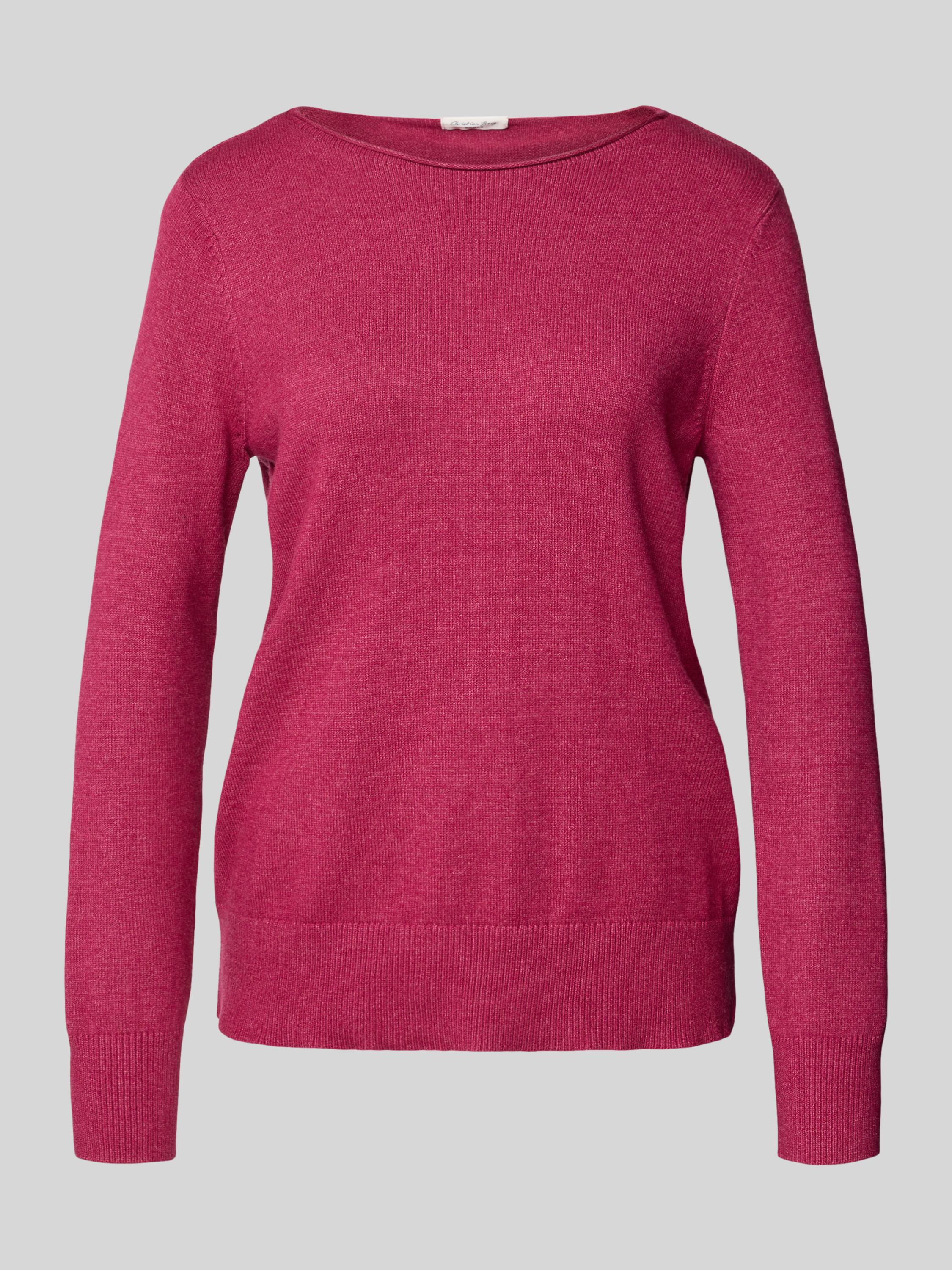 Sweter z dzianiny z dekoltem w łódkę - fuksjowy melanż
