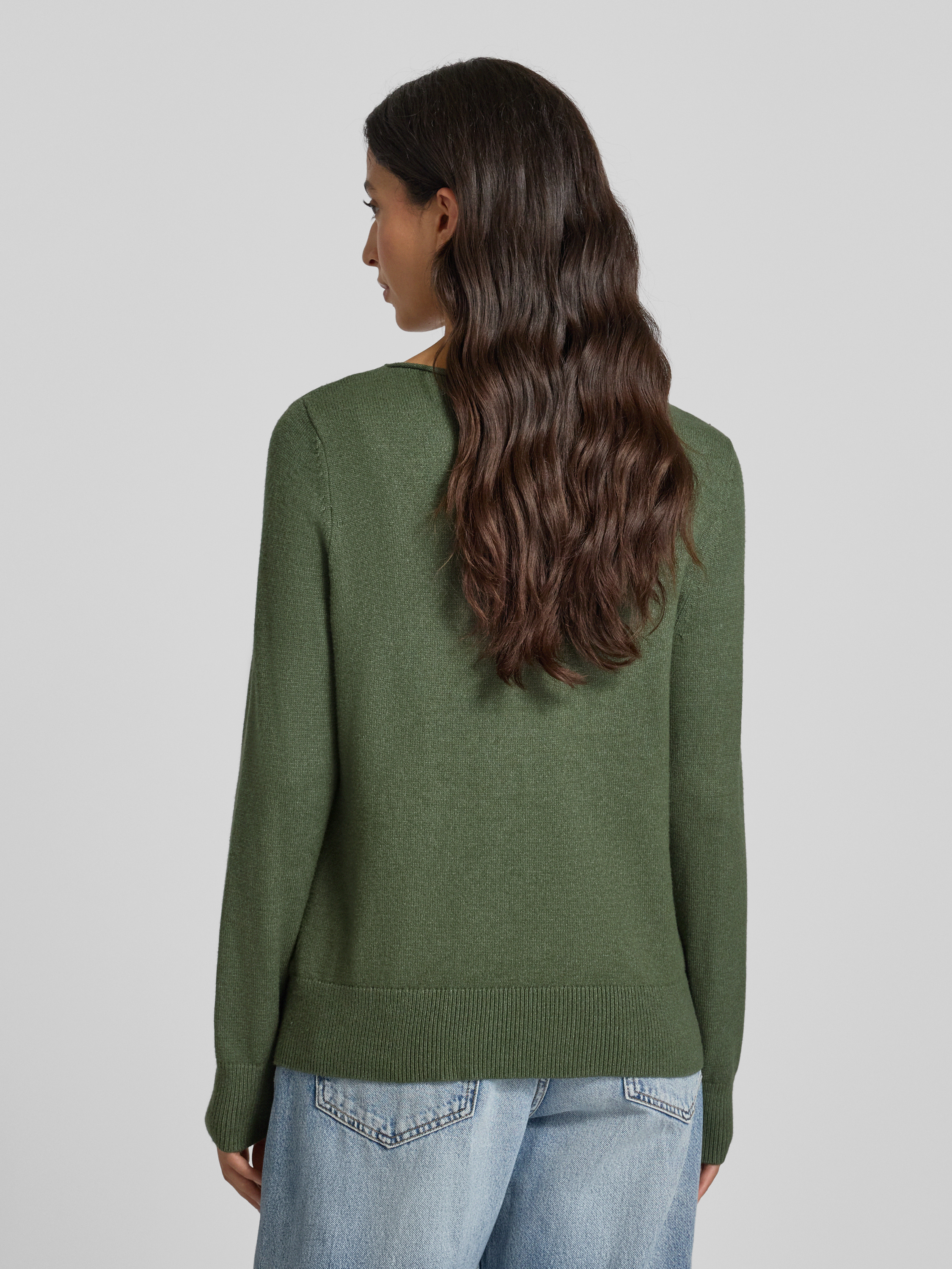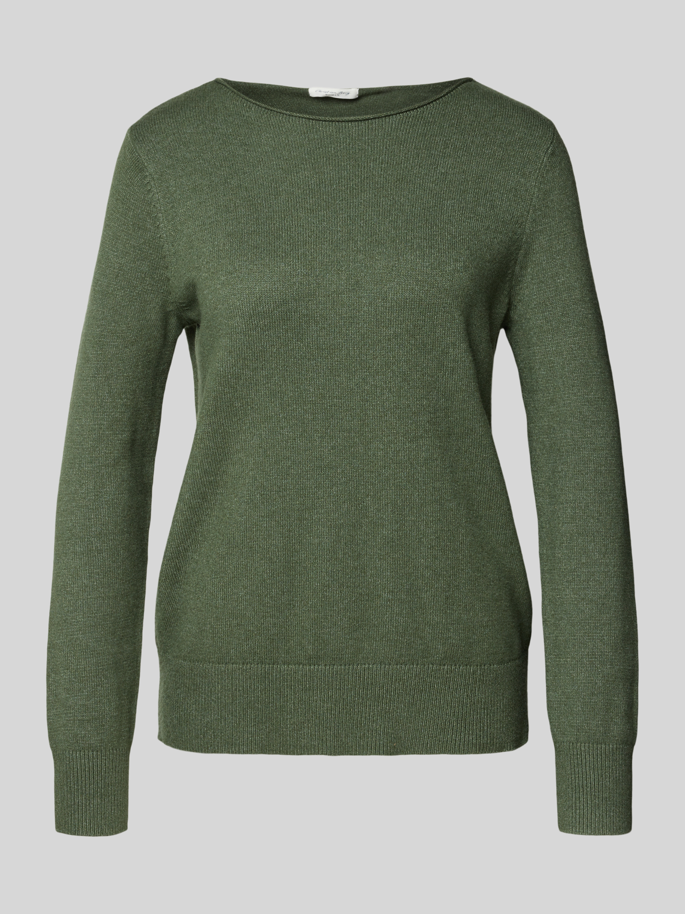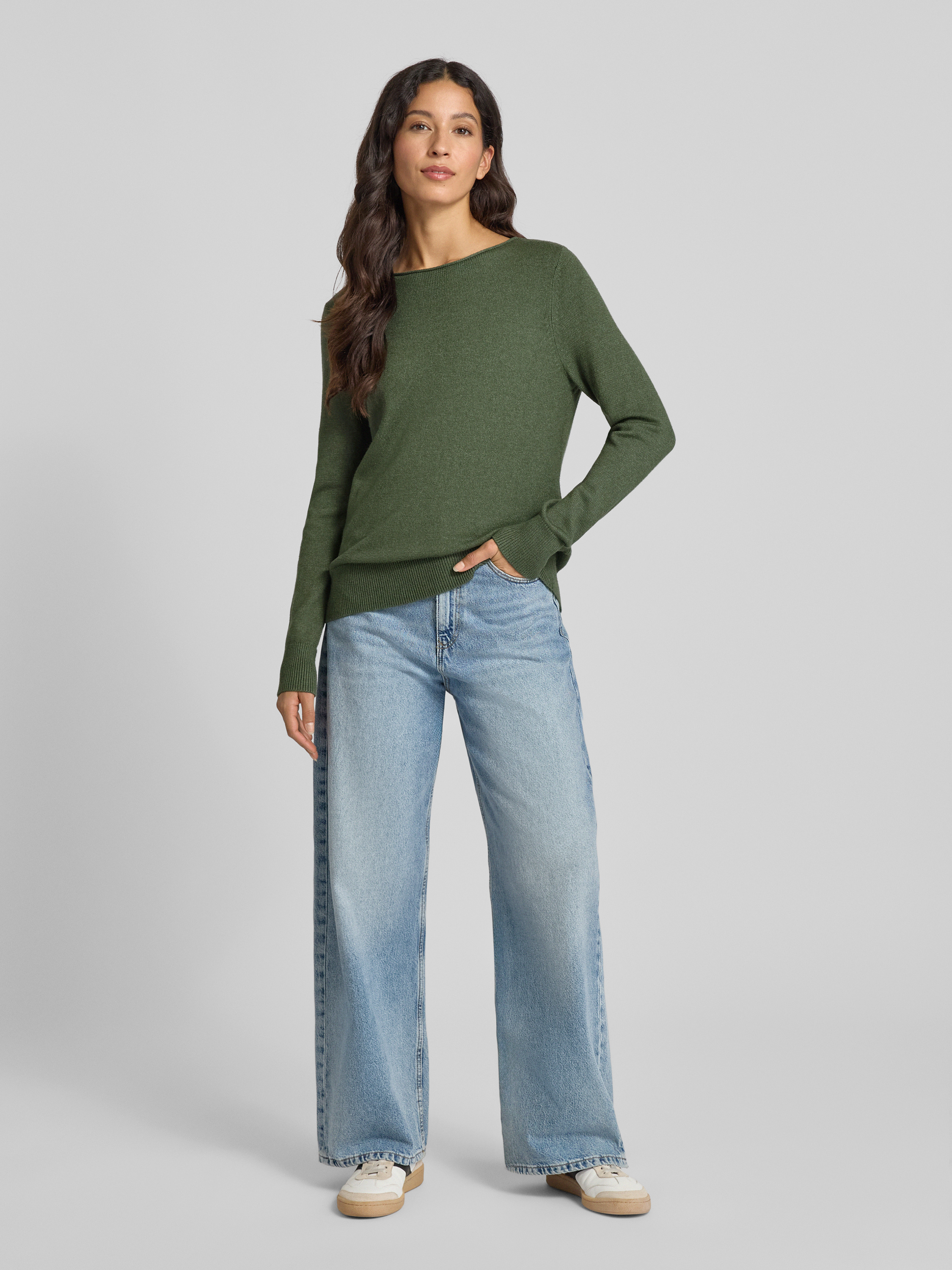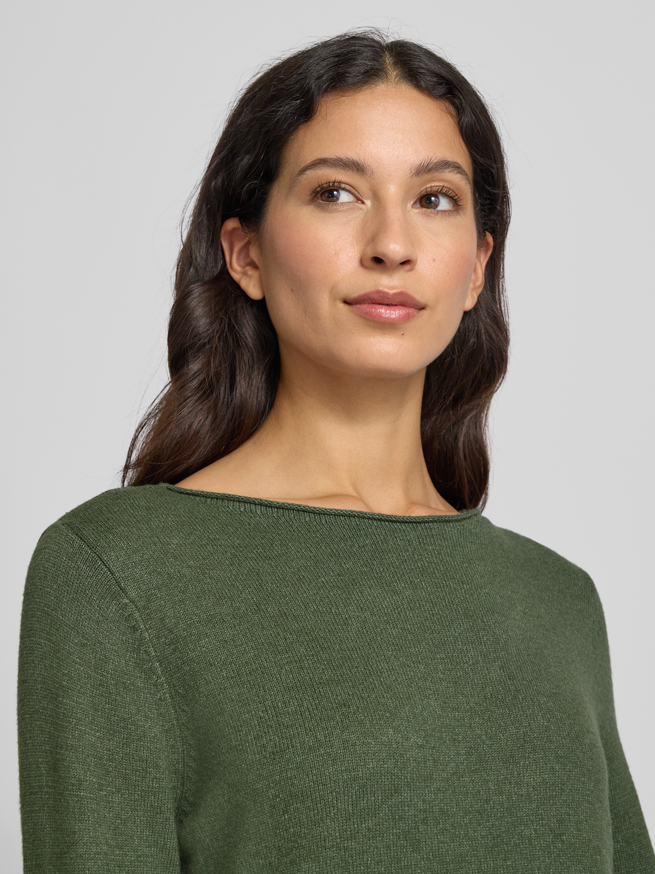 Sweter z dzianiny z dekoltem w łódkę - oliwkowy melanż