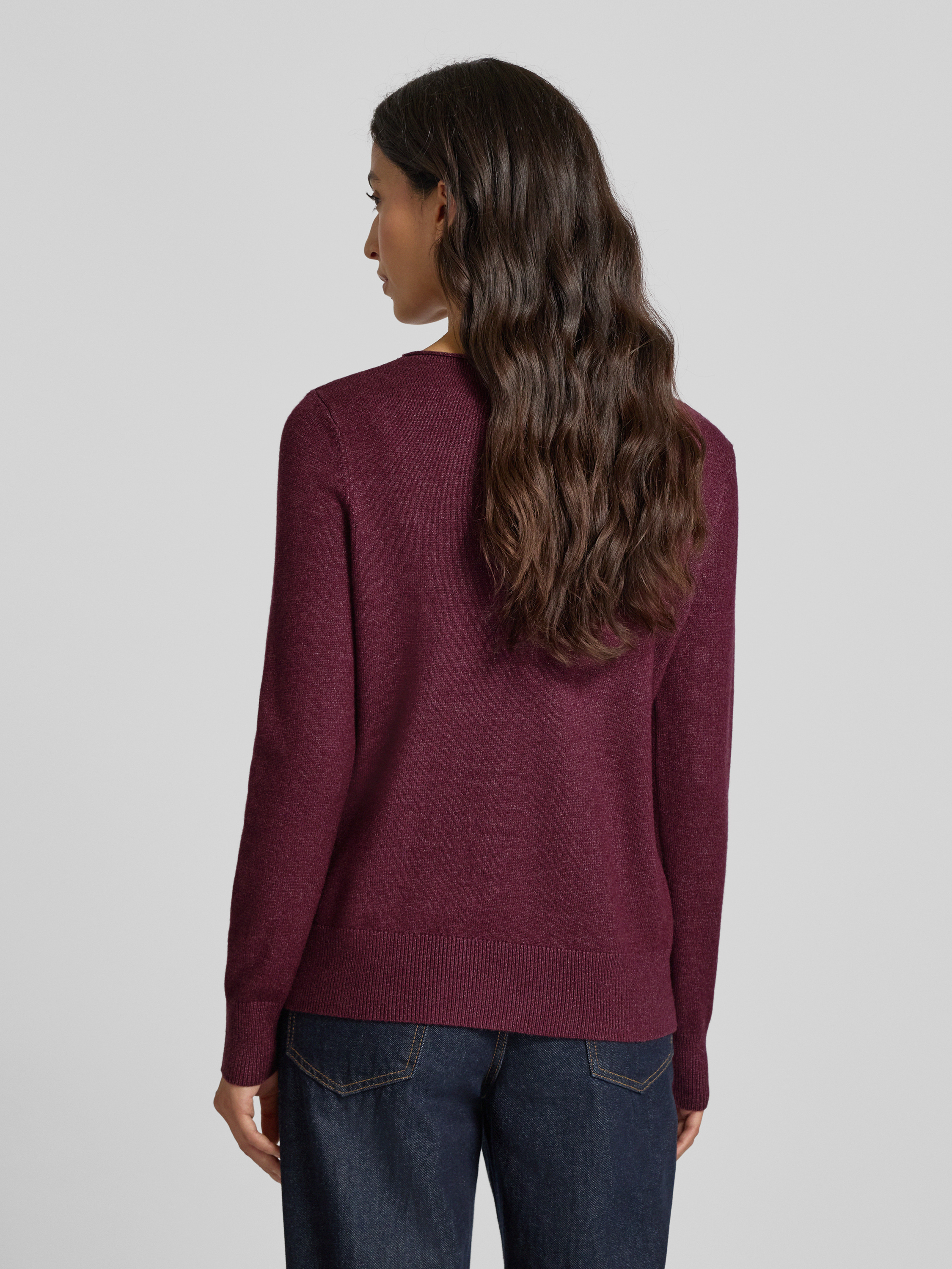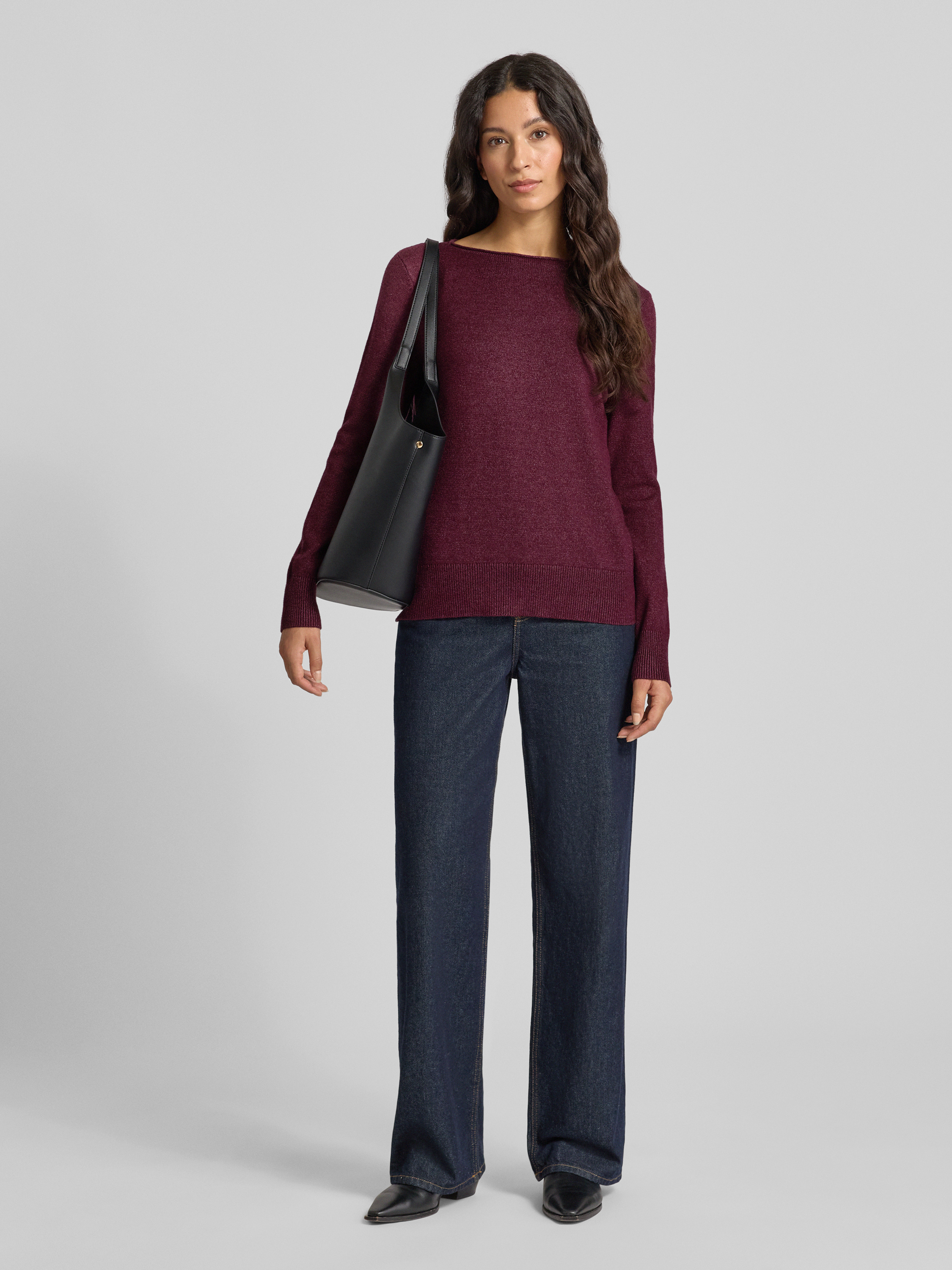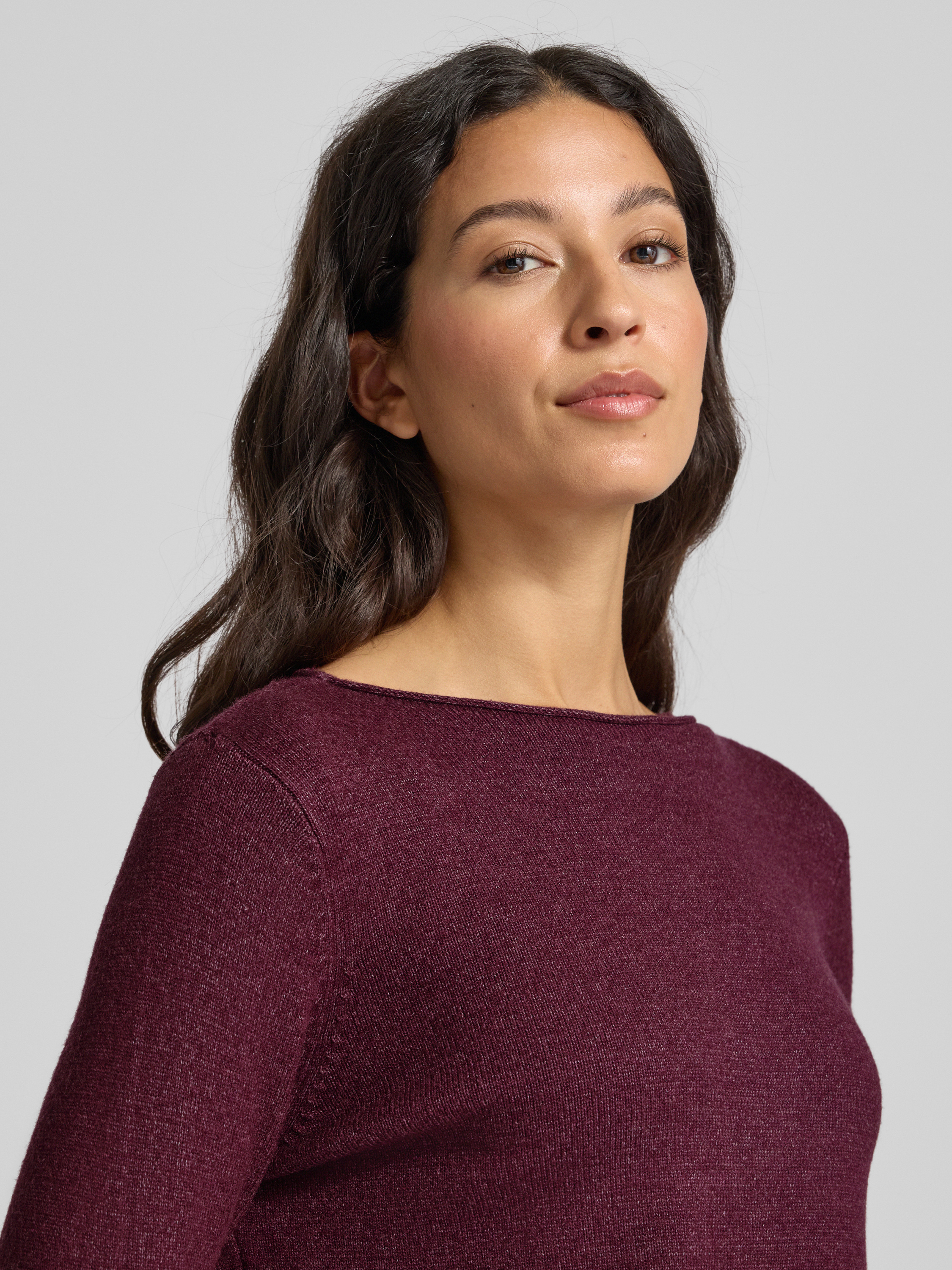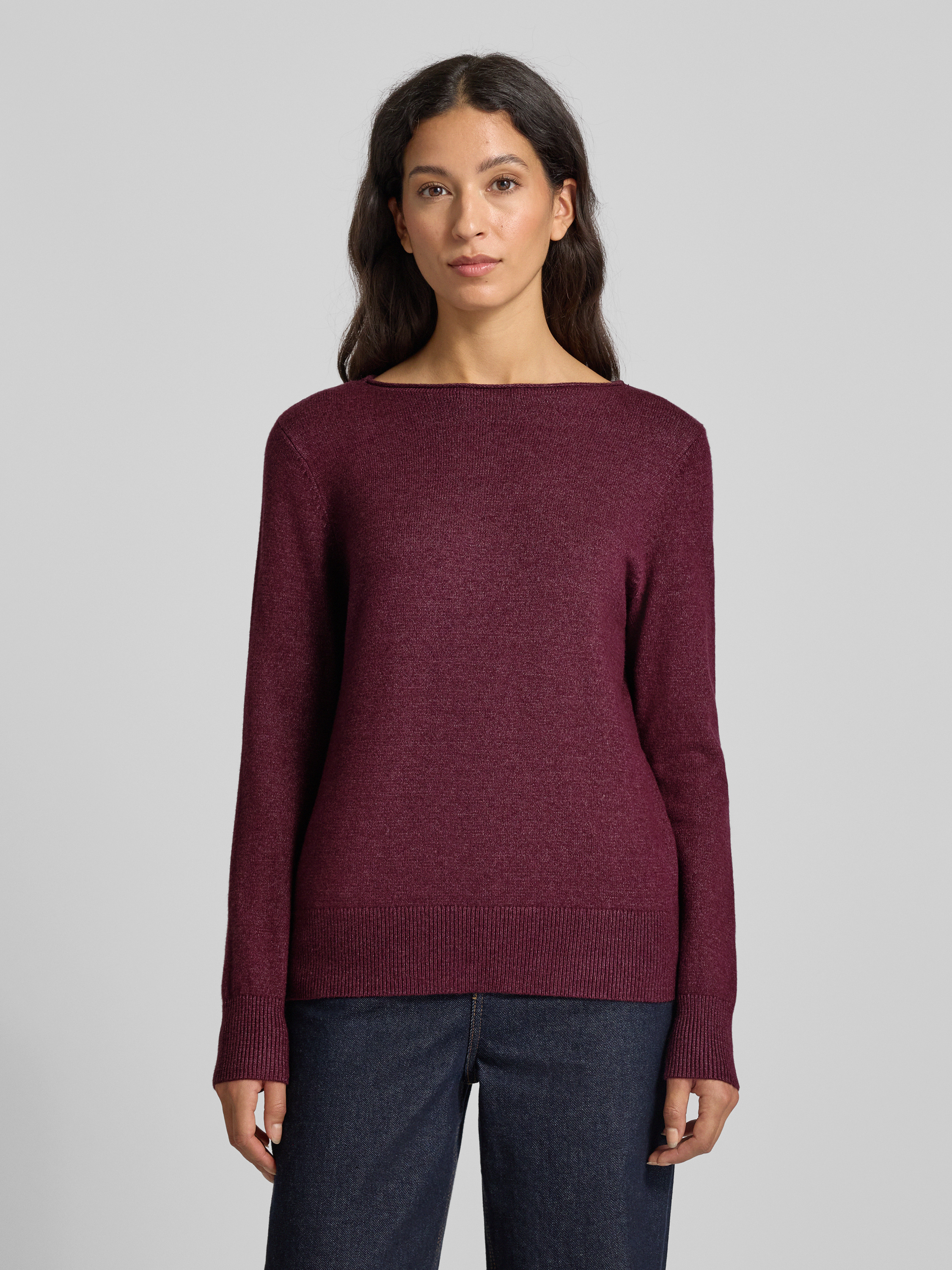 Sweter z dzianiny z dekoltem w łódkę - wiśniowy melanż